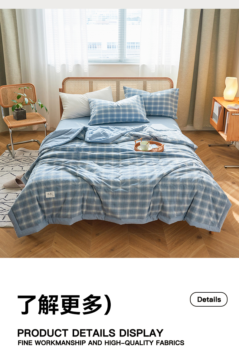 • 91家纺网 家纺一手货源 找家纺 2025新款A类纯棉水洗棉色织棉花夏被四件套全棉空调被夏凉被 优卡生活