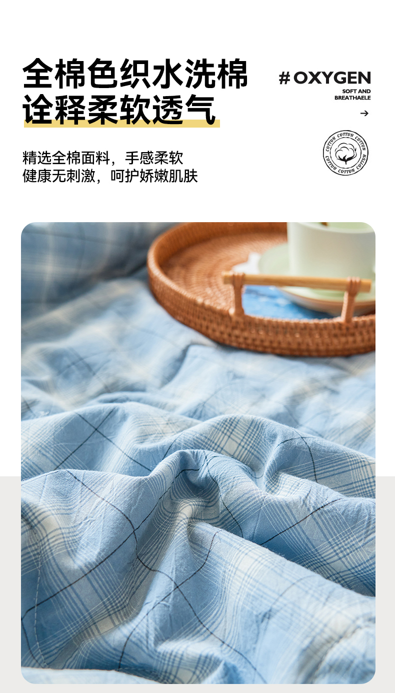 2025新款A类纯棉水洗棉色织棉花夏被四件套全棉空调被夏凉被 优卡生活