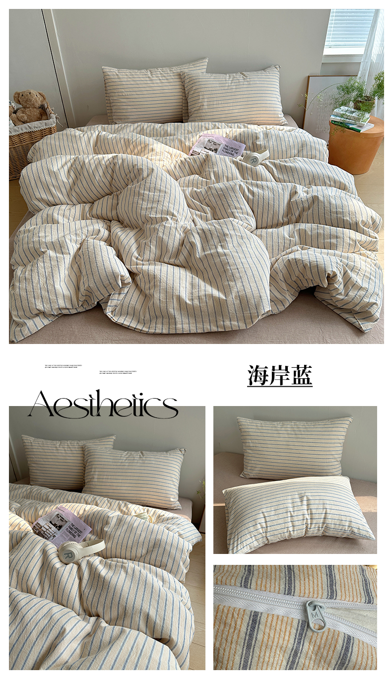 当前位置: 91家纺网 > 商品网购 > 床品套件 > 四件套 > 水洗棉四件套 > 艾咪-Amy ntmy 2025新款条纹款全棉色织水洗棉四件套 海岸蓝