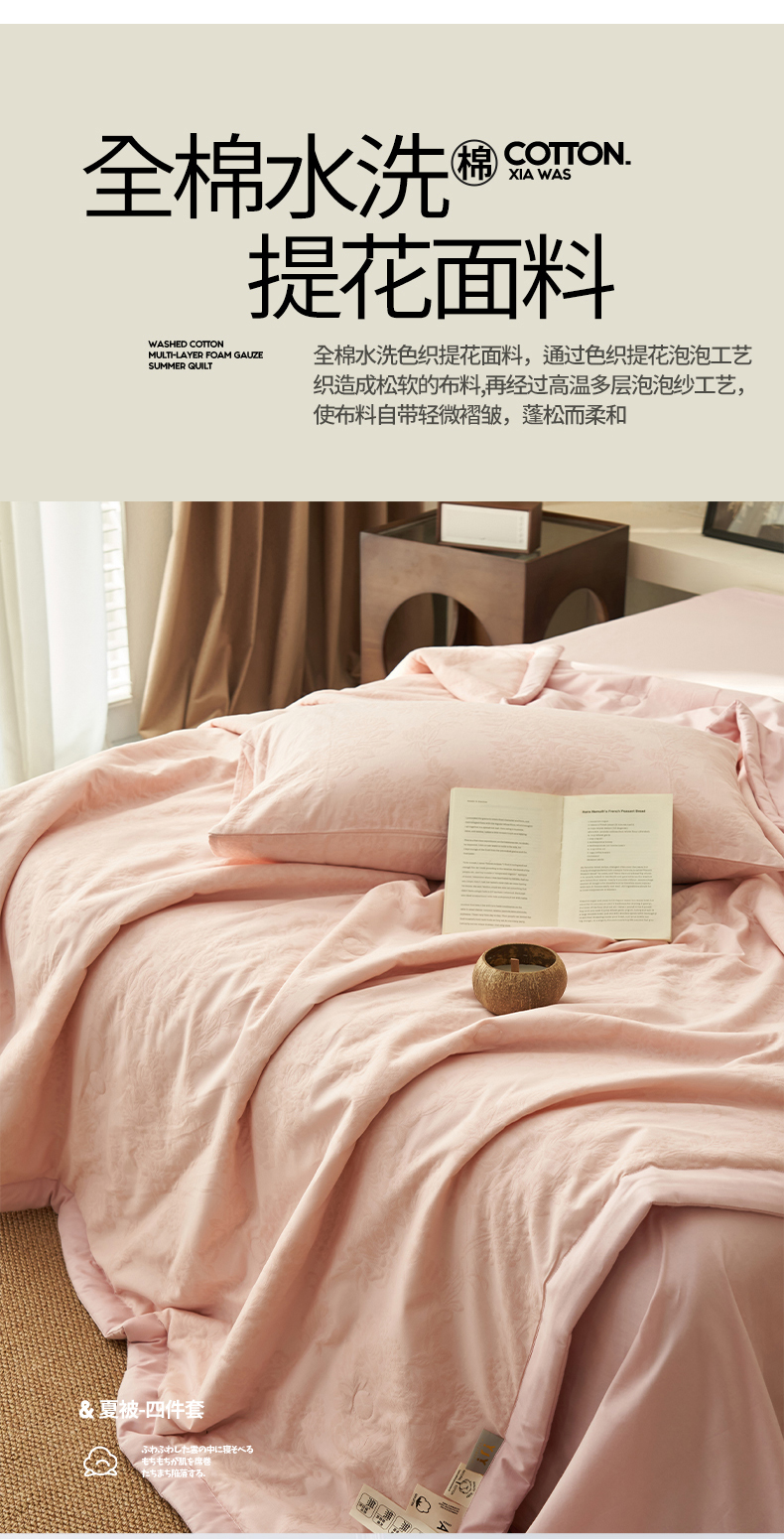当前位置: 91家纺网 > 商品网购 > 床品套件 > 四件套 > 夏被四件套 > 一加一 2025新款全棉水洗色织提花多层泡泡纱娜雅醋酯夏被四件套 芳华-芍药粉