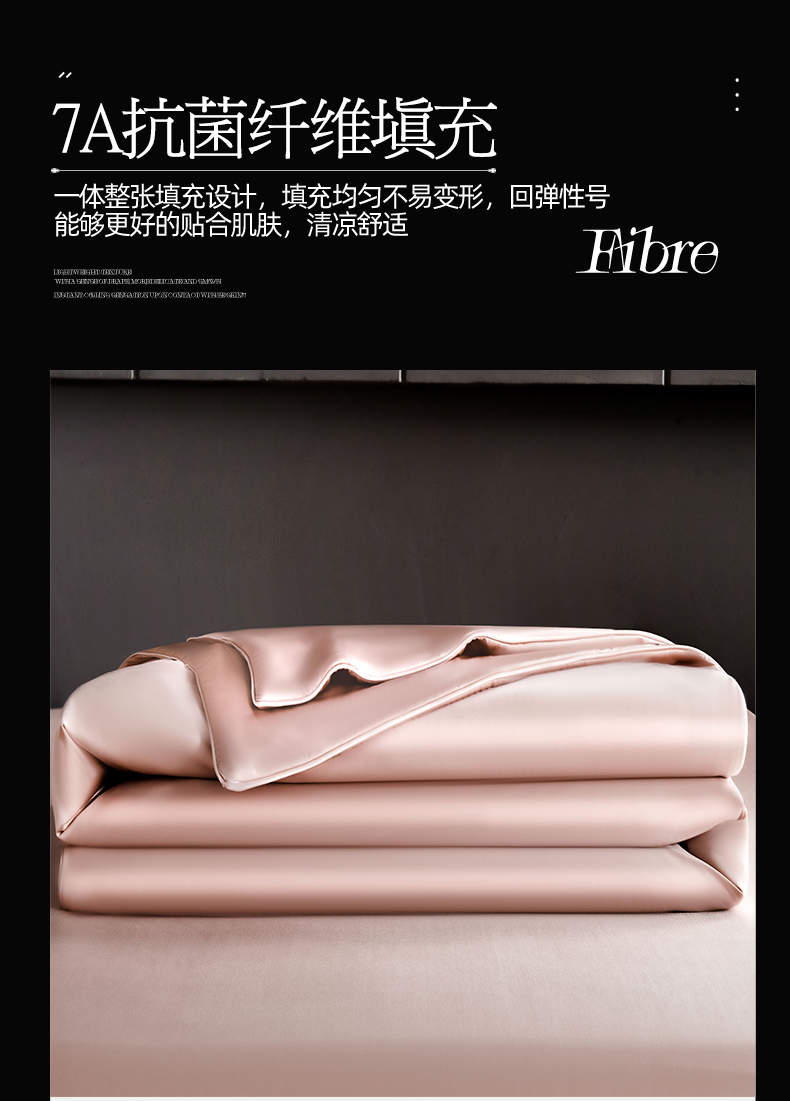 商品名称:雯豆家纺 2025夏季新品锦纶+氨纶高档冰丝凉感夏被空调被7A抗菌薄被芯 冰芙绸夏被-玫瑰金