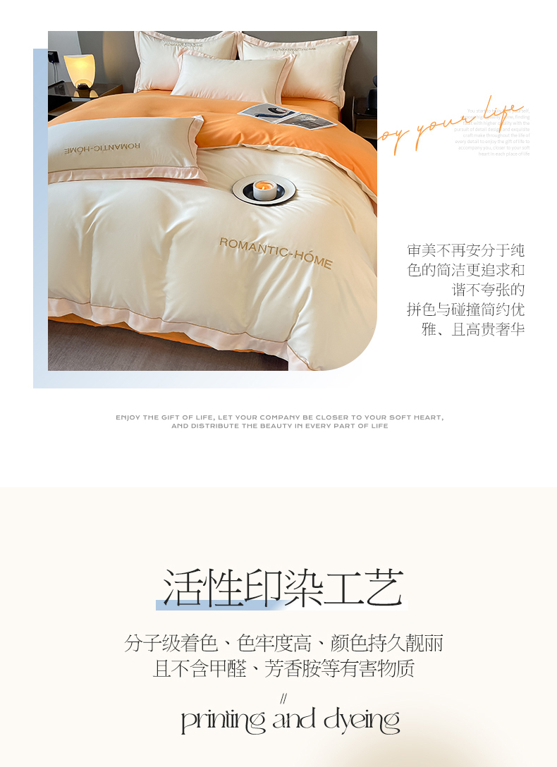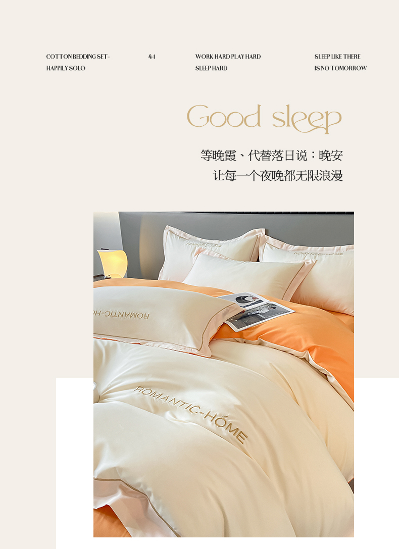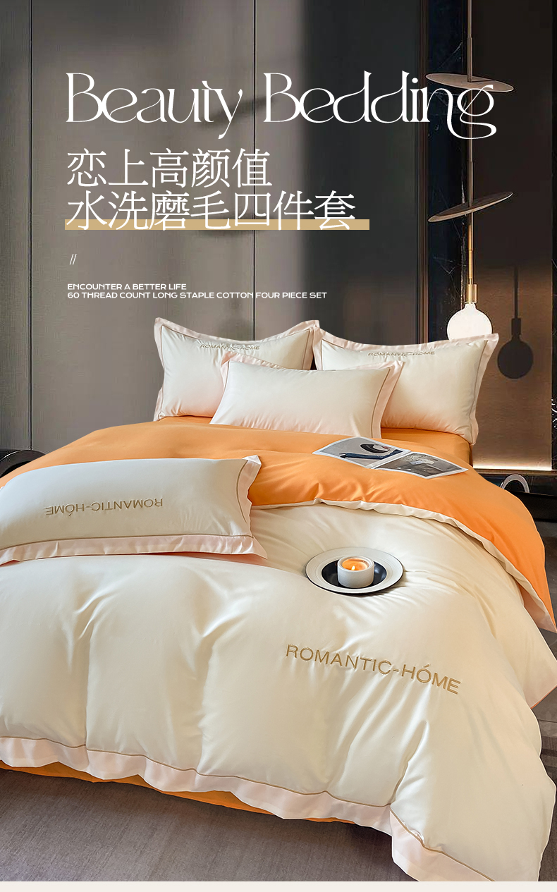 商品名称:2025新款轻奢家简约水洗磨毛四件套-艾文 奶昔白-南瓜橘