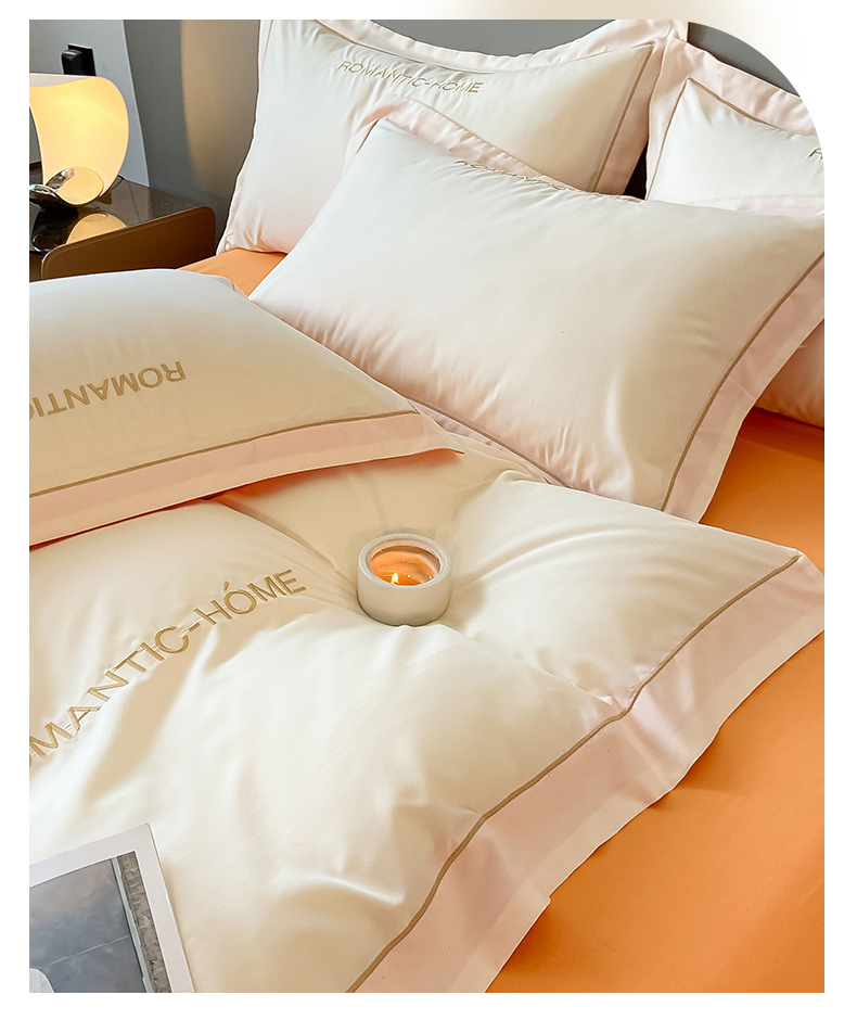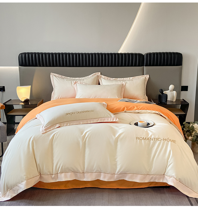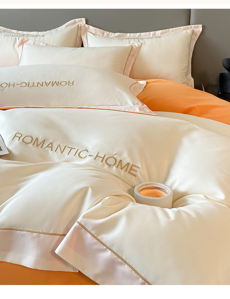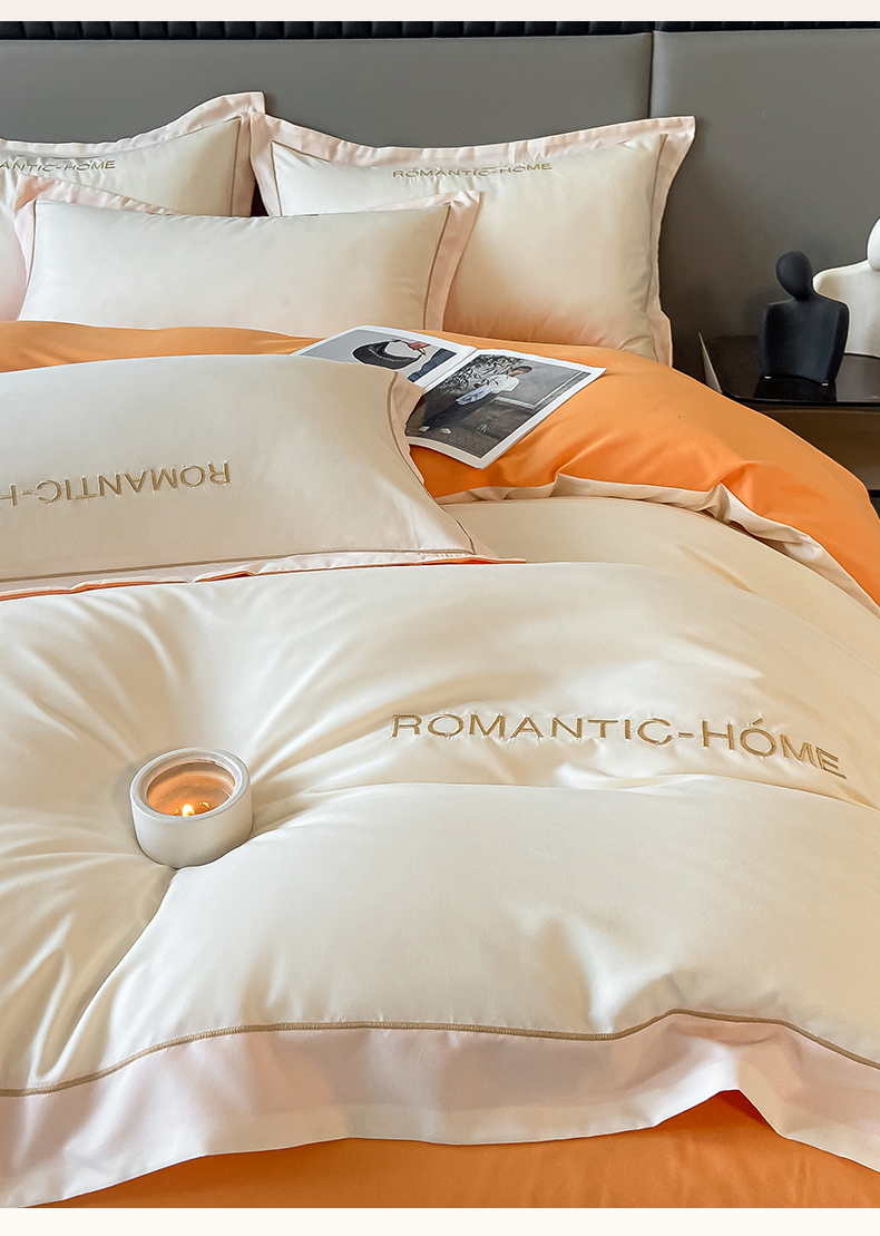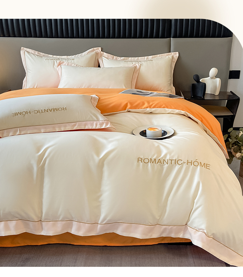 2025新款轻奢家简约水洗磨毛四件套-艾文 奶昔白-南瓜橘