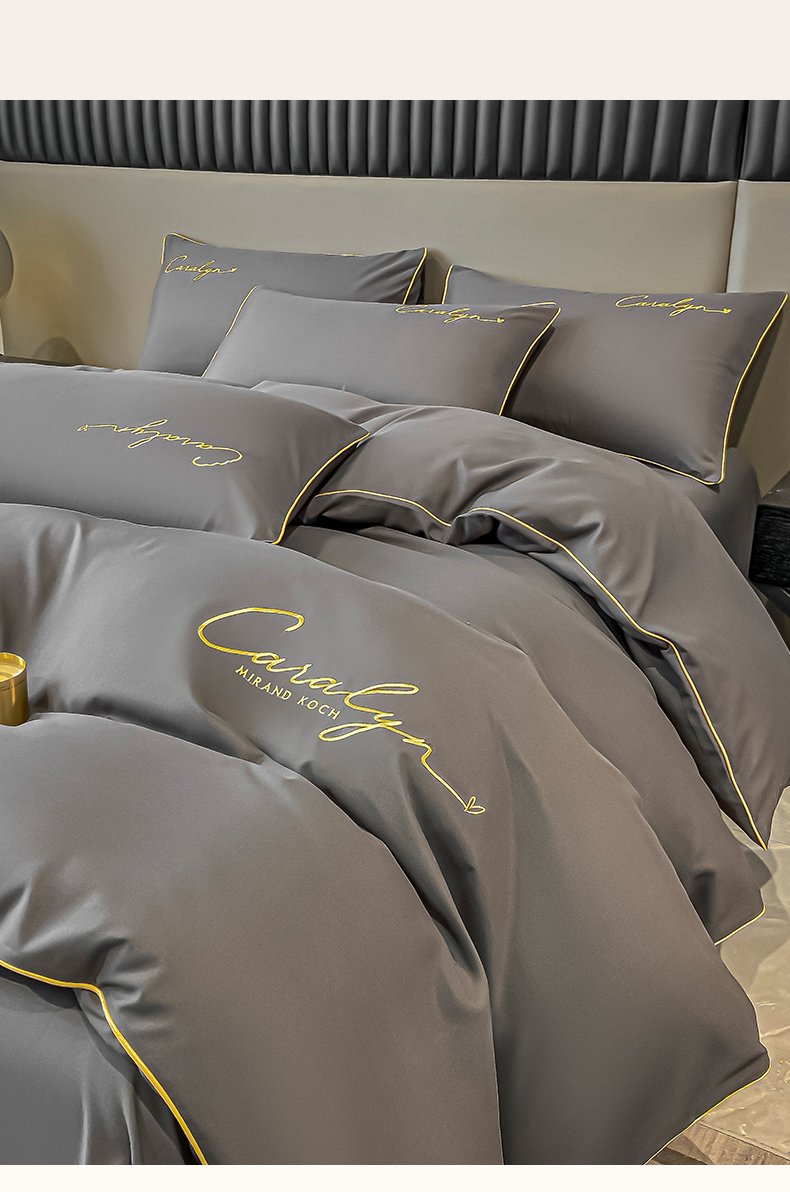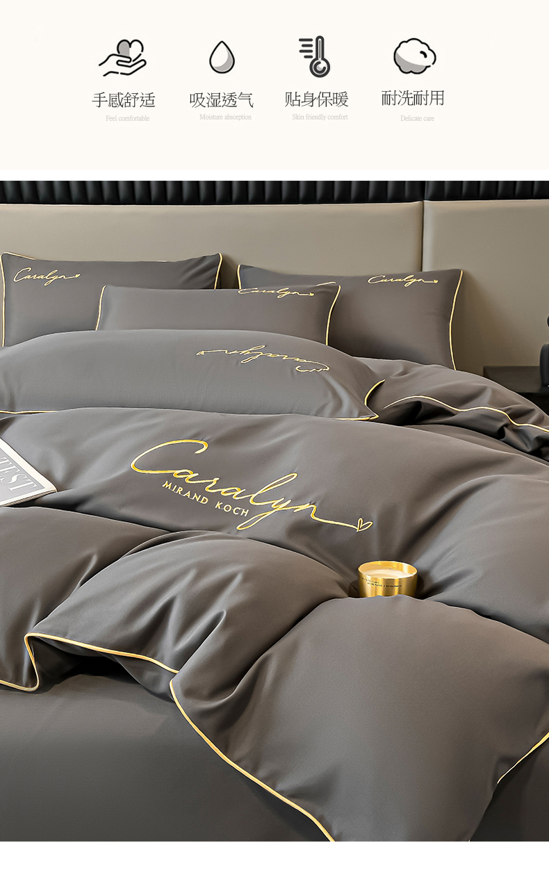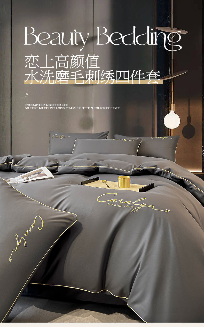 2025新款水洗磨毛刺绣四件套-慕斯 高级灰+米灰