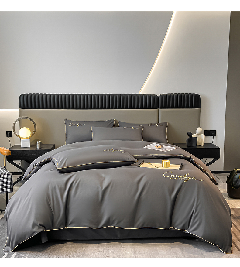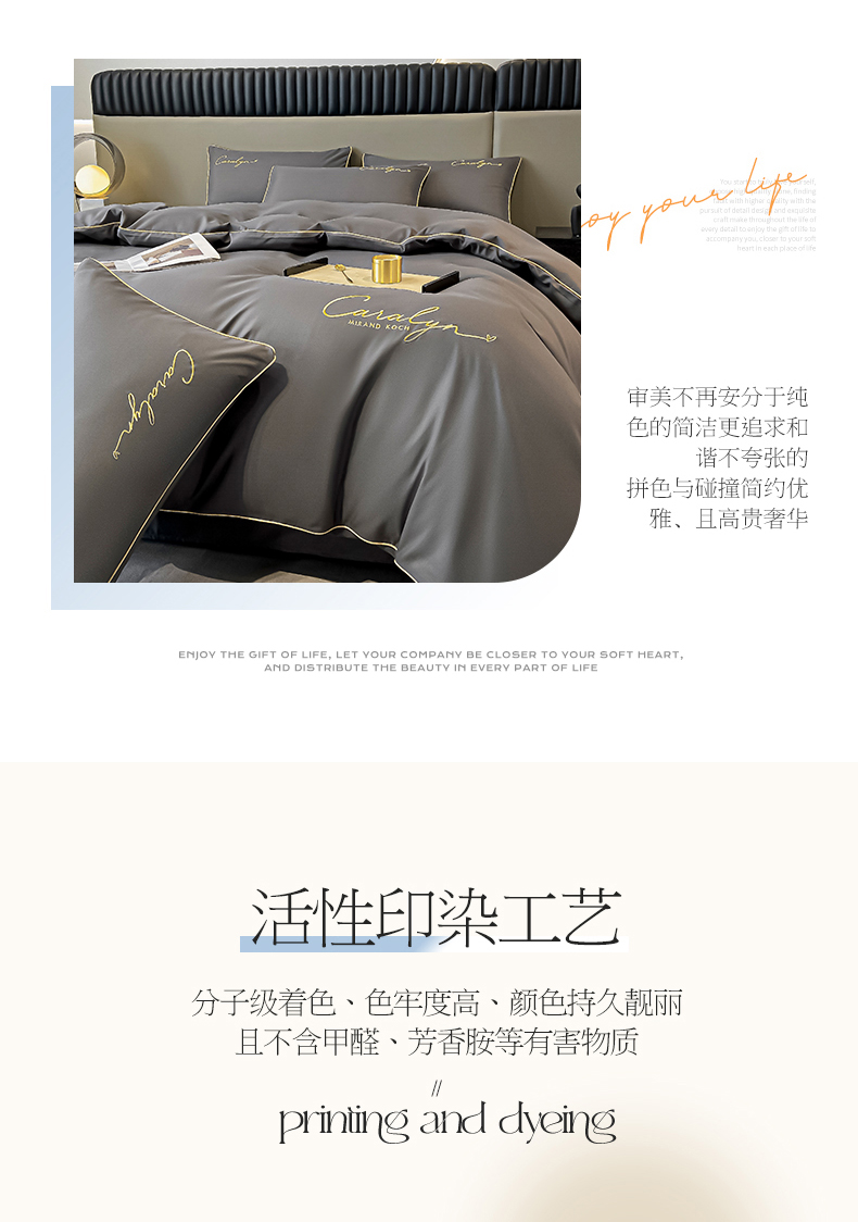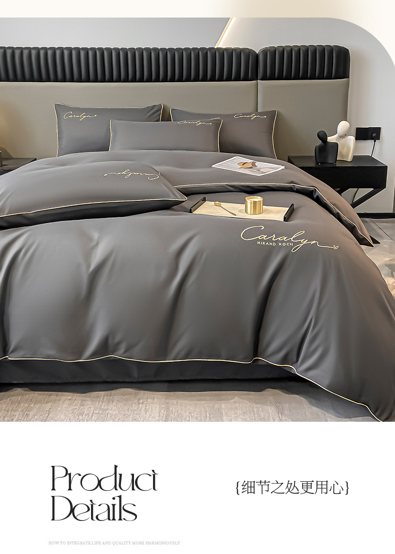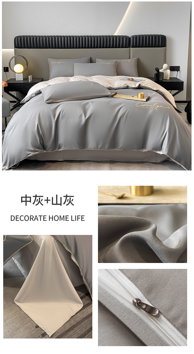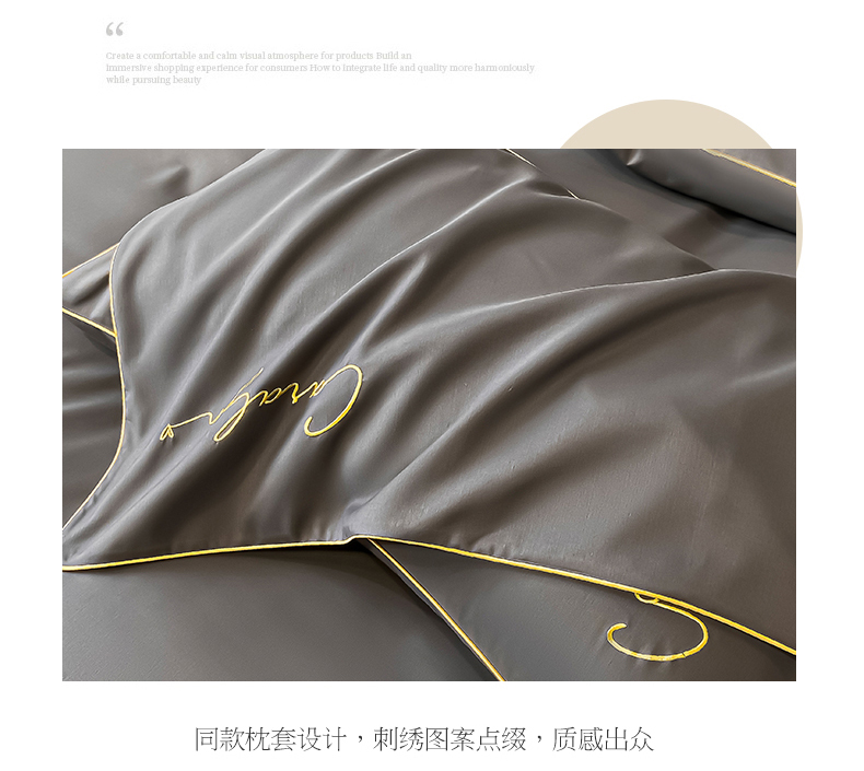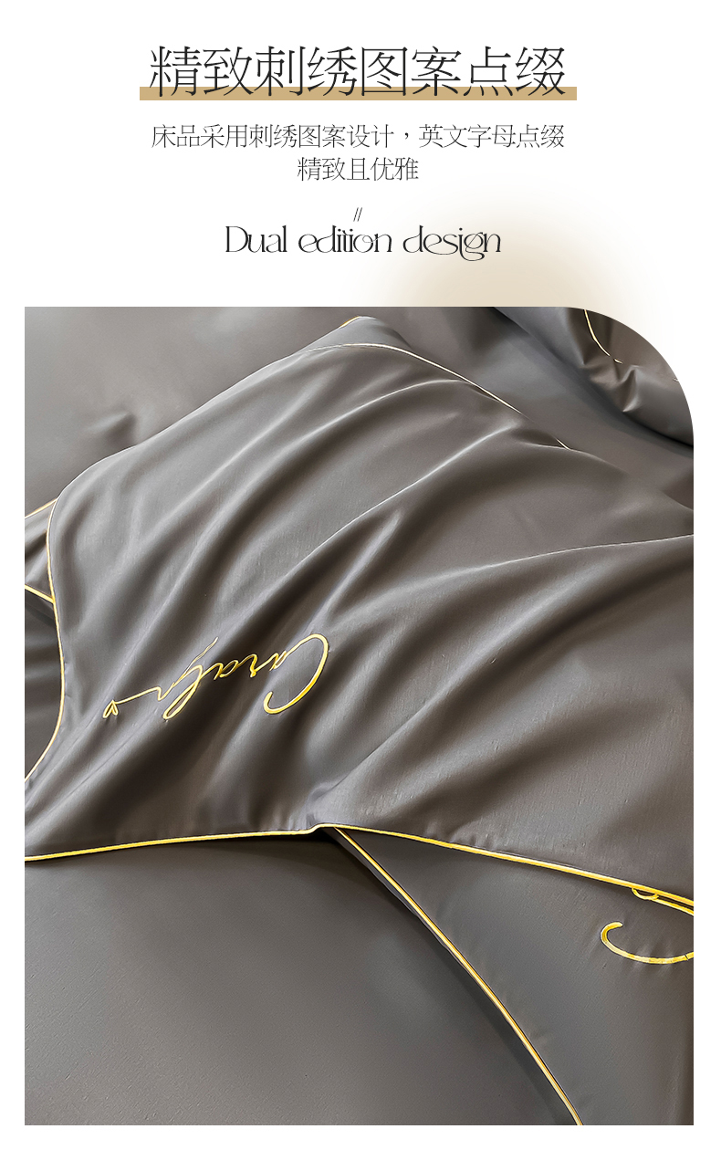 商品名称:2025新款水洗磨毛刺绣四件套-慕斯 高级灰+米灰