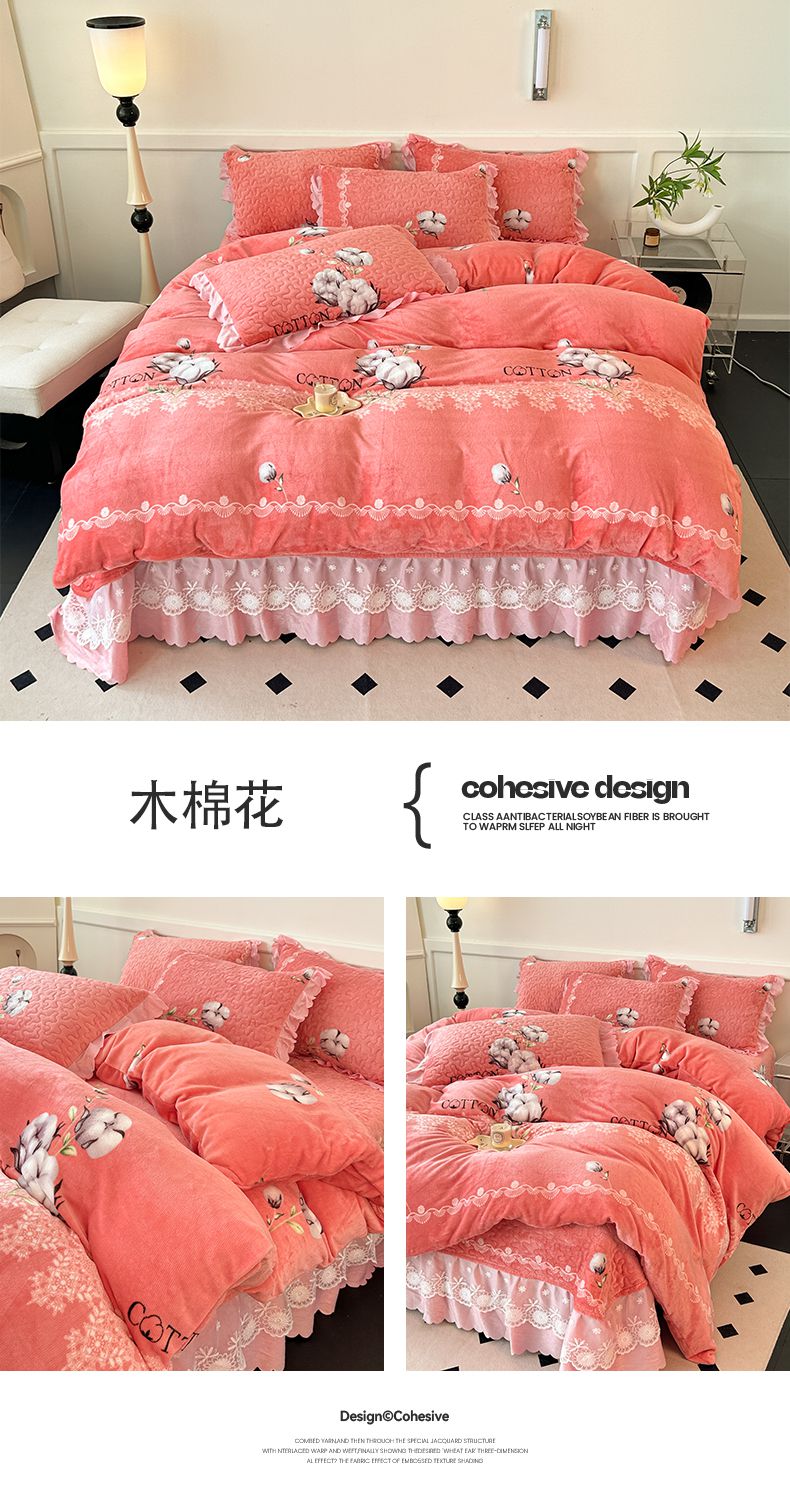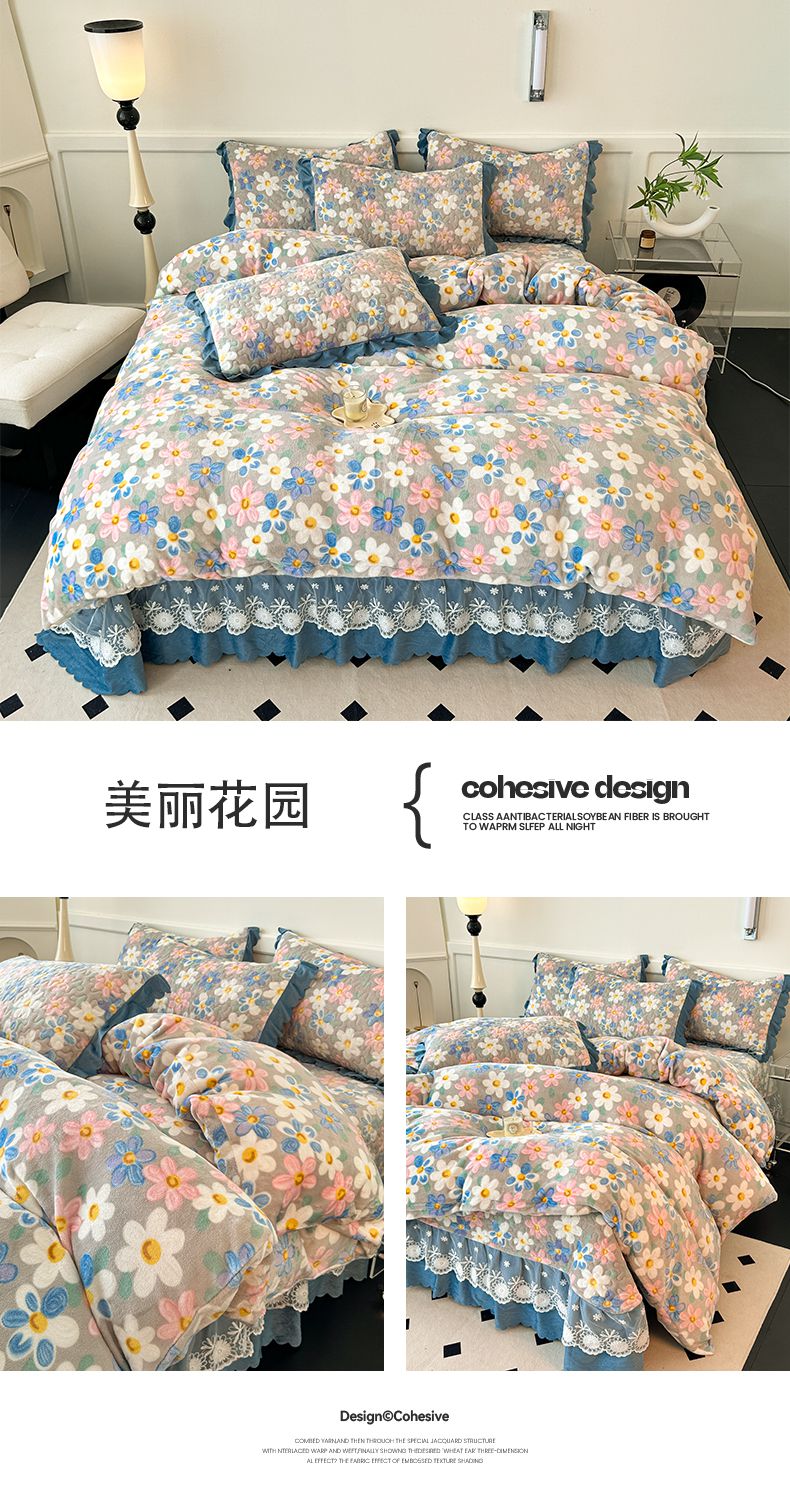 当前位置: 91家纺网 > 商品网购 > 床品套件 > 四件套 > 牛奶绒四件套 > 珍爱家纺 2025新款冬季加厚夹棉保暖牛奶绒蕾丝花边床盖床裙单件三件套双人四件套 梦境花园