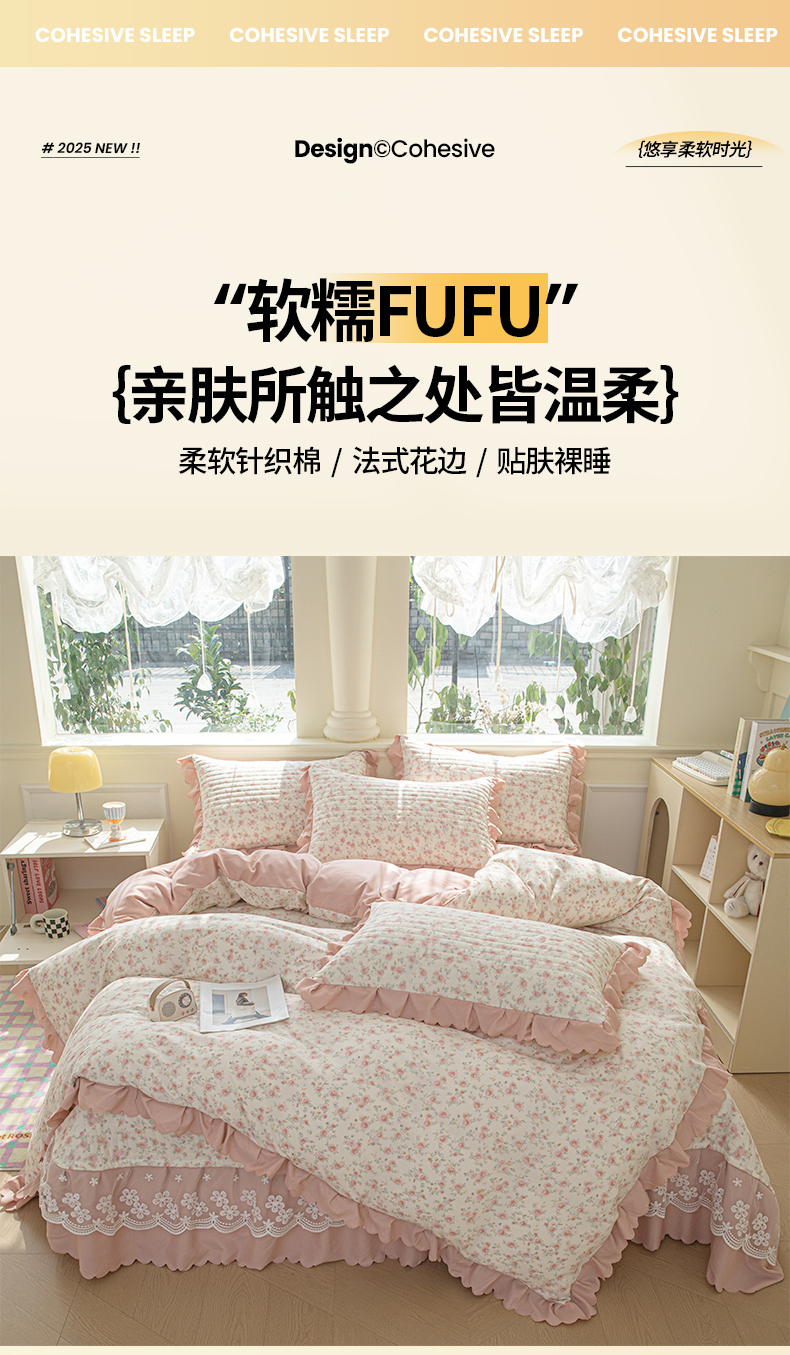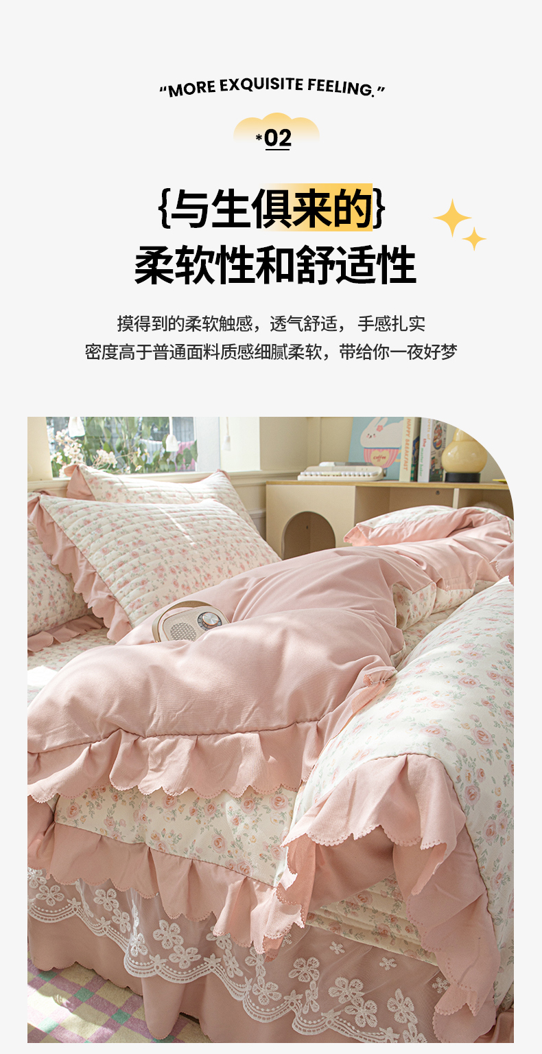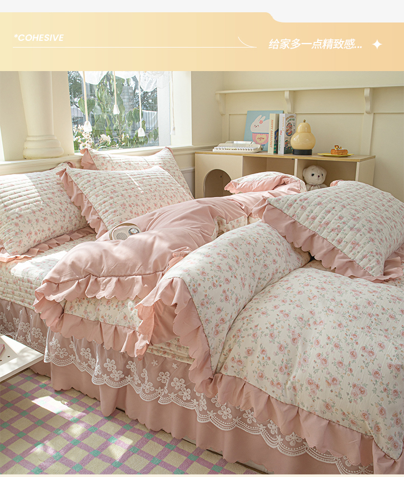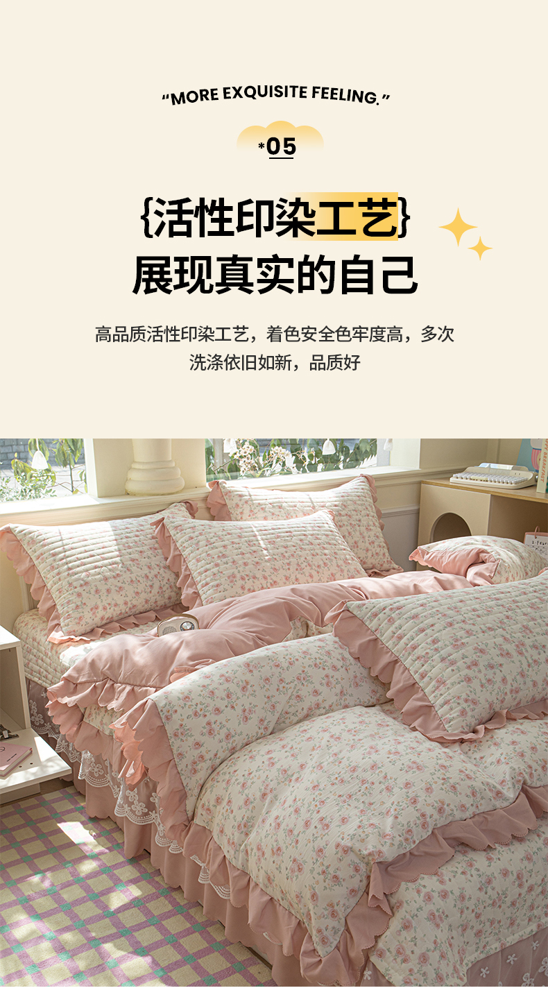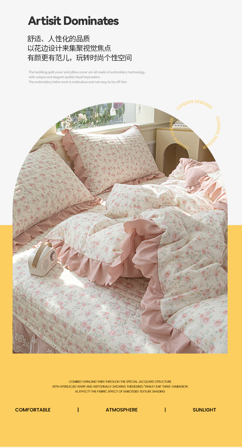 当前位置: 91家纺网 > 商品网购 > 床品套件 > 四件套 > 针织棉四件套 > 珍爱家纺 2025新款A类针织棉双层纱夹棉床盖床裙花边单件三件四件套 春色满园