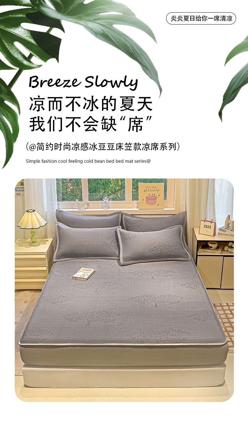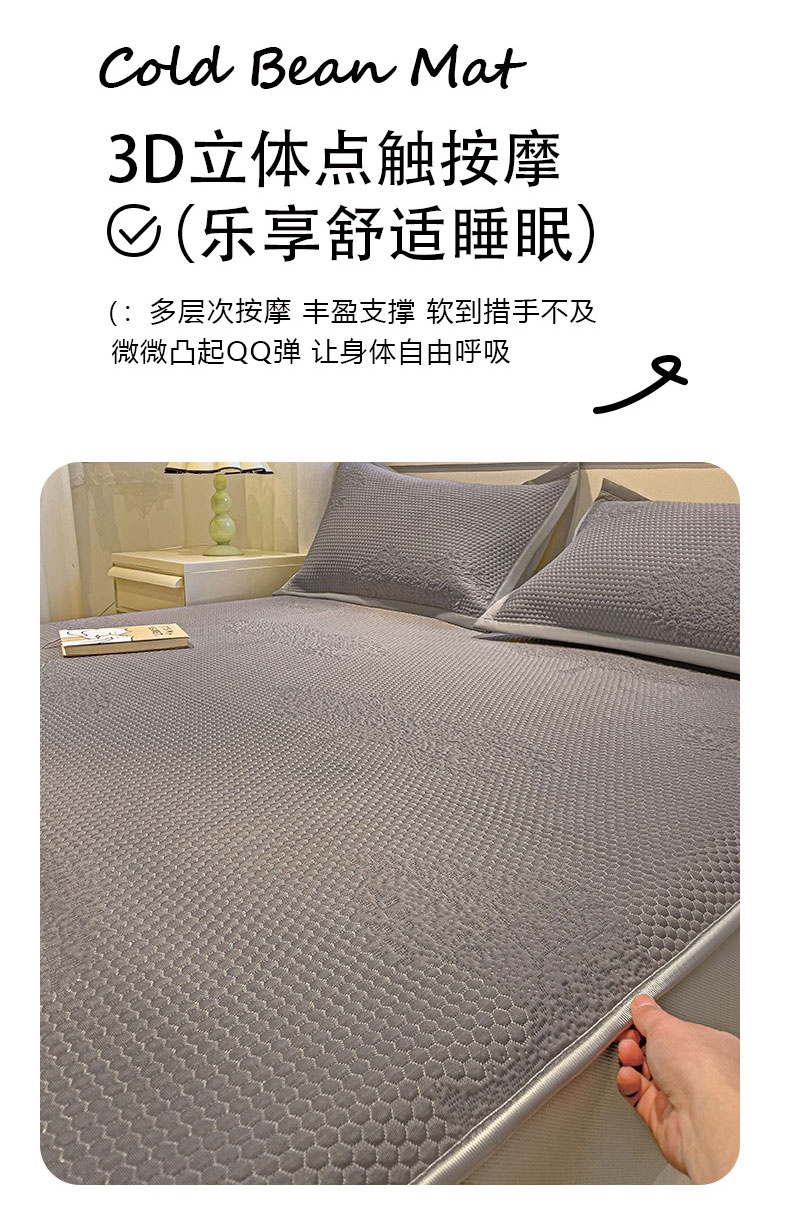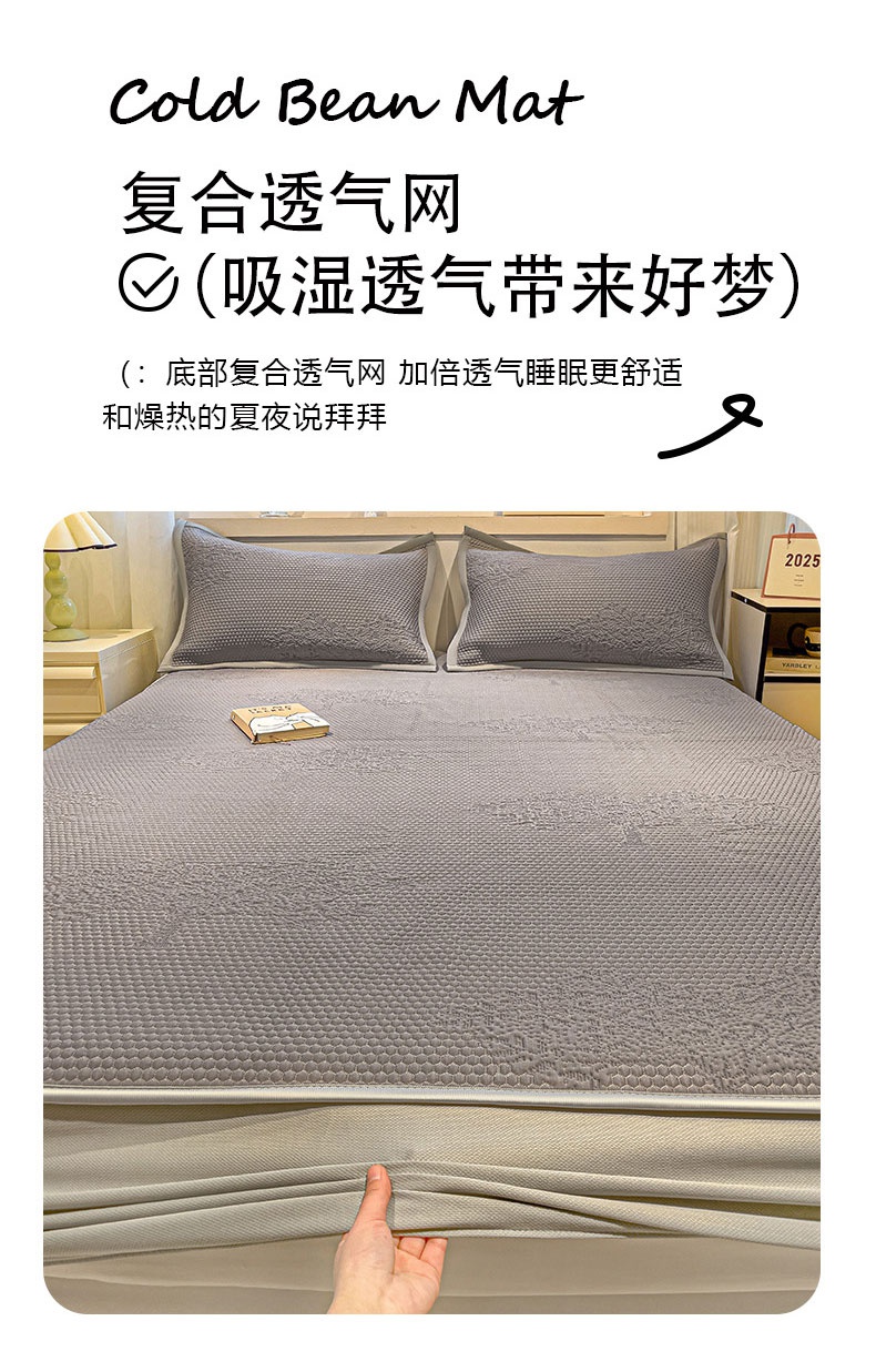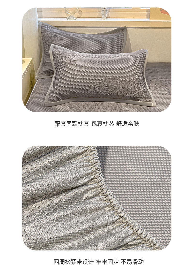 • 91家纺网 家纺一手货源 找家纺 富馨莱 2025新款A类480克PE凉感凉豆豆凉席三件套和单件床笠款 发财树-灰