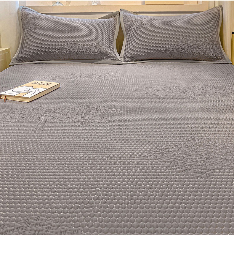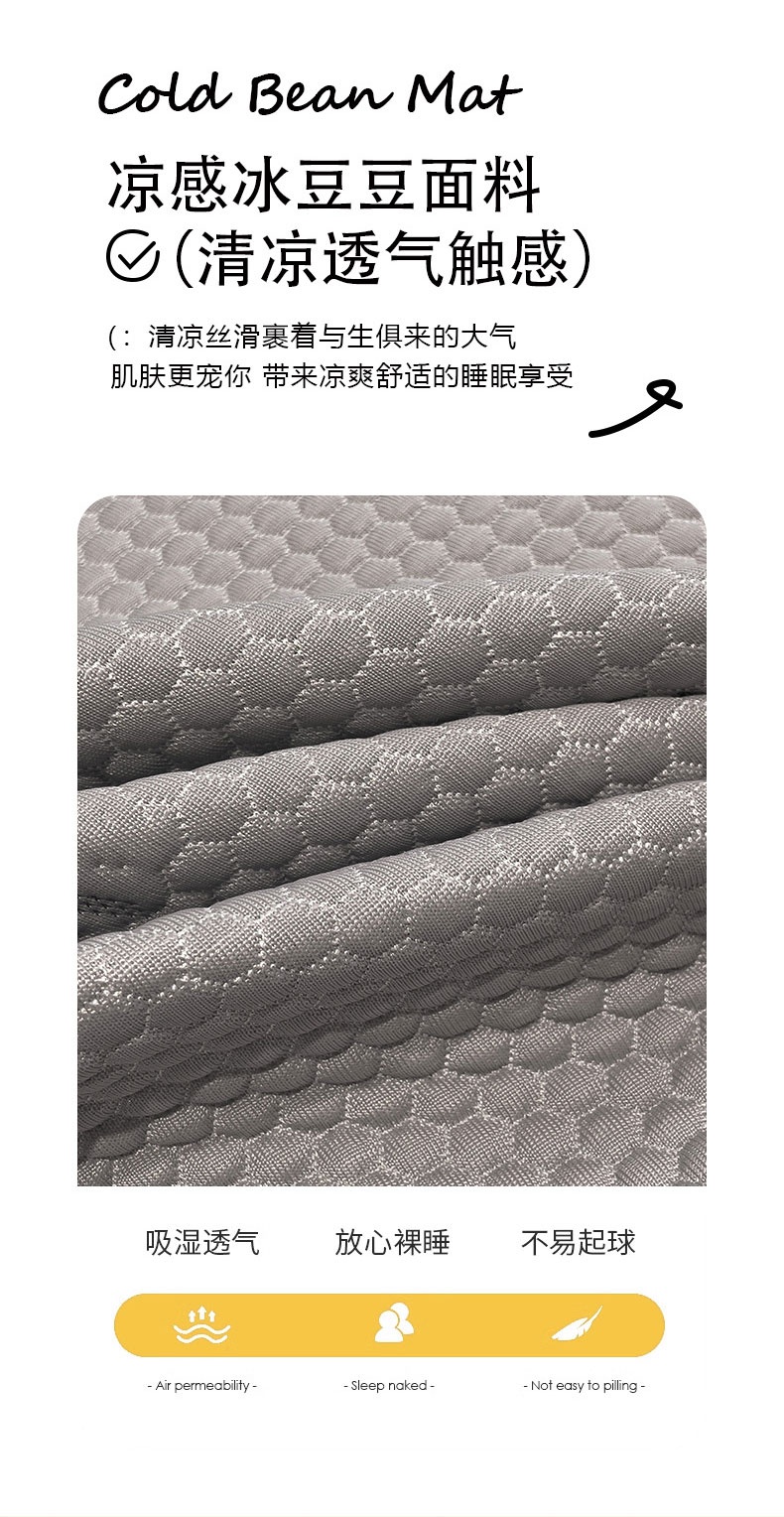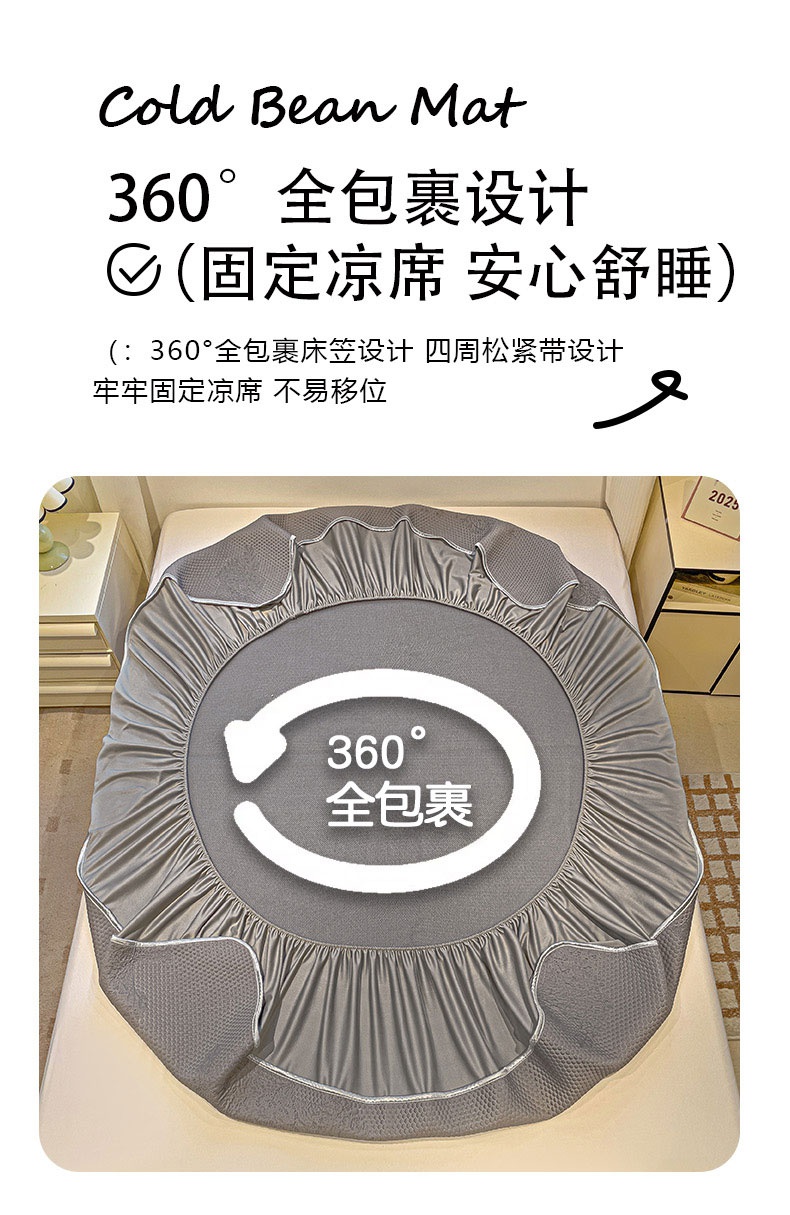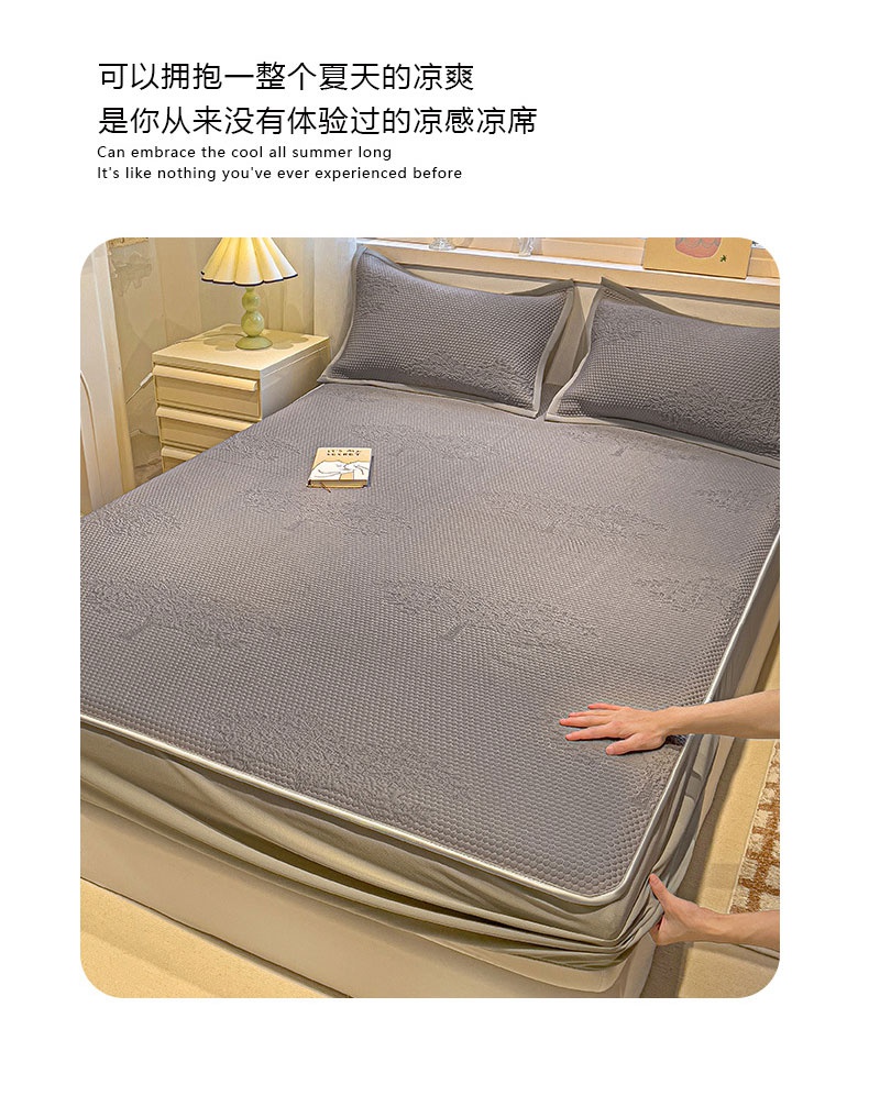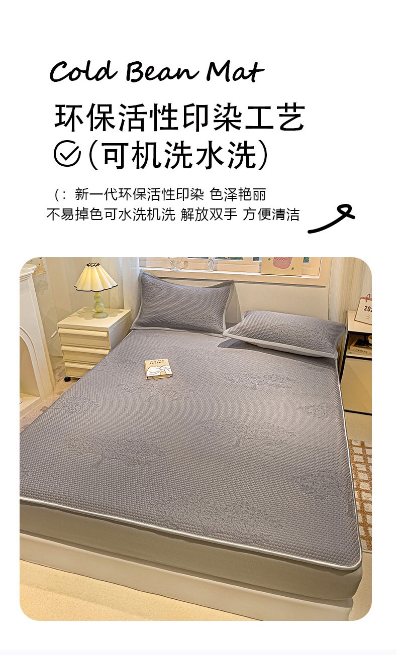 • 91家纺网 家纺一手货源 找家纺 富馨莱 2025新款A类480克PE凉感凉豆豆凉席三件套和单件床笠款 发财树-灰