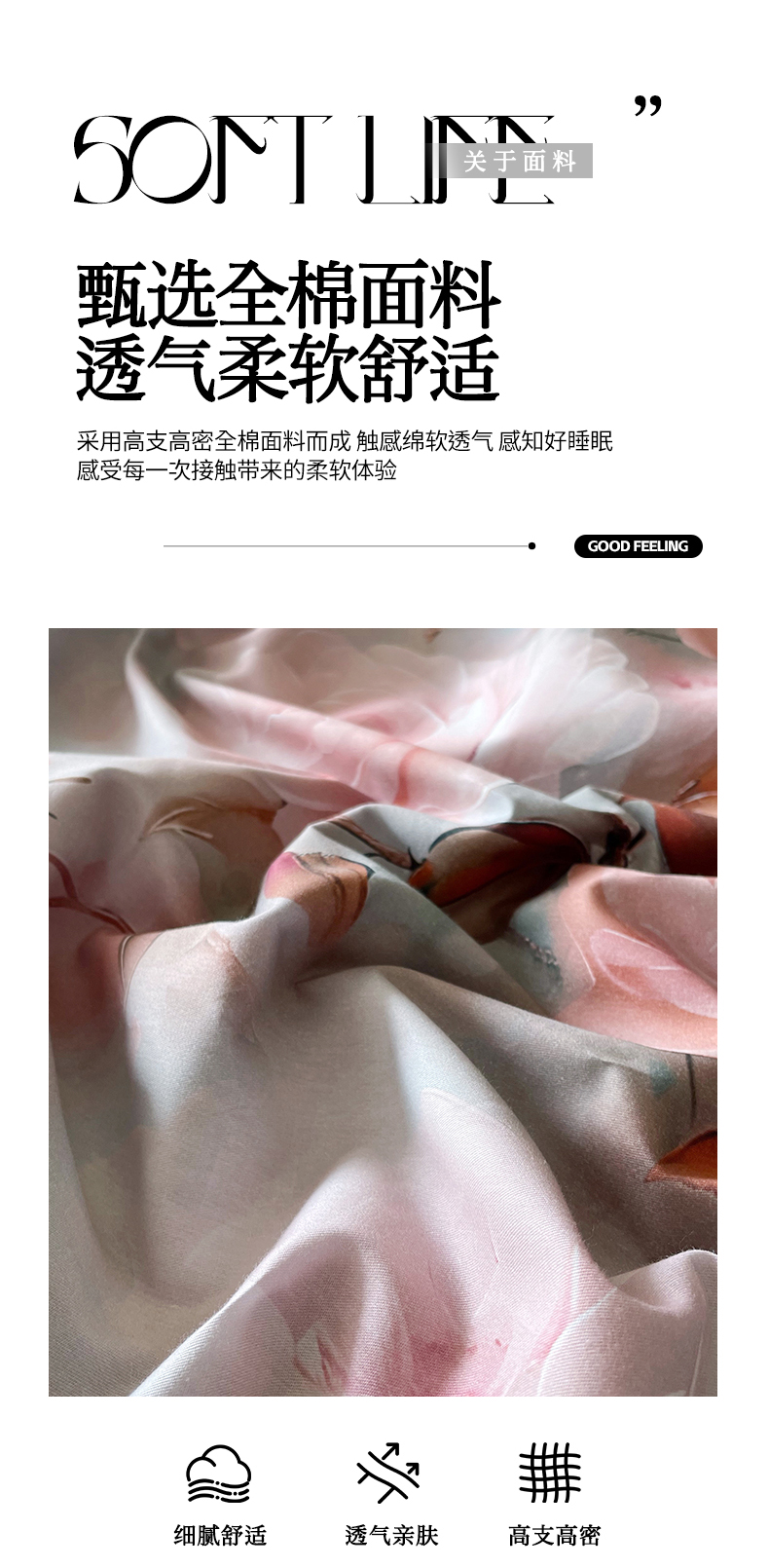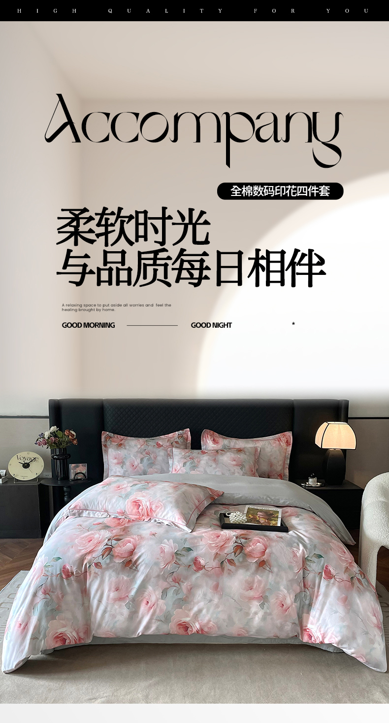 金纱玉纺家纺 2024新款全棉大版印花13372四件套 幽香恋曲,幽香恋曲