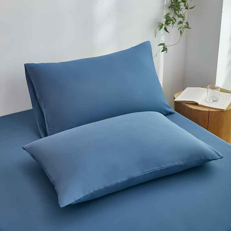 艾橙家纺 2025新款正宗133x72喷气织造全棉纯棉纯色床笠三件套 牛仔蓝