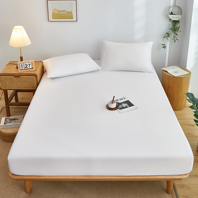 艾橙家纺 2025新款正宗133x72喷气织造全棉纯棉纯色床笠三件套 雪月白