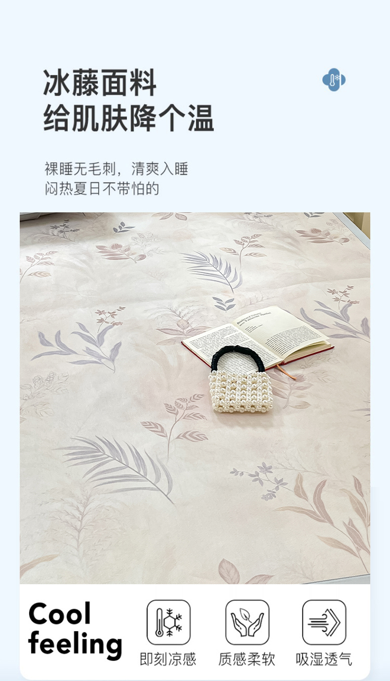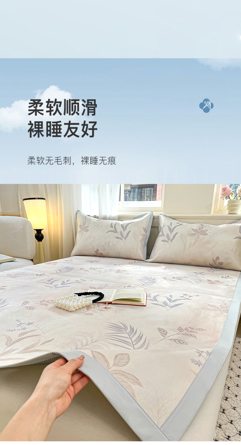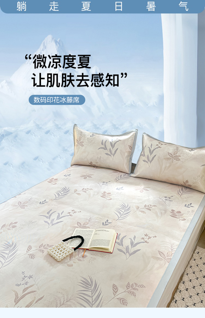 当前位置: 91家纺网 > 商品网购 > 床上用品 > 凉席 > 藤席 > 绒艺席业 2025新款600D冰丝印花数码印花冰藤席赫本风系列 花影晚风