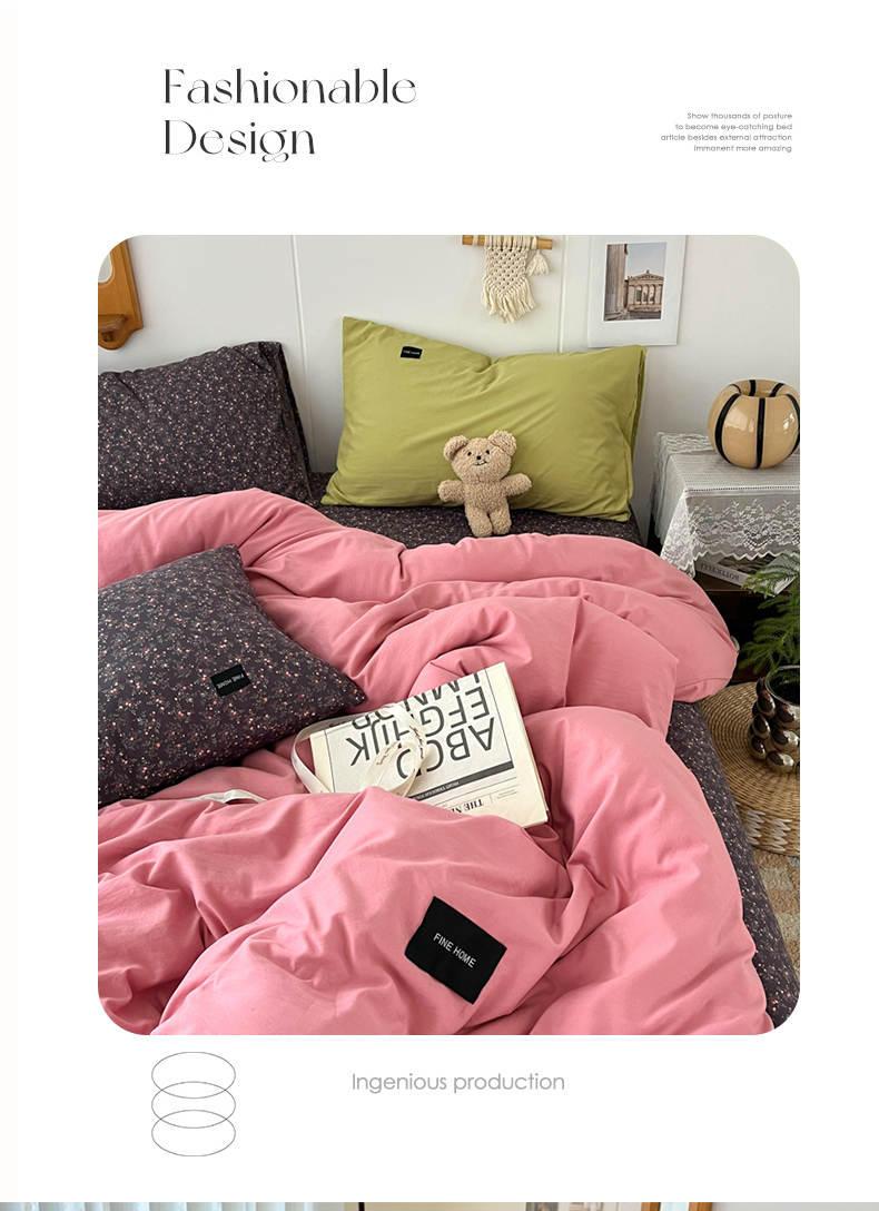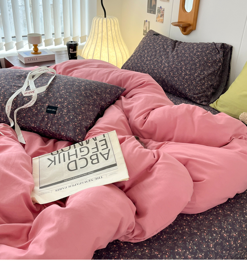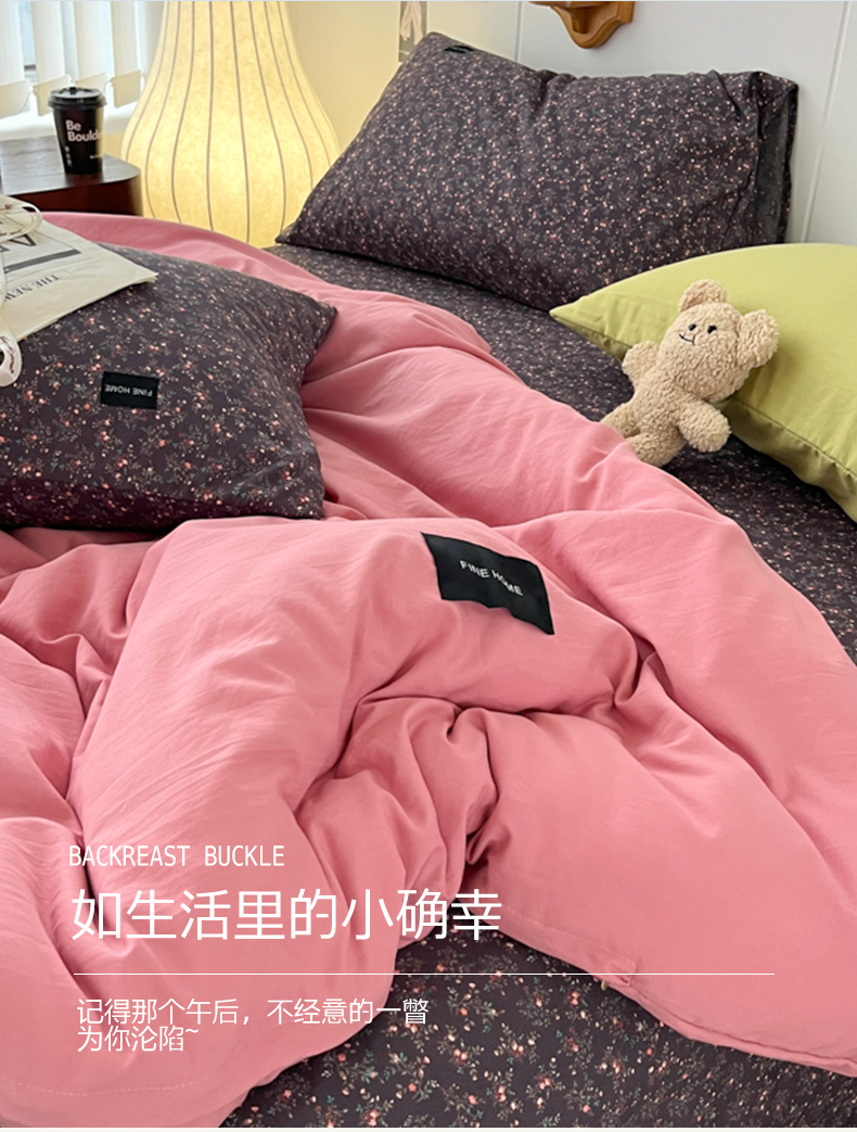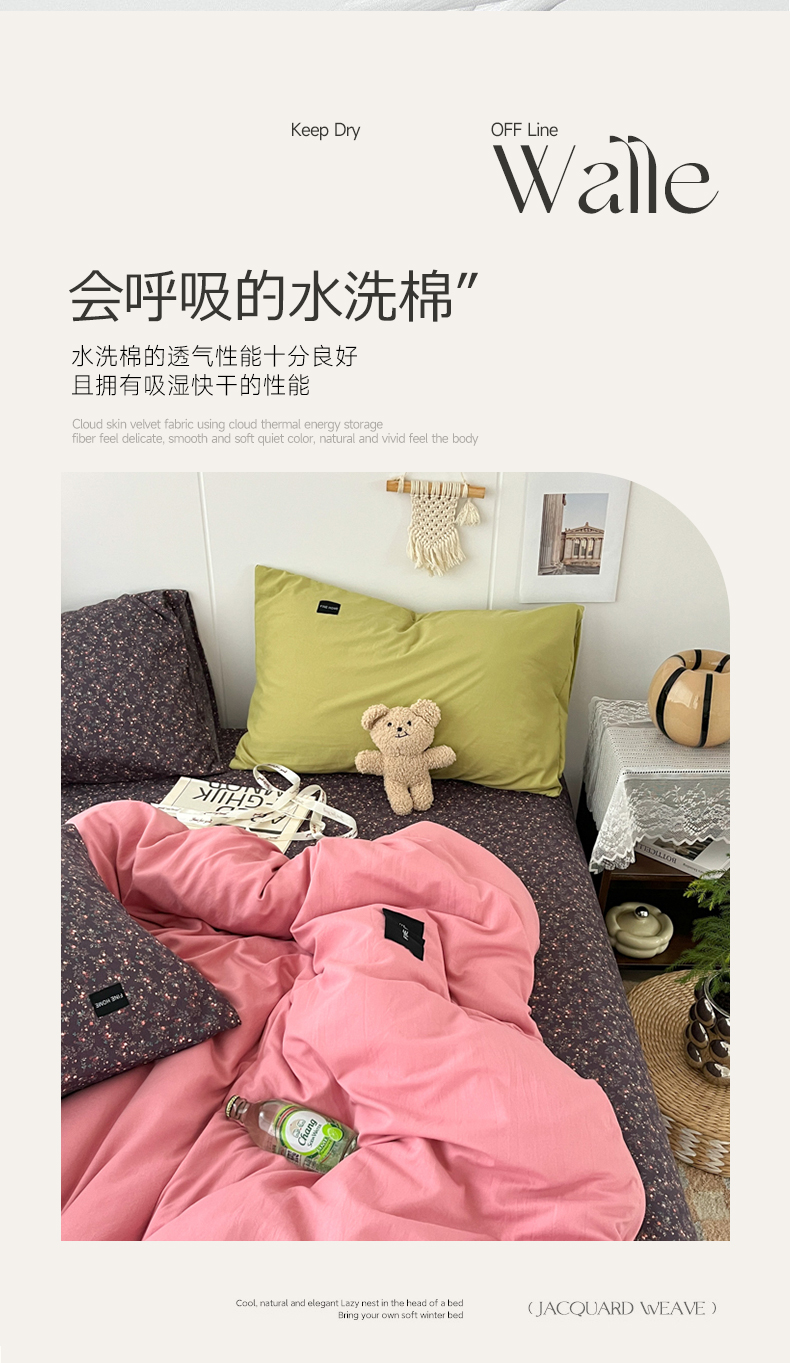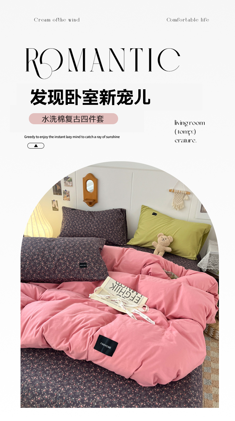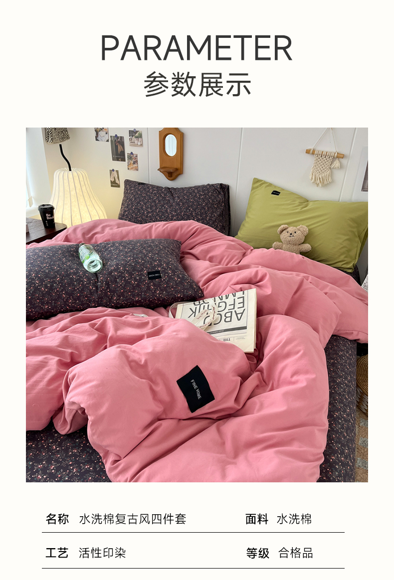 亿品家纺 2025新款水洗棉复古风格四件套 中古风-豆沙粉