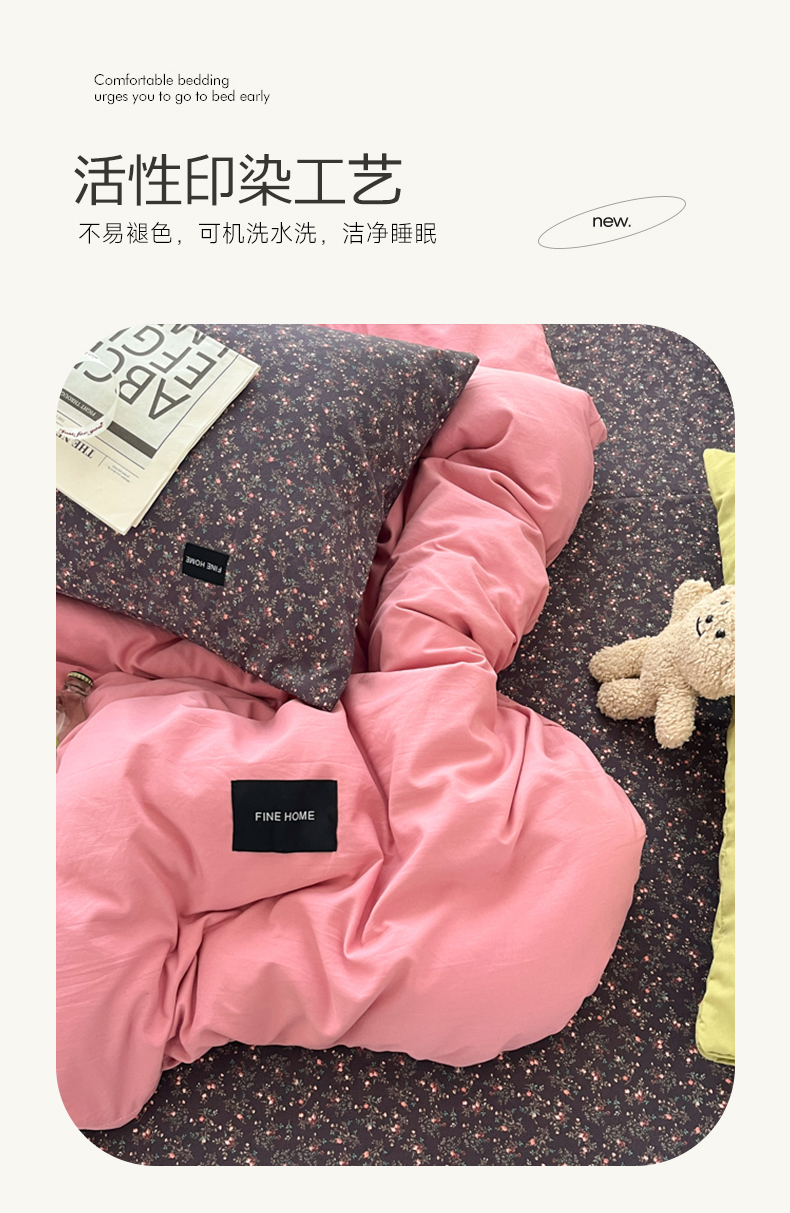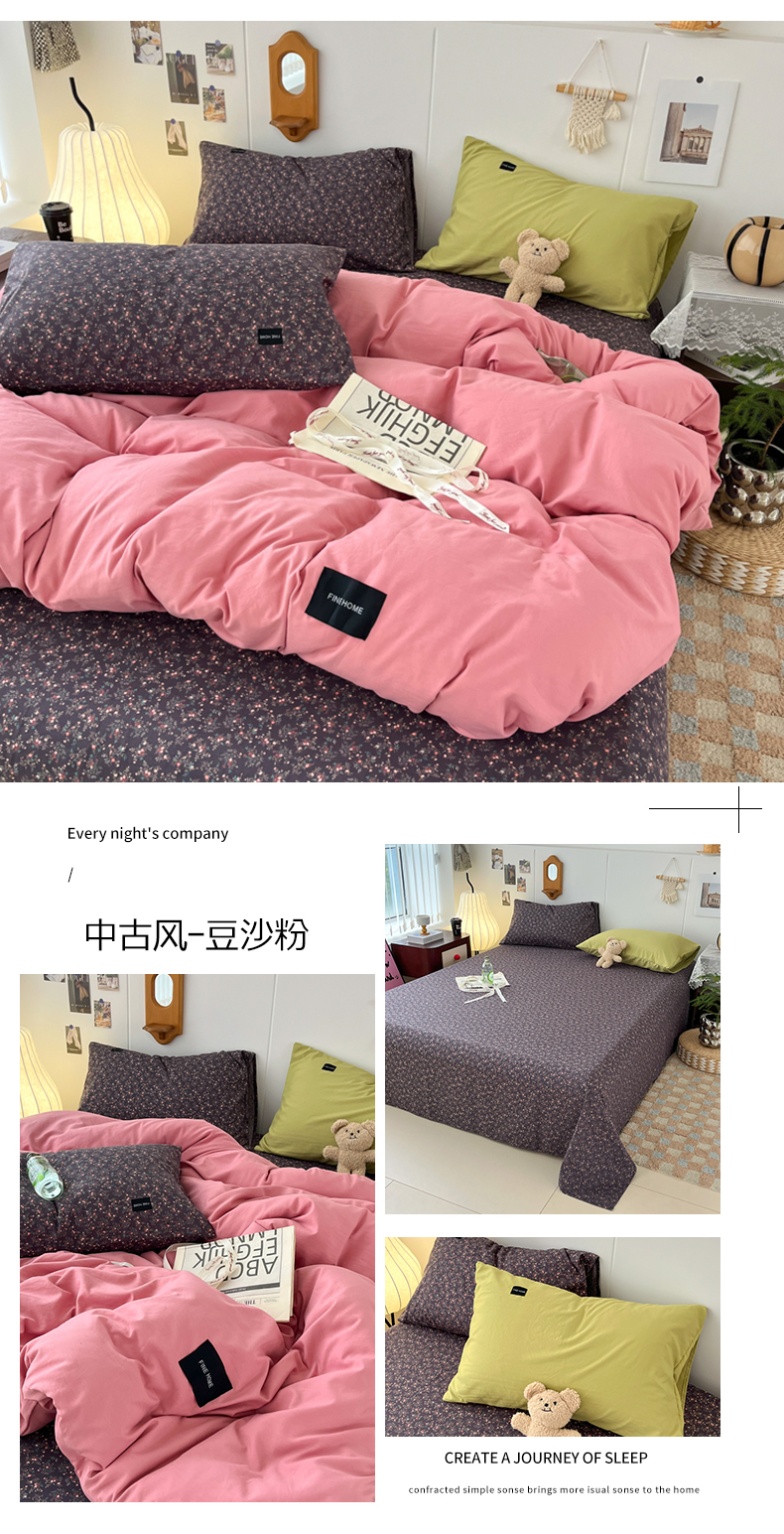 商品名称:亿品家纺 2025新款水洗棉复古风格四件套 中古风-豆沙粉
