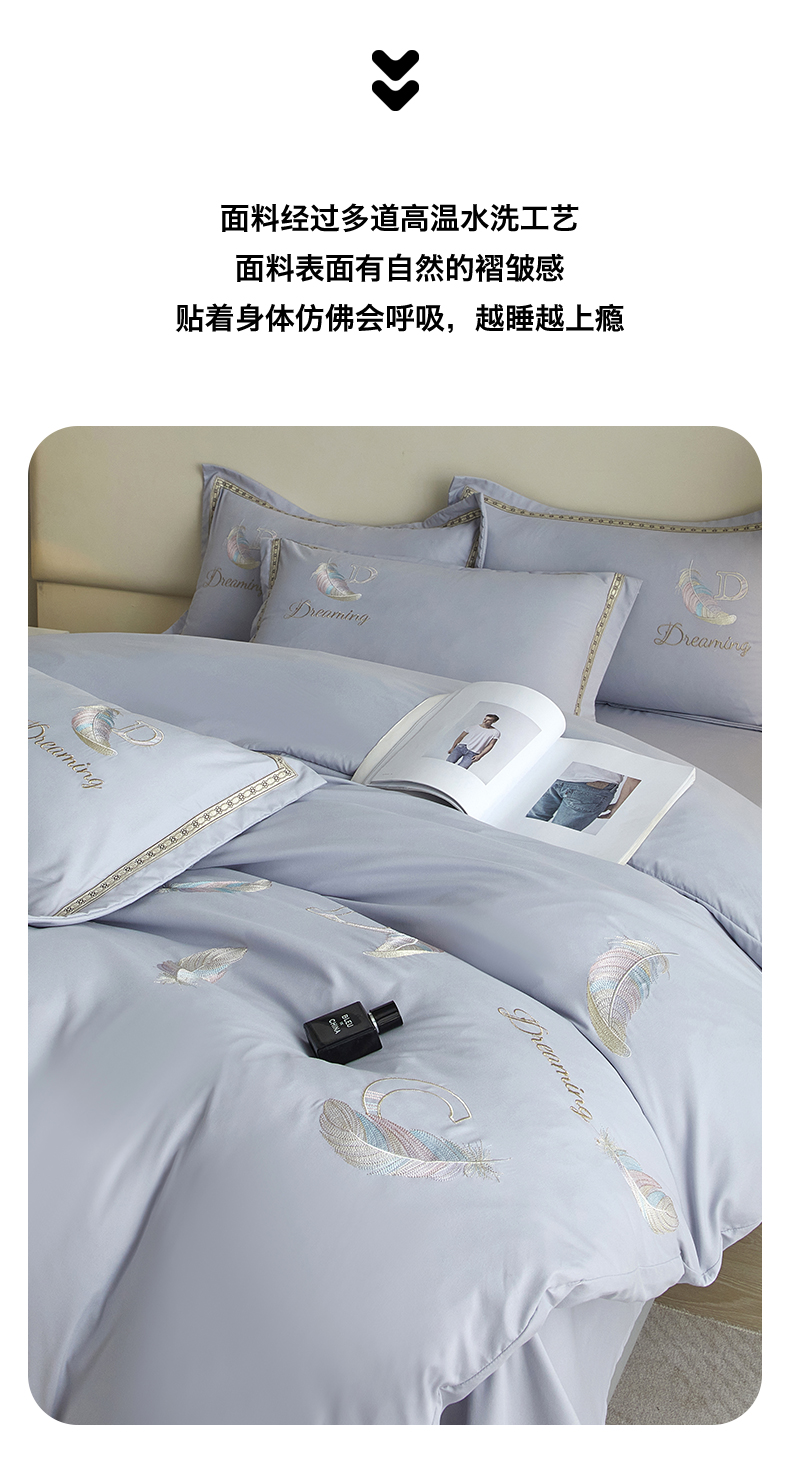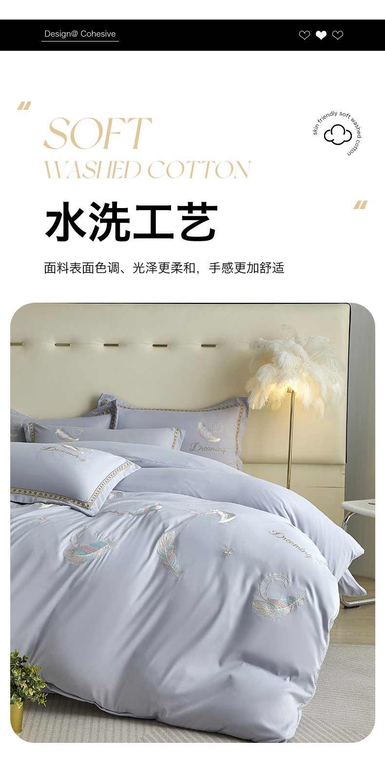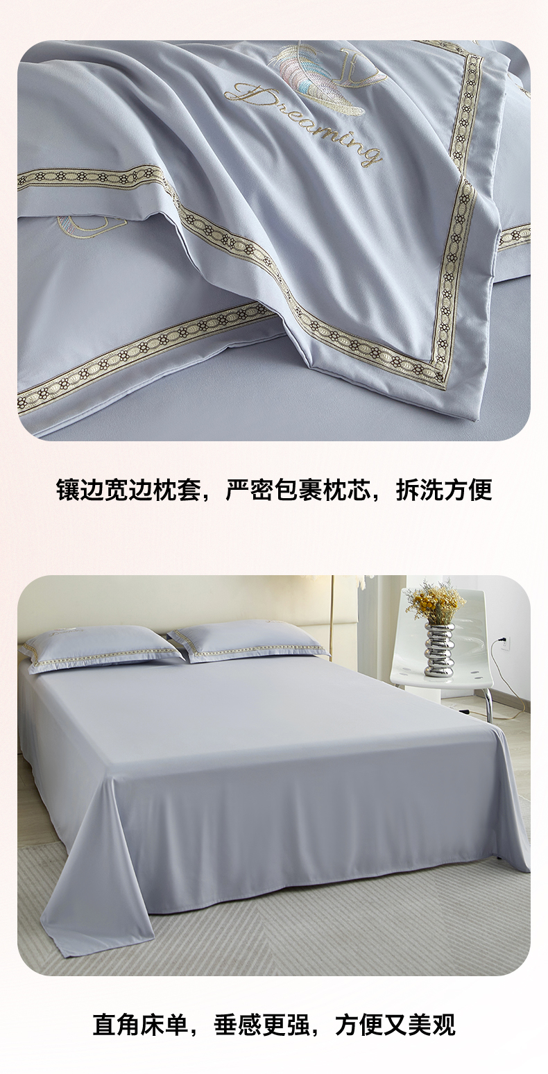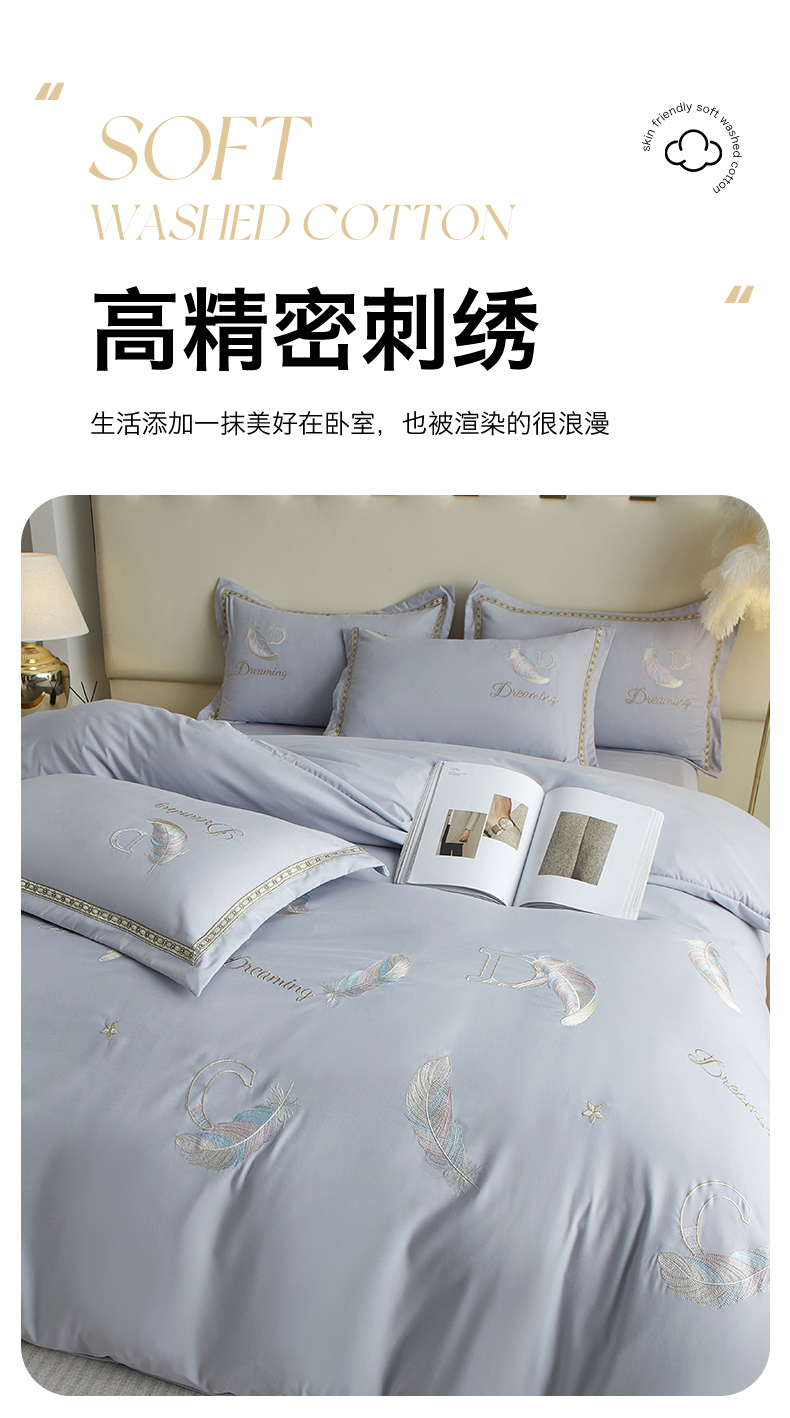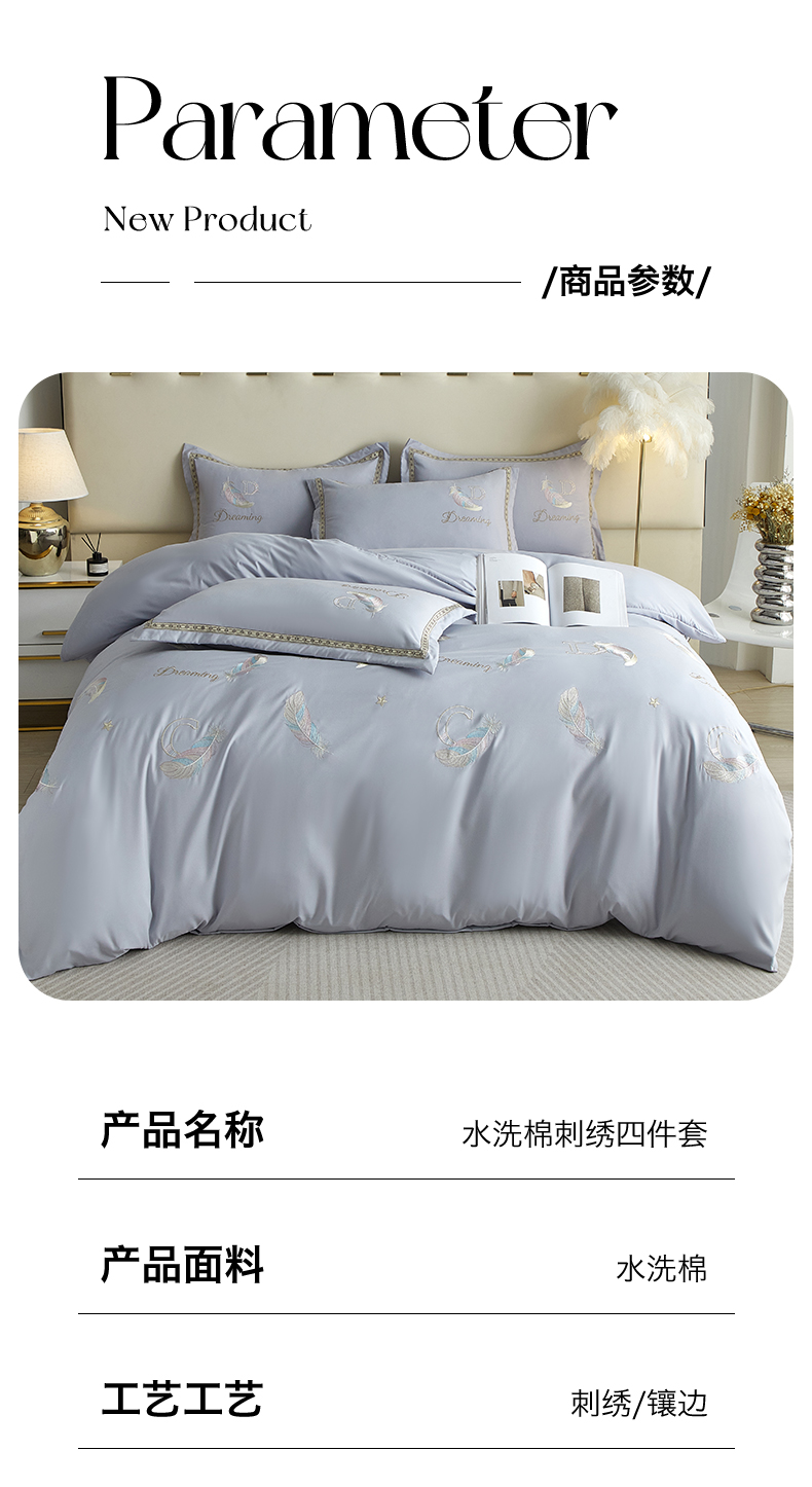 当前位置: 91家纺网 > 商品网购 > 床品套件 > 四件套 > 水洗棉四件套 > 佳宇轩 2025爆款水洗棉五彩刺绣四件套简约轻奢织带绣花床单床笠被罩4件套-蜜羽 蜜羽-浅灰