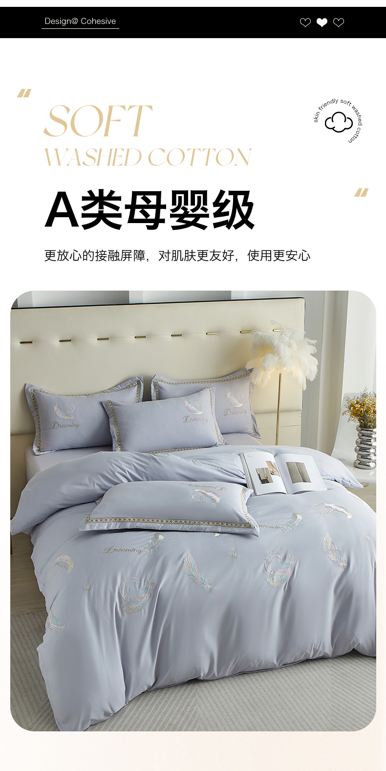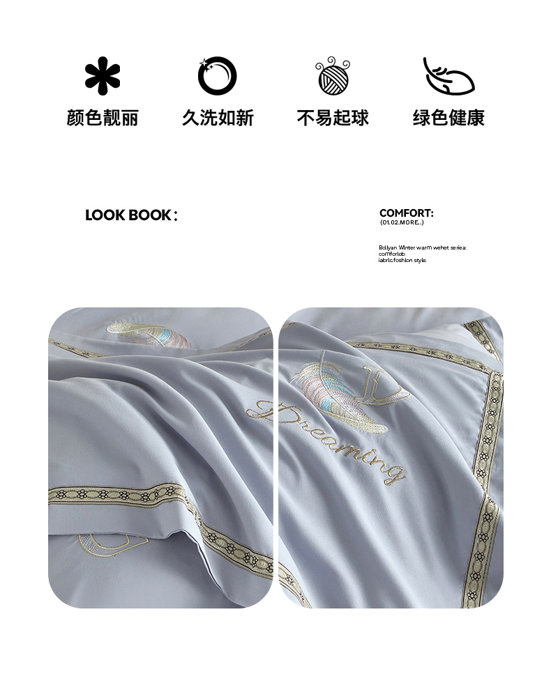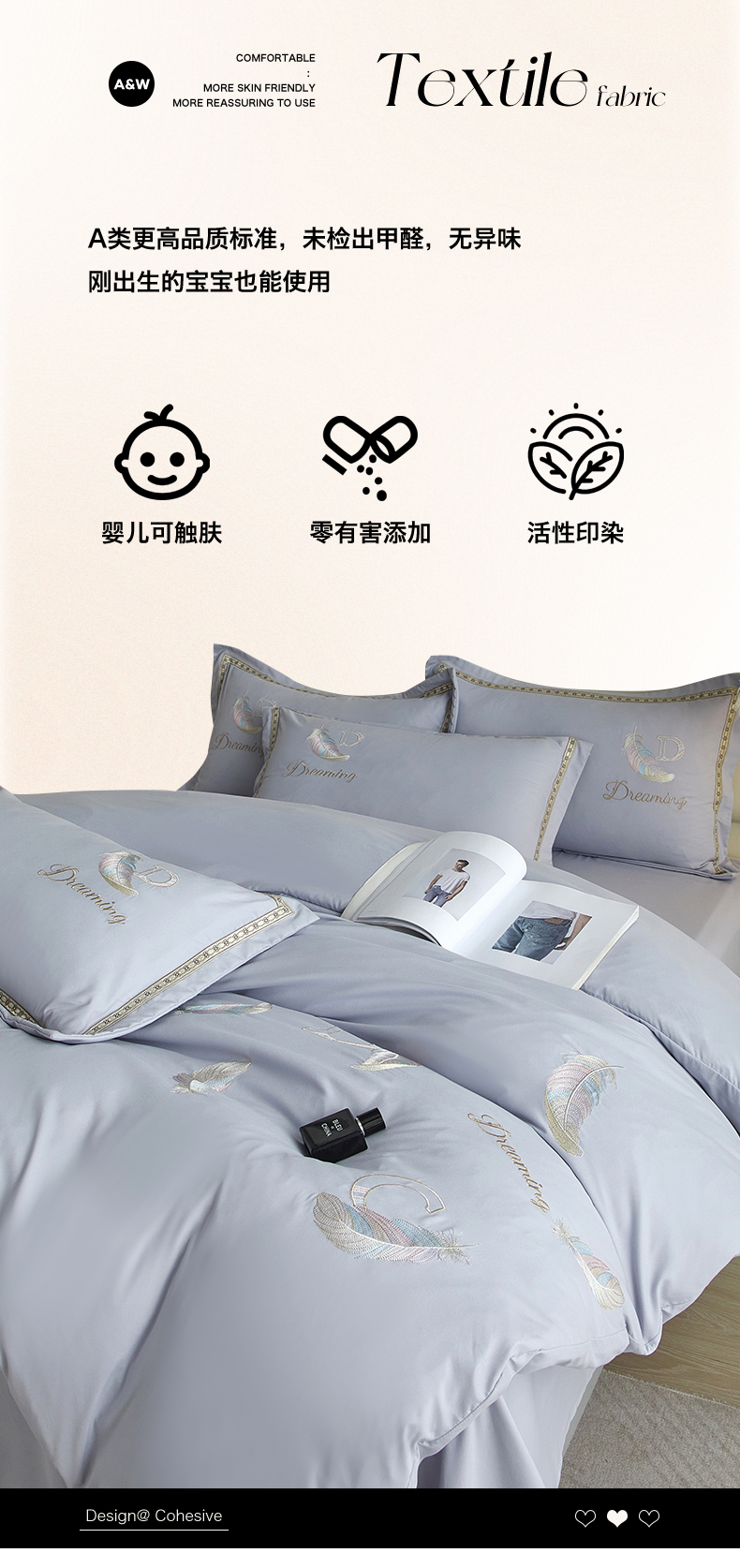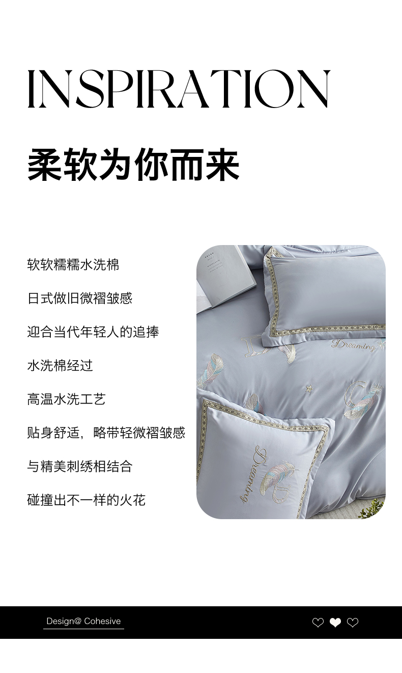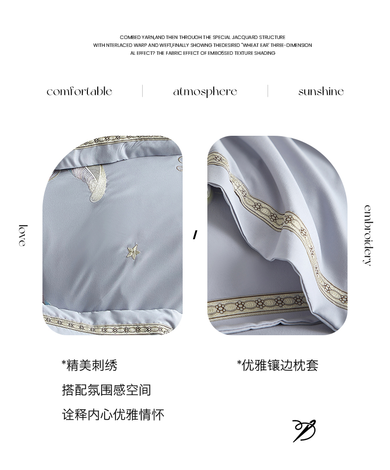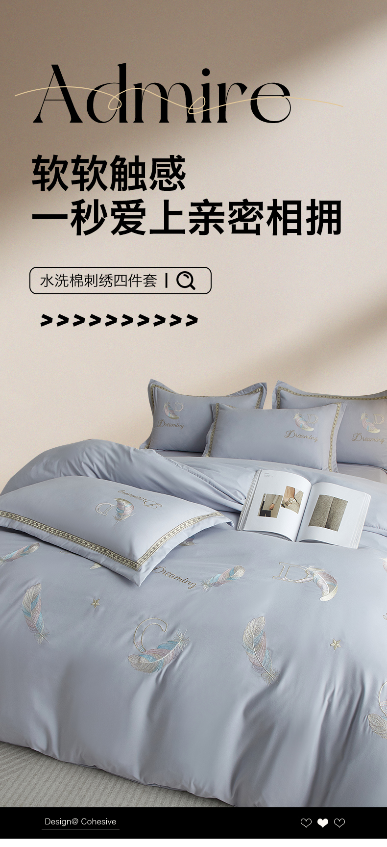 当前位置: 91家纺网 > 商品网购 > 床品套件 > 四件套 > 水洗棉四件套 > 佳宇轩 2025爆款水洗棉五彩刺绣四件套简约轻奢织带绣花床单床笠被罩4件套-蜜羽 蜜羽-浅灰
