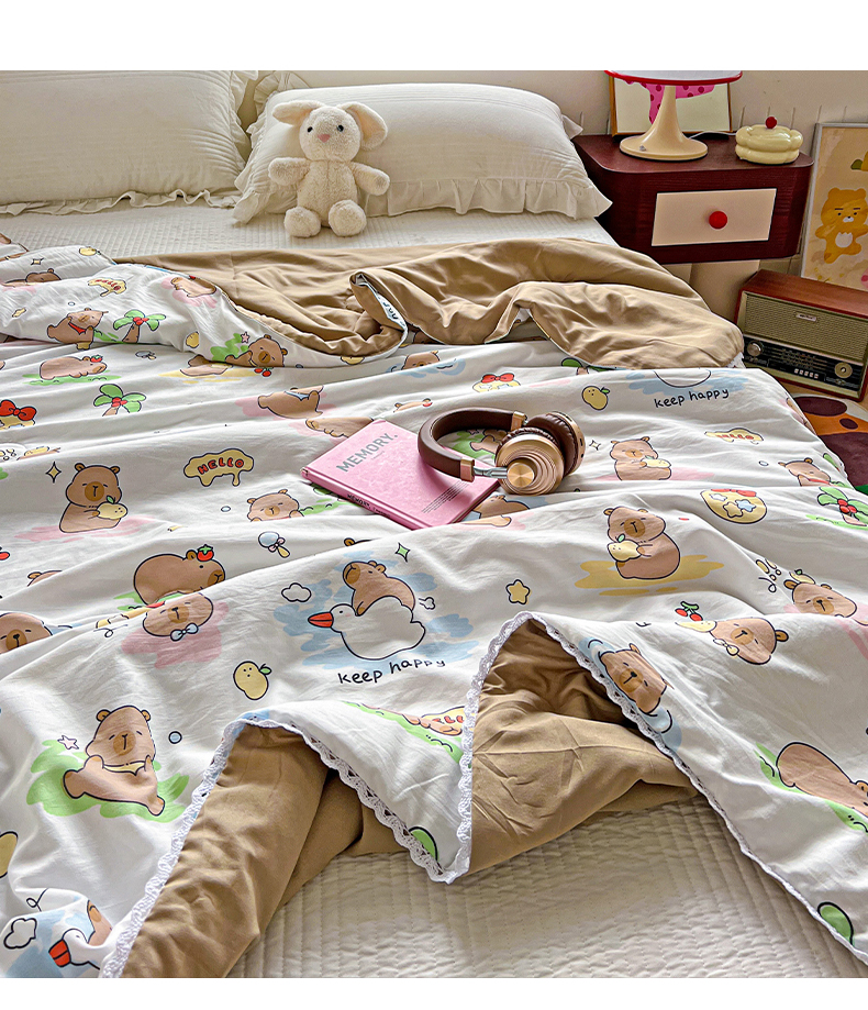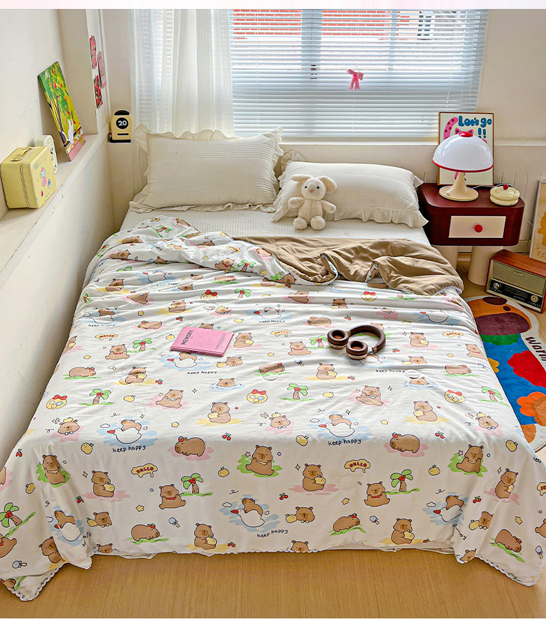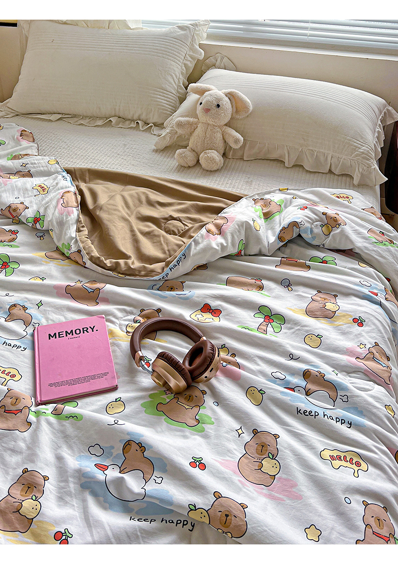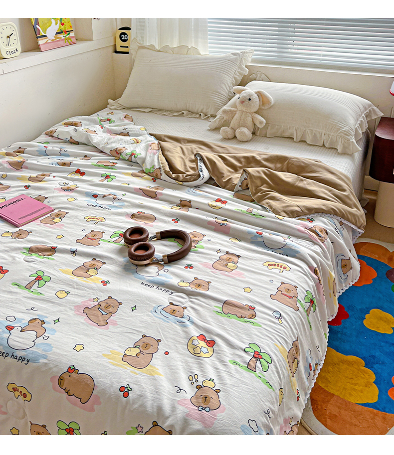 商品名称:妖妖家纺 2025新款超柔双层纱糯糯针织棉夏凉被 可爱卡皮巴拉