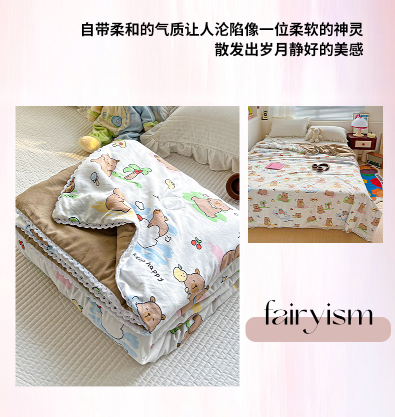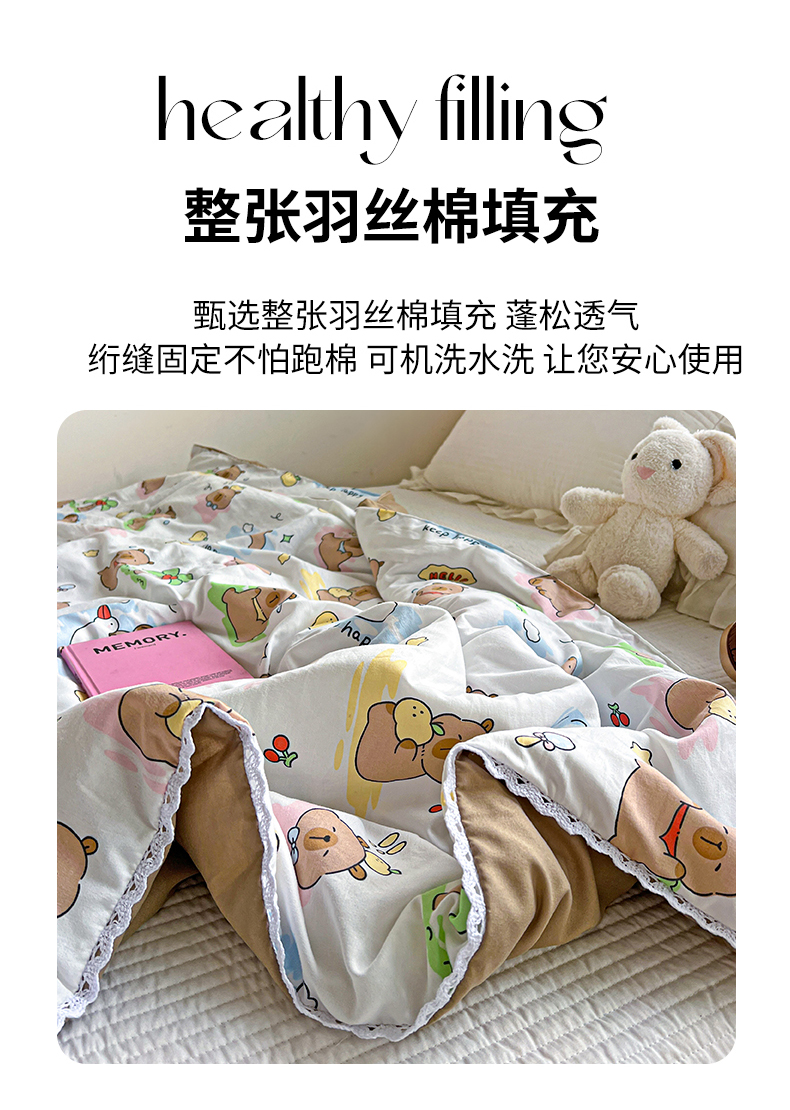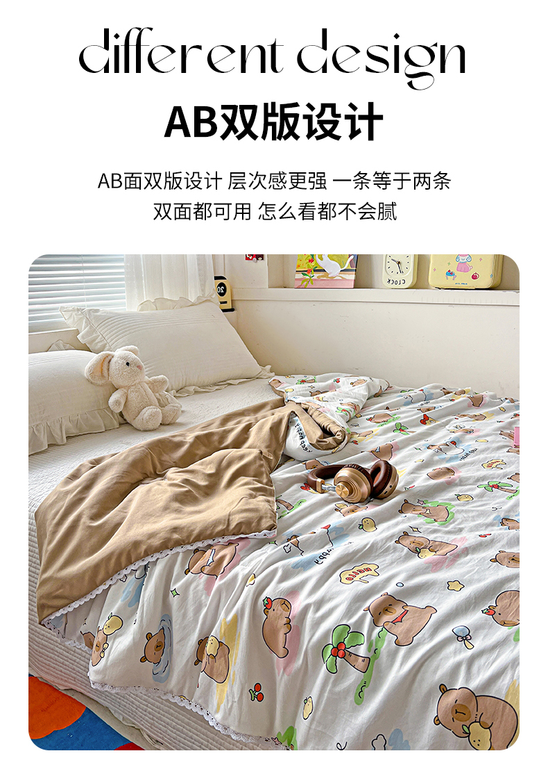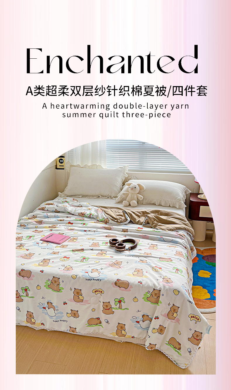 商品名称:妖妖家纺 2025新款超柔双层纱糯糯针织棉夏凉被 可爱卡皮巴拉