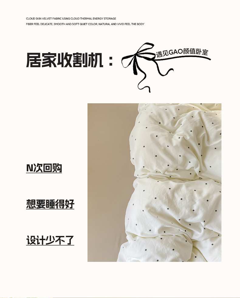 • 91家纺网 家纺一手货源 找家纺 【提供买家秀】2025直播云感皱皱棉四件套水洗棉小清新碎花简约风单品单被套 波点白
