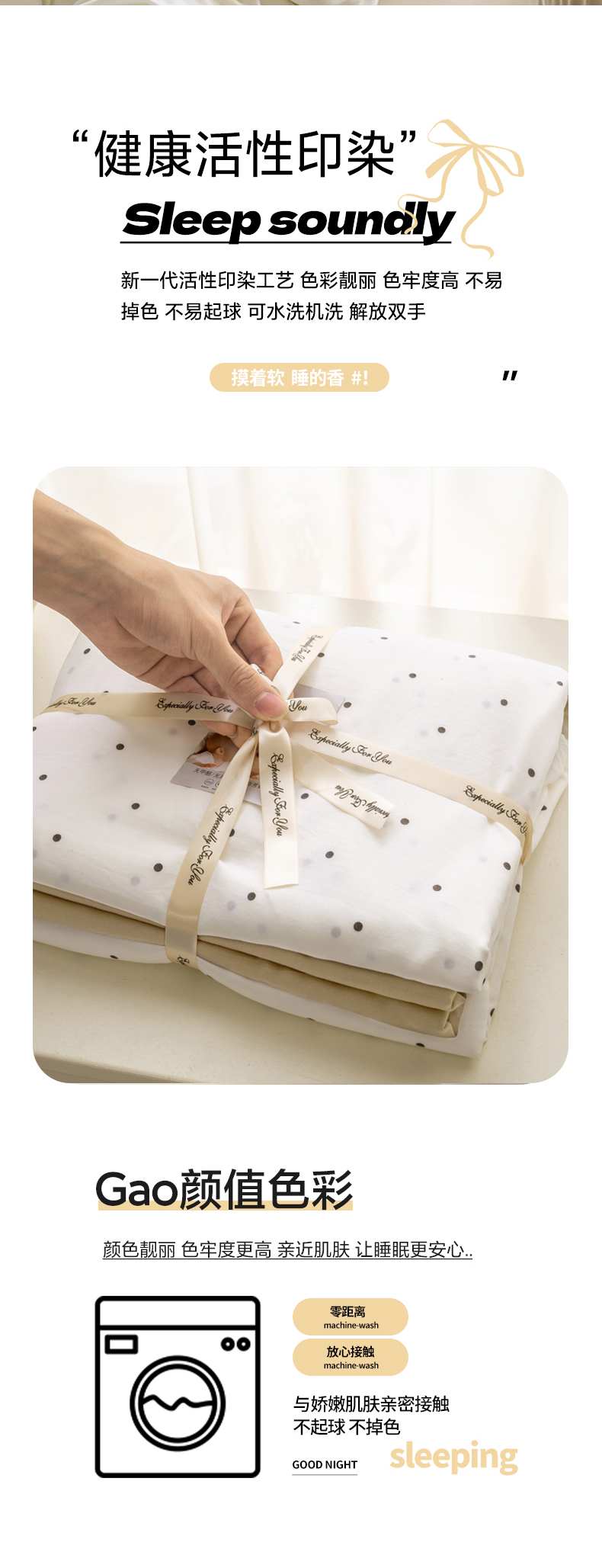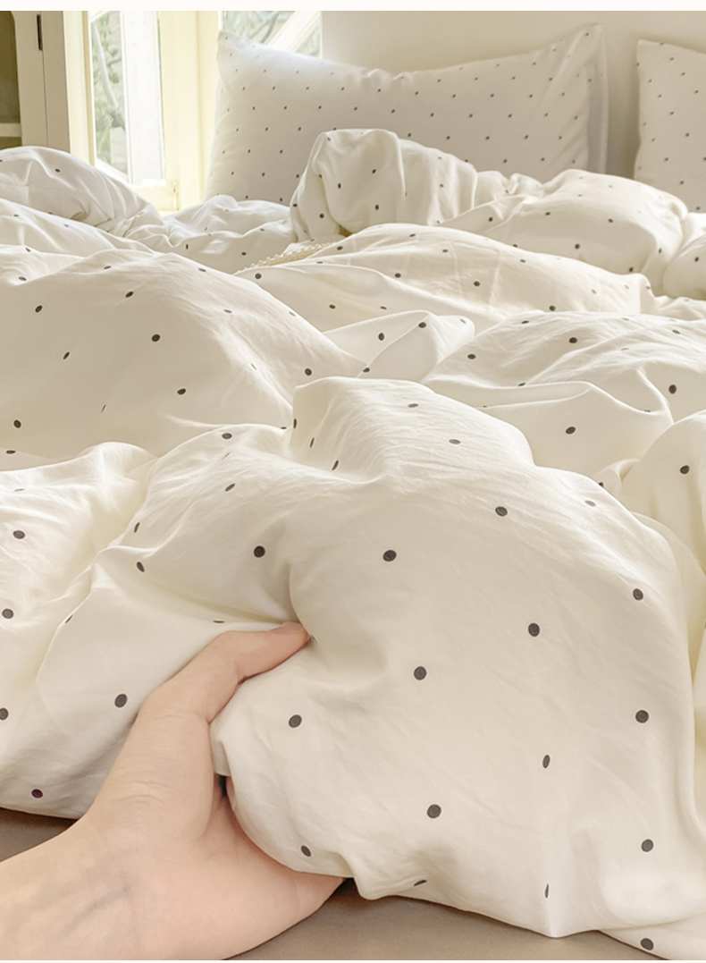 【提供买家秀】2025直播云感皱皱棉四件套水洗棉小清新碎花简约风单品单被套 波点白