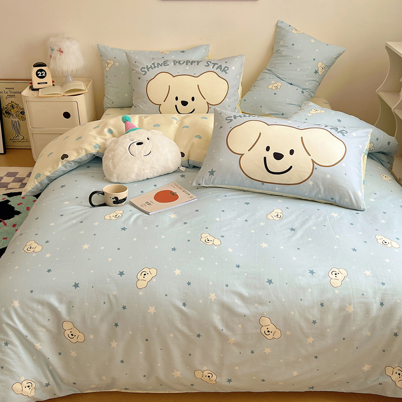 商品名称:桃喜 2025新款13372经典混搭全棉卡通四件套 星愿小狗