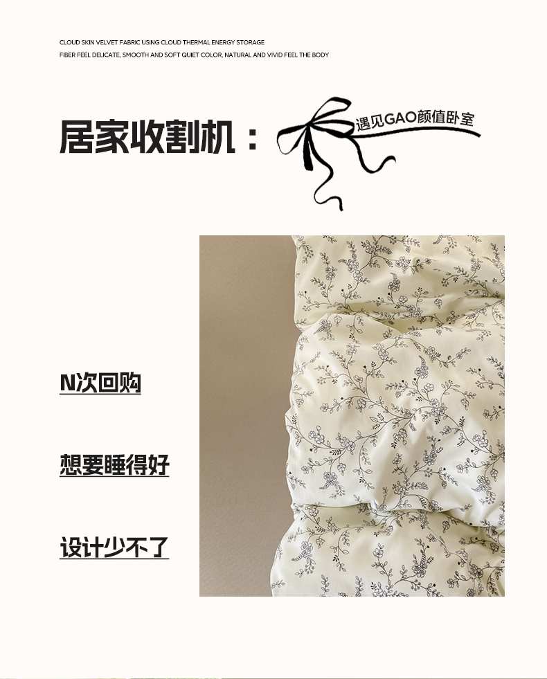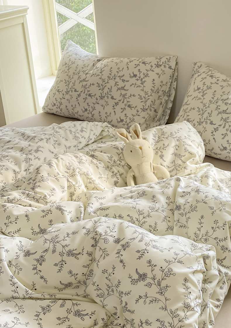 当前位置: 91家纺网 > 商品网购 > 床品套件 > 四件套 > 全棉普通四件套 > 【提供买家秀】2025直播云感皱皱棉四件套水洗棉简约风小碎花被套床笠三件套-平铺图 馥芮白