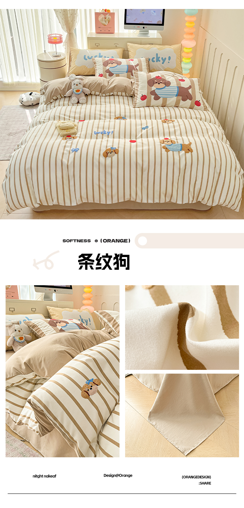 (总)如一 2025新款卡通毛巾绣系列牛奶绒四件套,卡皮柿子,爱心天使,豹纹黑皮,草莓灰猫,蛋糕小狗,粉格小猫,海绵宝宝,快乐企鹅,拉布饼干,蓝格黑猫,领结粉兔,苹果拉布,竖条西高,晚安小象,星星宝贝,星星木马,星星派对,星星苹果,星月猫咪,樱桃黑猫