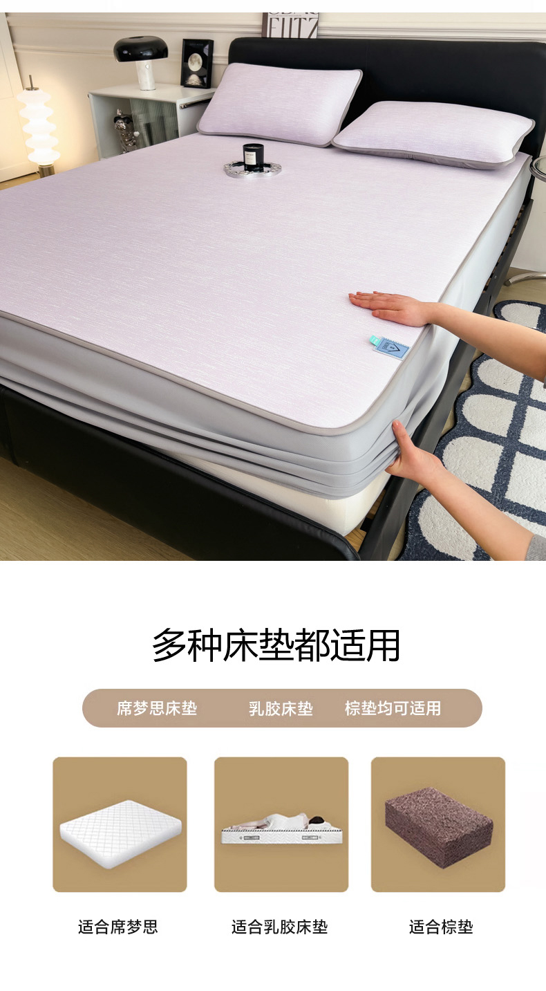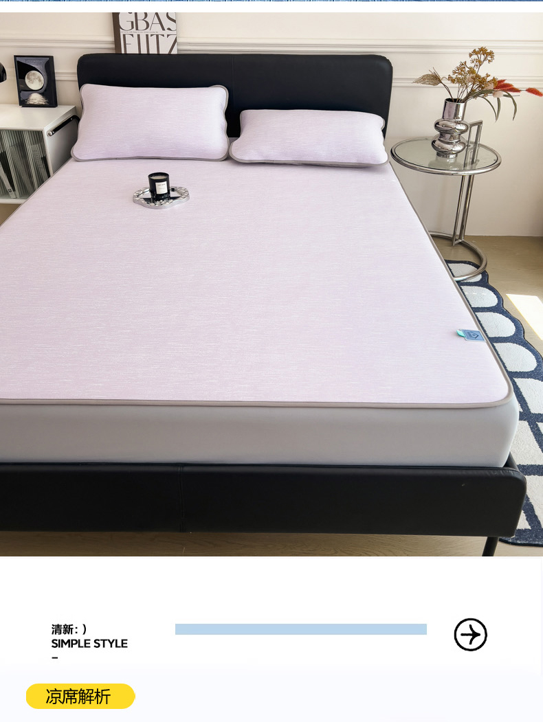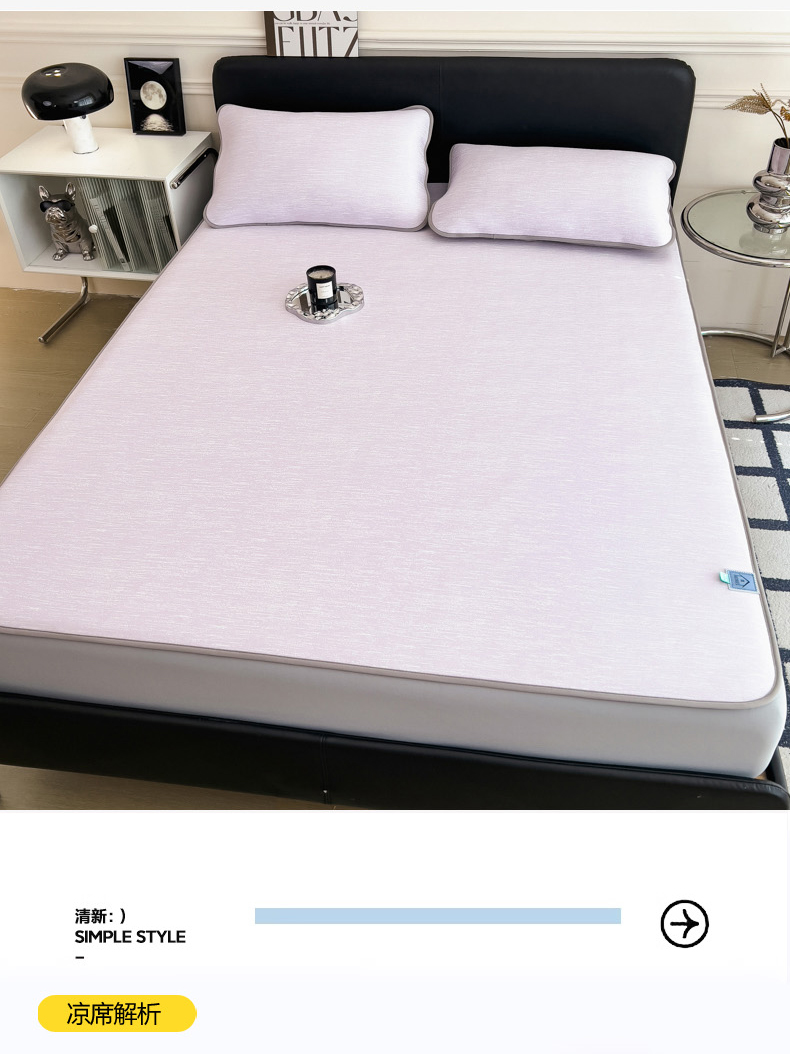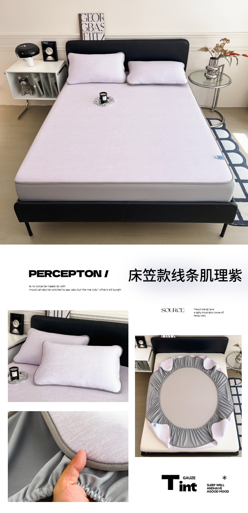 倾慕家纺 2025新款PE40肌理提花贴标席子凉席-床笠款 线条肌理紫床笠款