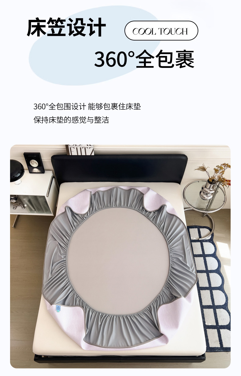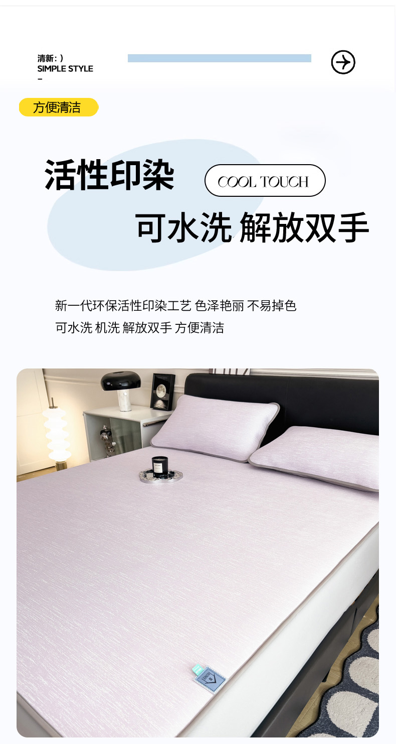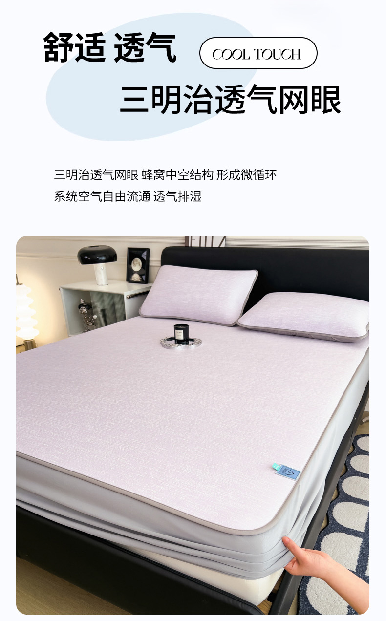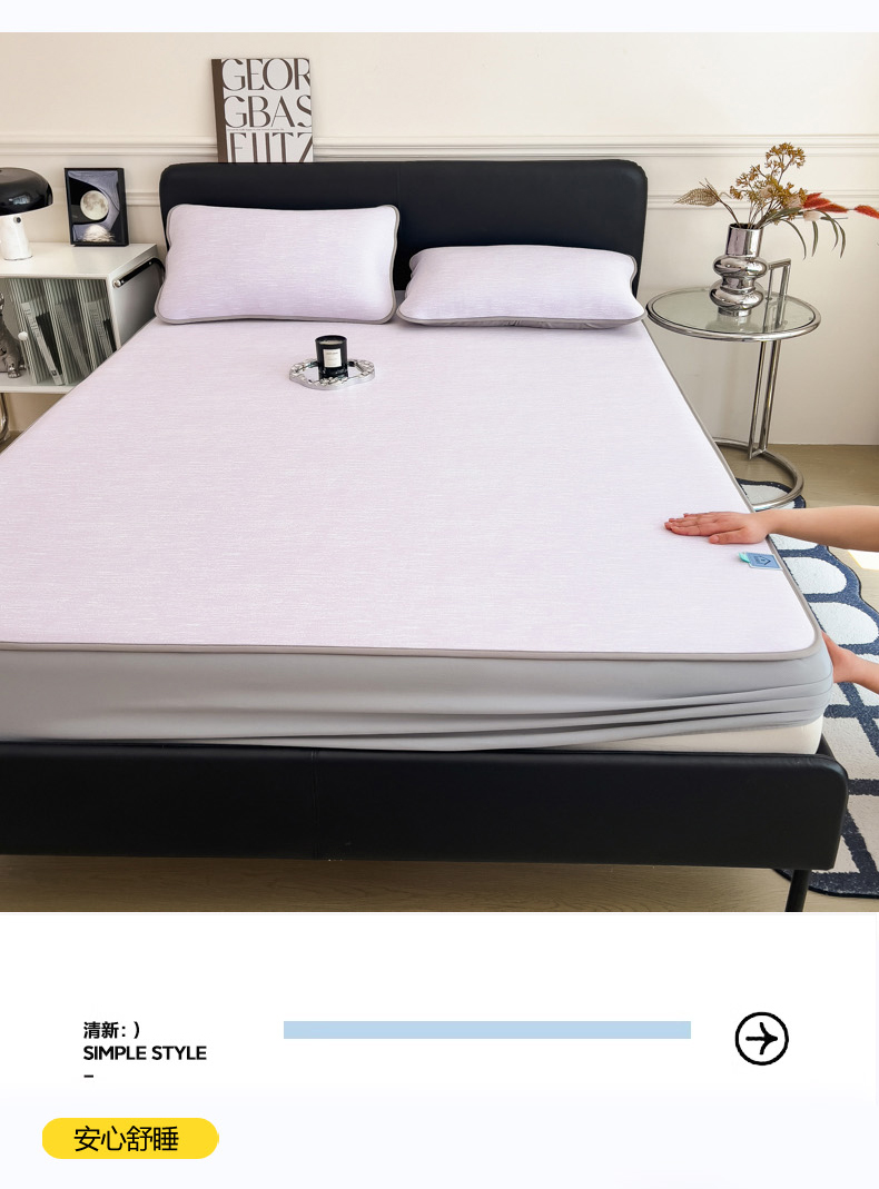 倾慕家纺 2025新款PE40肌理提花贴标席子凉席-床笠款 线条肌理紫床笠款