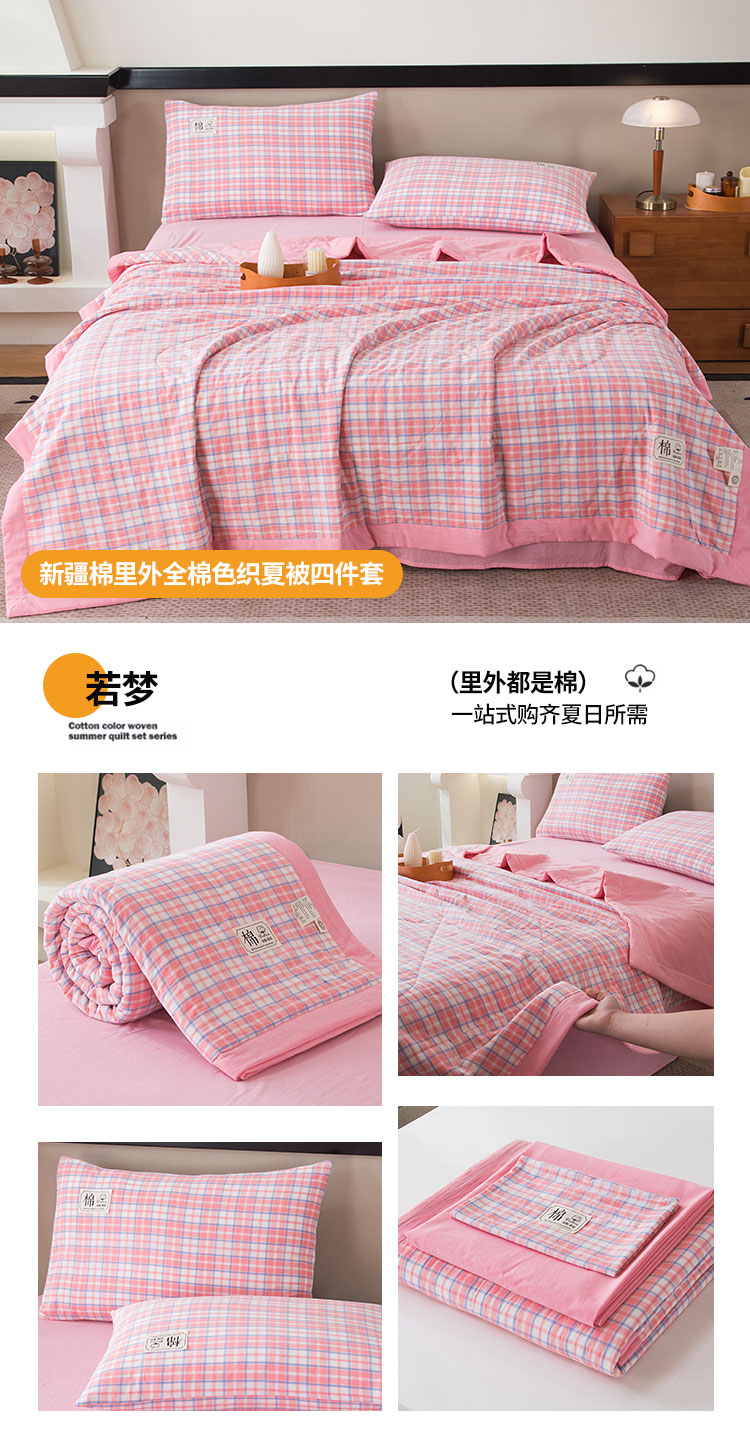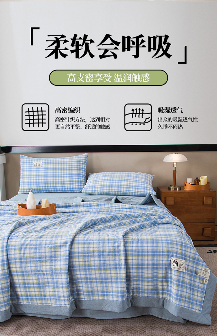 • 91家纺网 家纺一手货源 找家纺 三俏家纺 2025新款新疆棉花被夏被100%里外全棉棉花夏被无印风全棉色织水洗棉夏凉被空调被春秋被单人可机洗-风格二 春叶