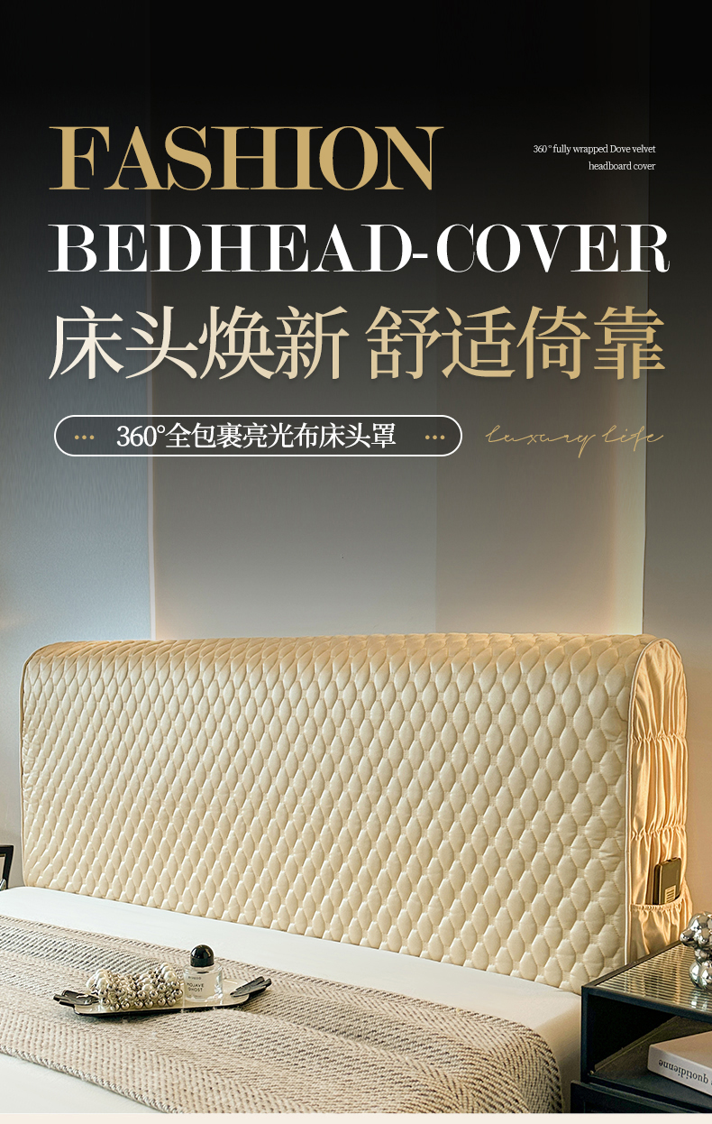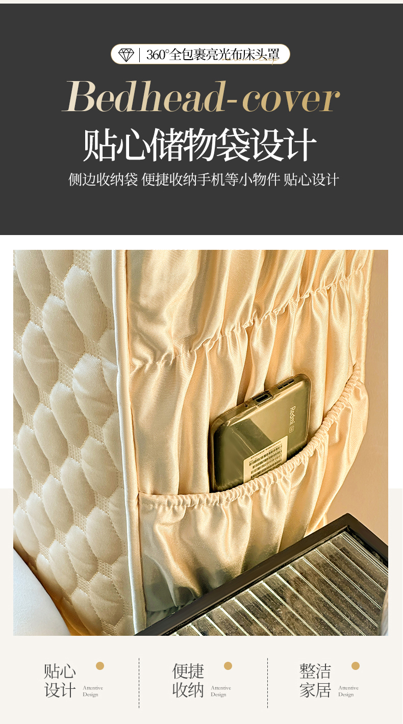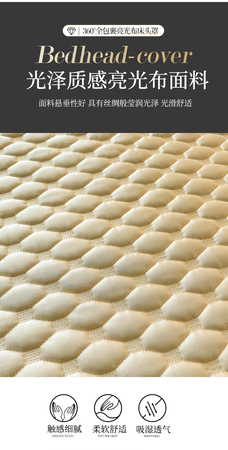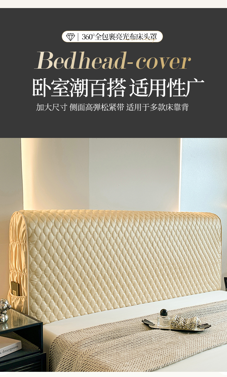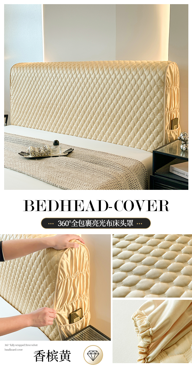 • 91家纺网 家纺一手货源 找家纺 情恒家纺 2025夏季款亮光布加厚双面用床头罩 香槟黄