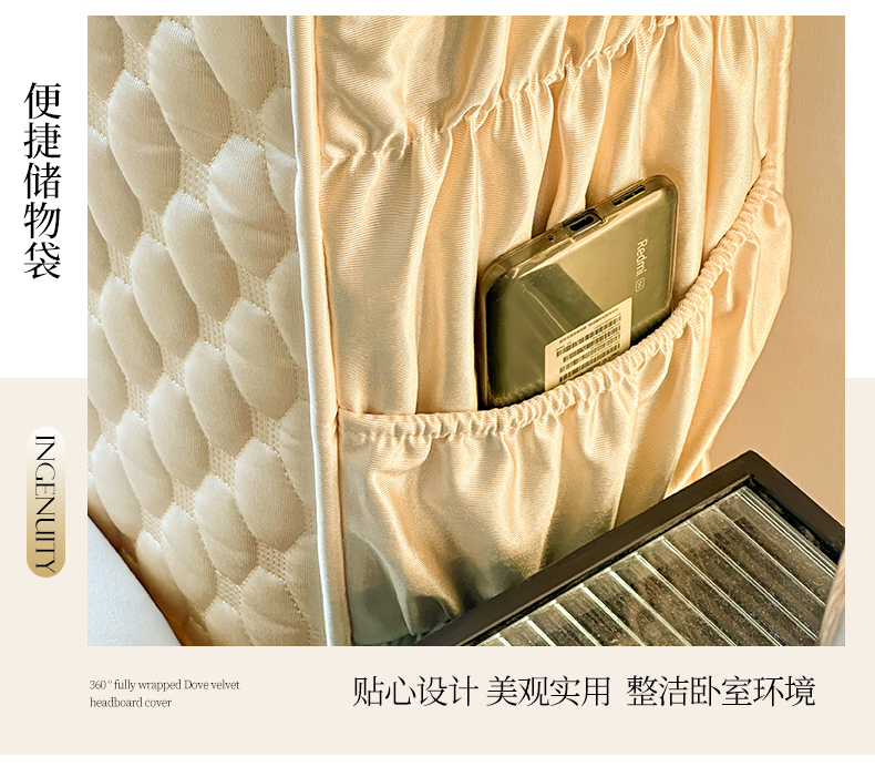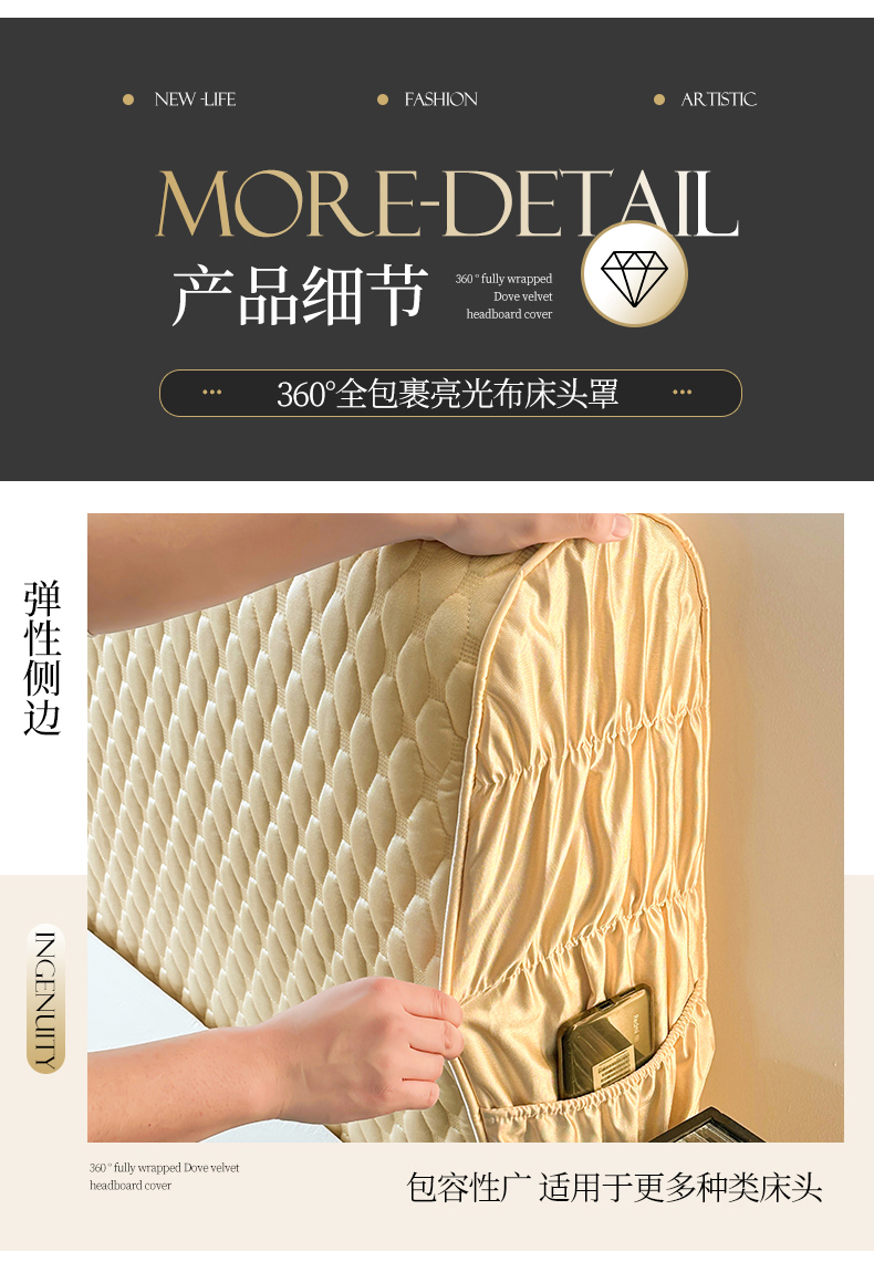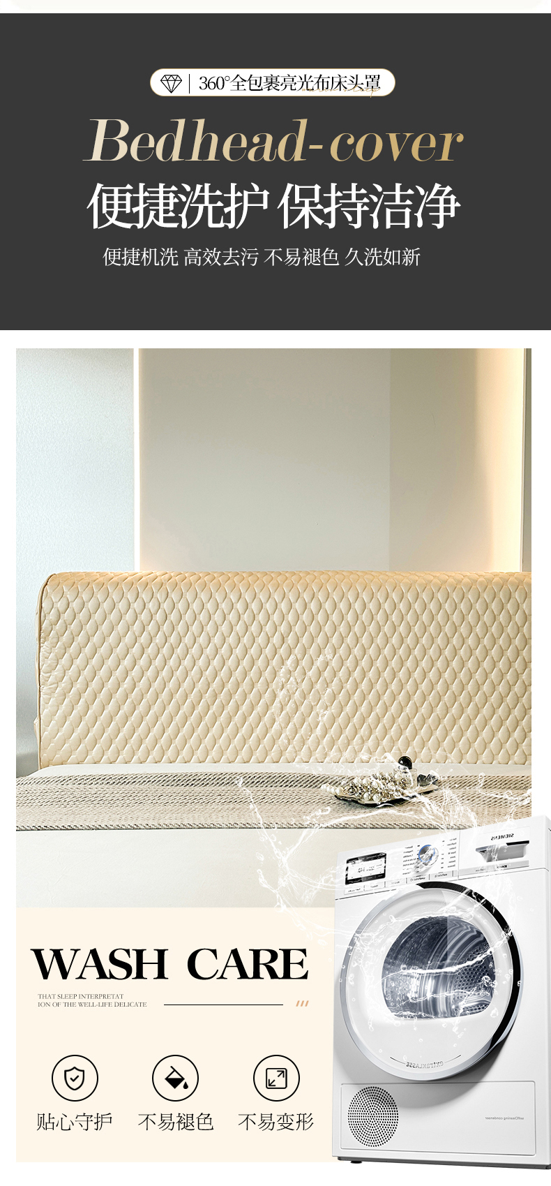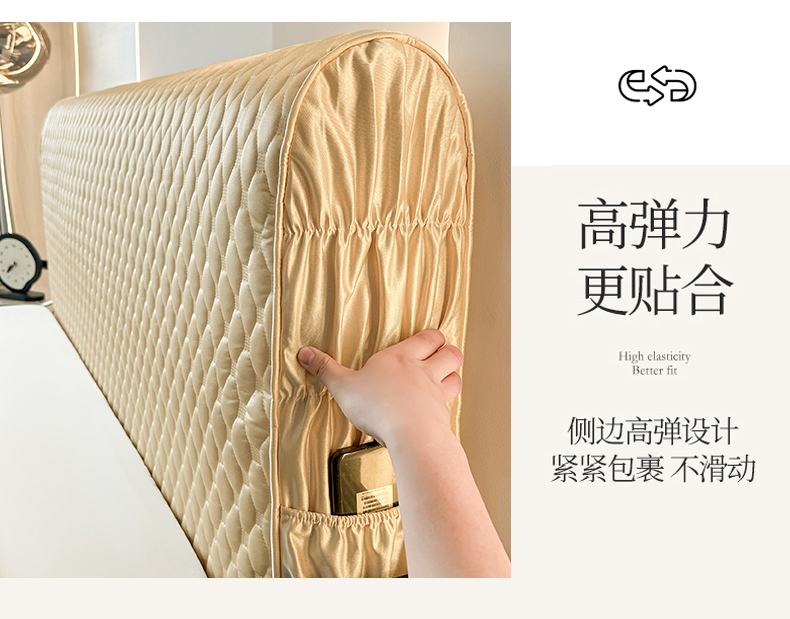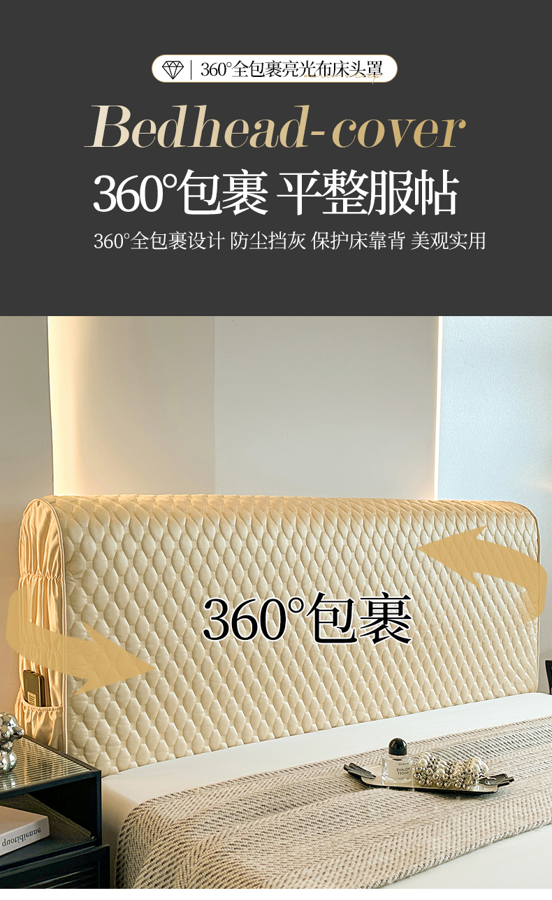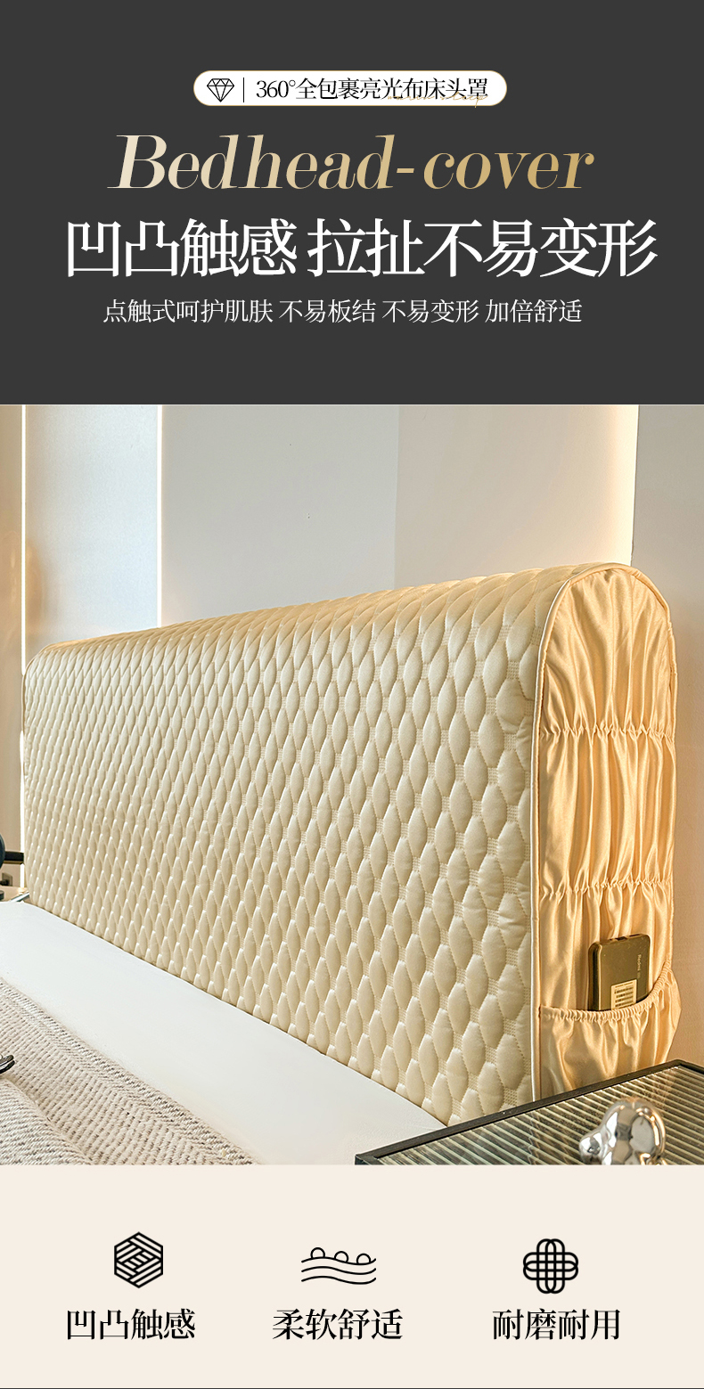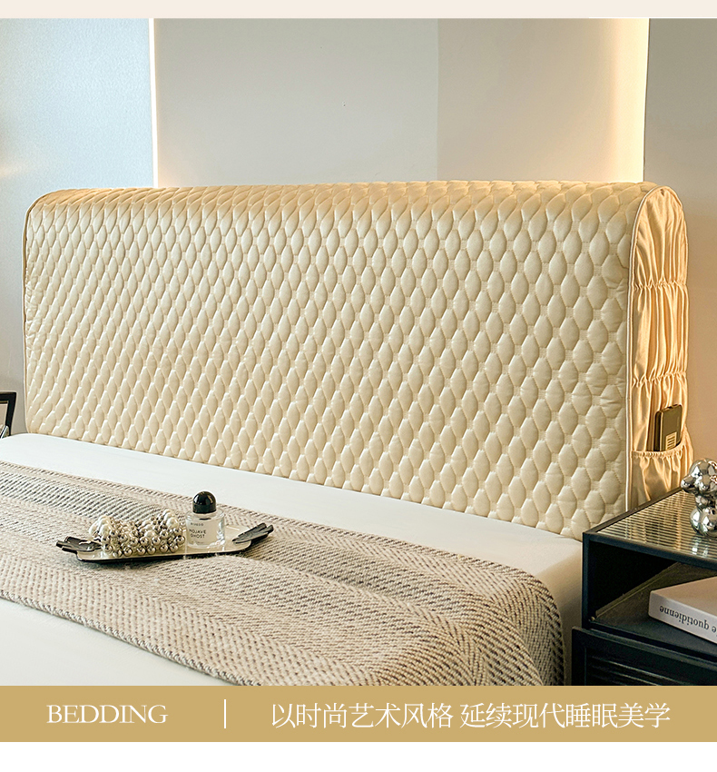• 91家纺网 家纺一手货源 找家纺 情恒家纺 2025夏季款亮光布加厚双面用床头罩 香槟黄