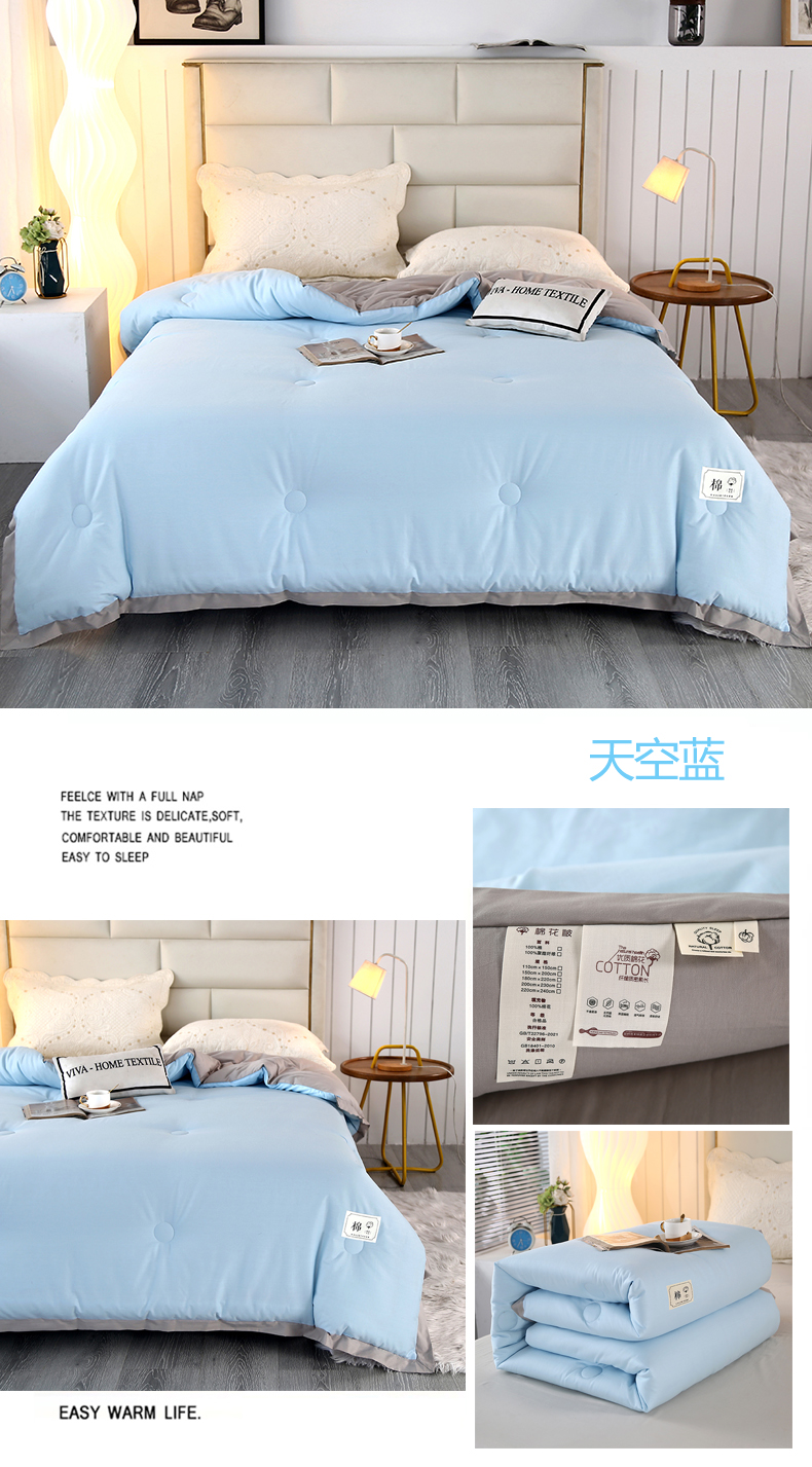 玉清坊 2025新款色织水洗棉新疆棉花夏被【支持一件代发】 海蓝大格,海蓝大格