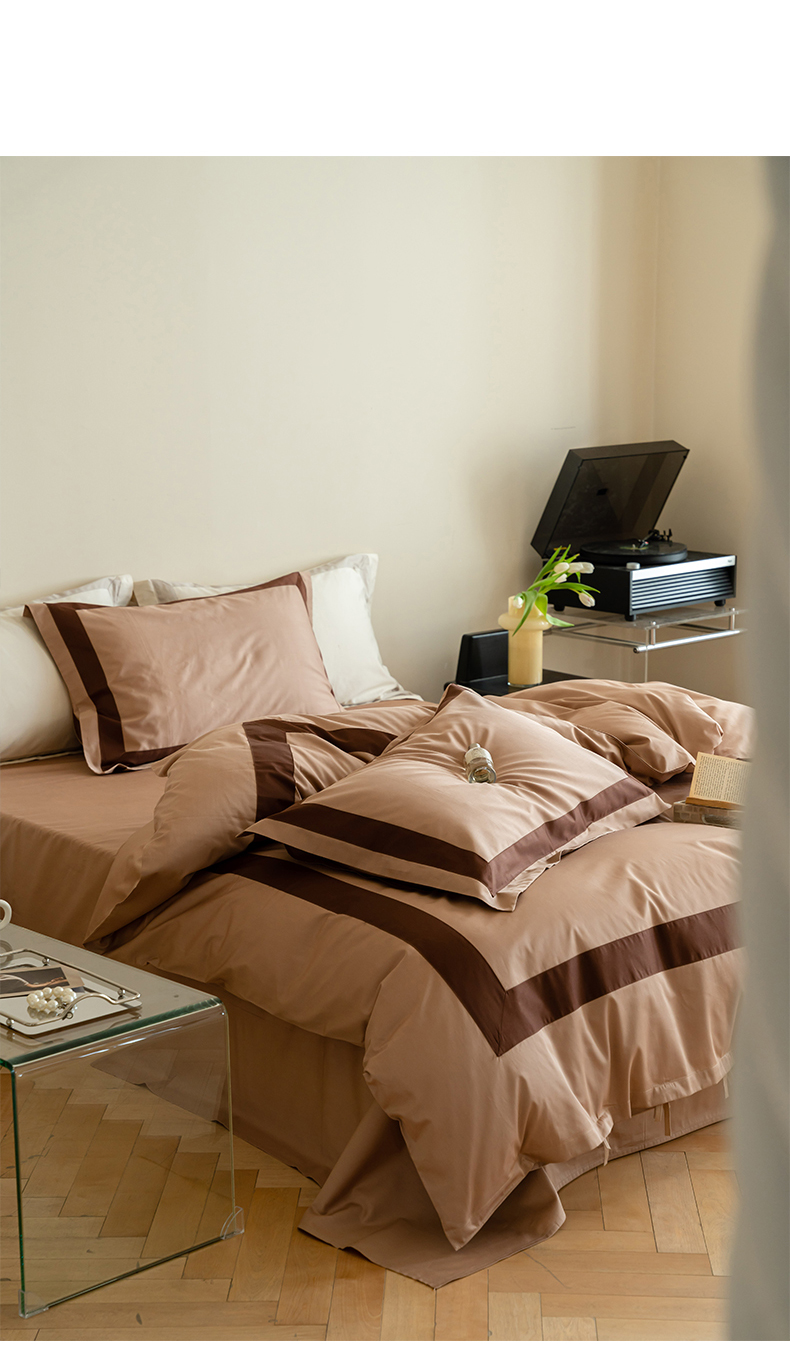 华超针织2025新款全棉长绒棉贡缎贴边四件套 暖杏