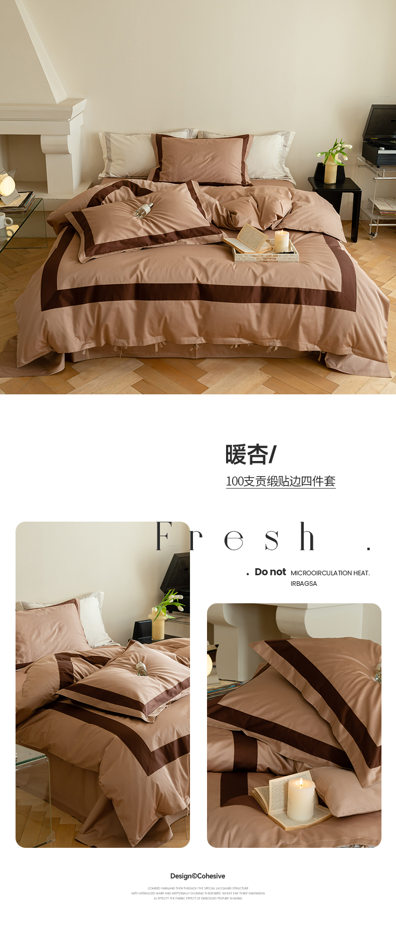 (总) 华超针织 2022新款60支肌理浮雕亲柔纱四件套,布莱垦棕绑带款,可可淡奶绑带款,摩洛哥灰绑带款,塞纳河咖绑带款,布莱垦棕纽扣款,可可淡奶纽扣款,摩洛哥灰纽扣款,塞纳河咖纽扣款
