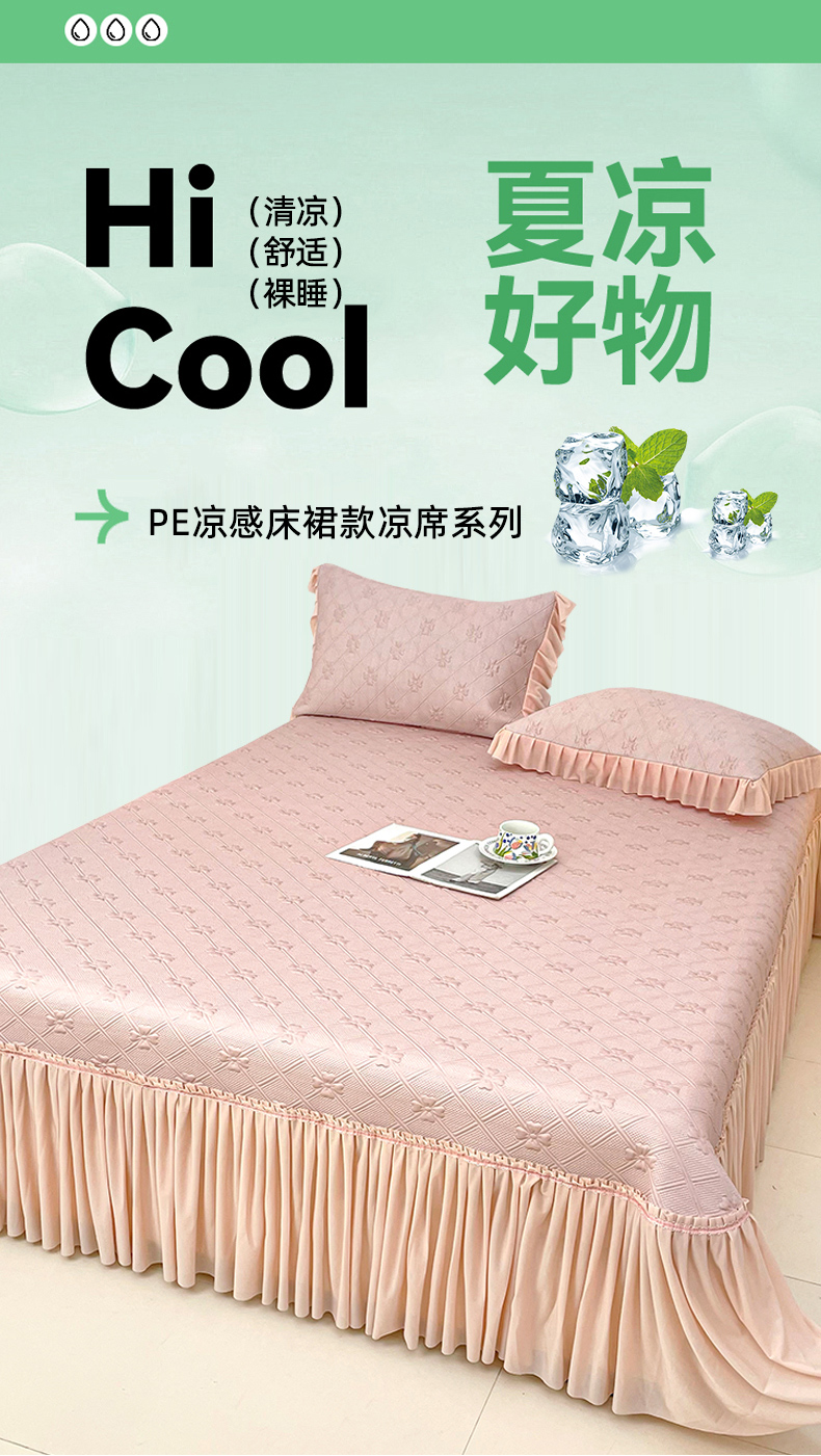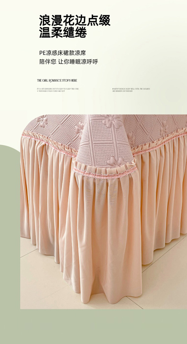 (总)金绣美居 2025新款百分百PE中分子凉感席凉席席子冰感床笠凉席三件套-茶恋花,豆沙,灰色,抹茶色,香槟色