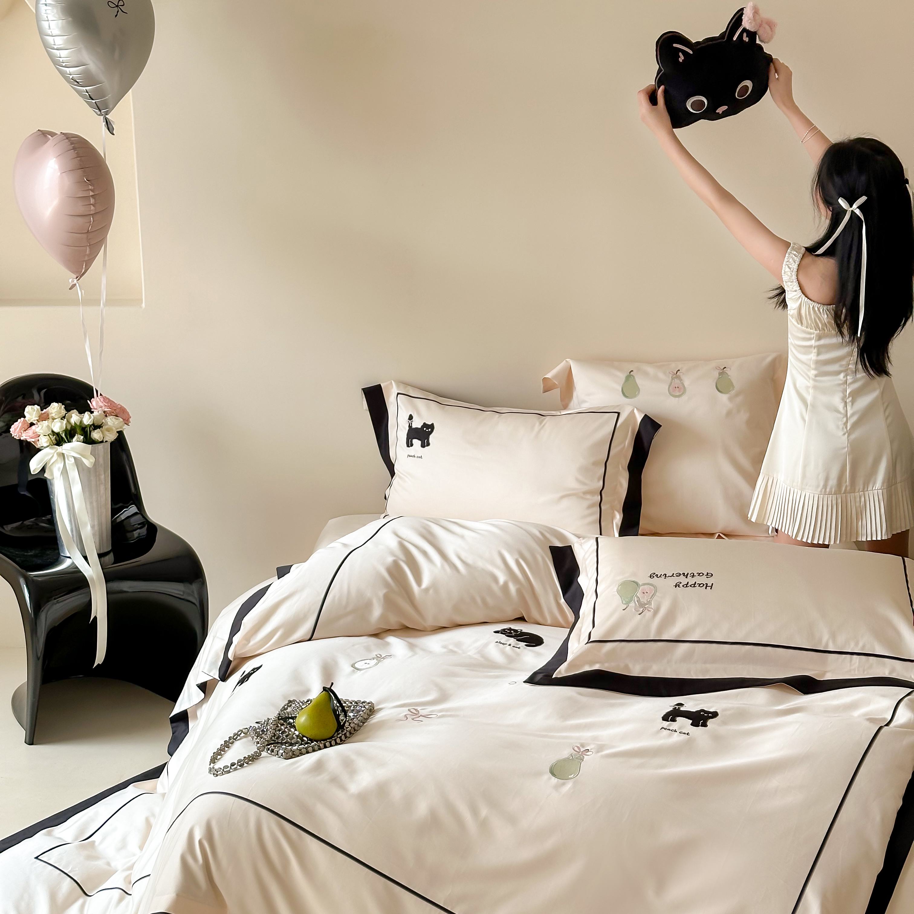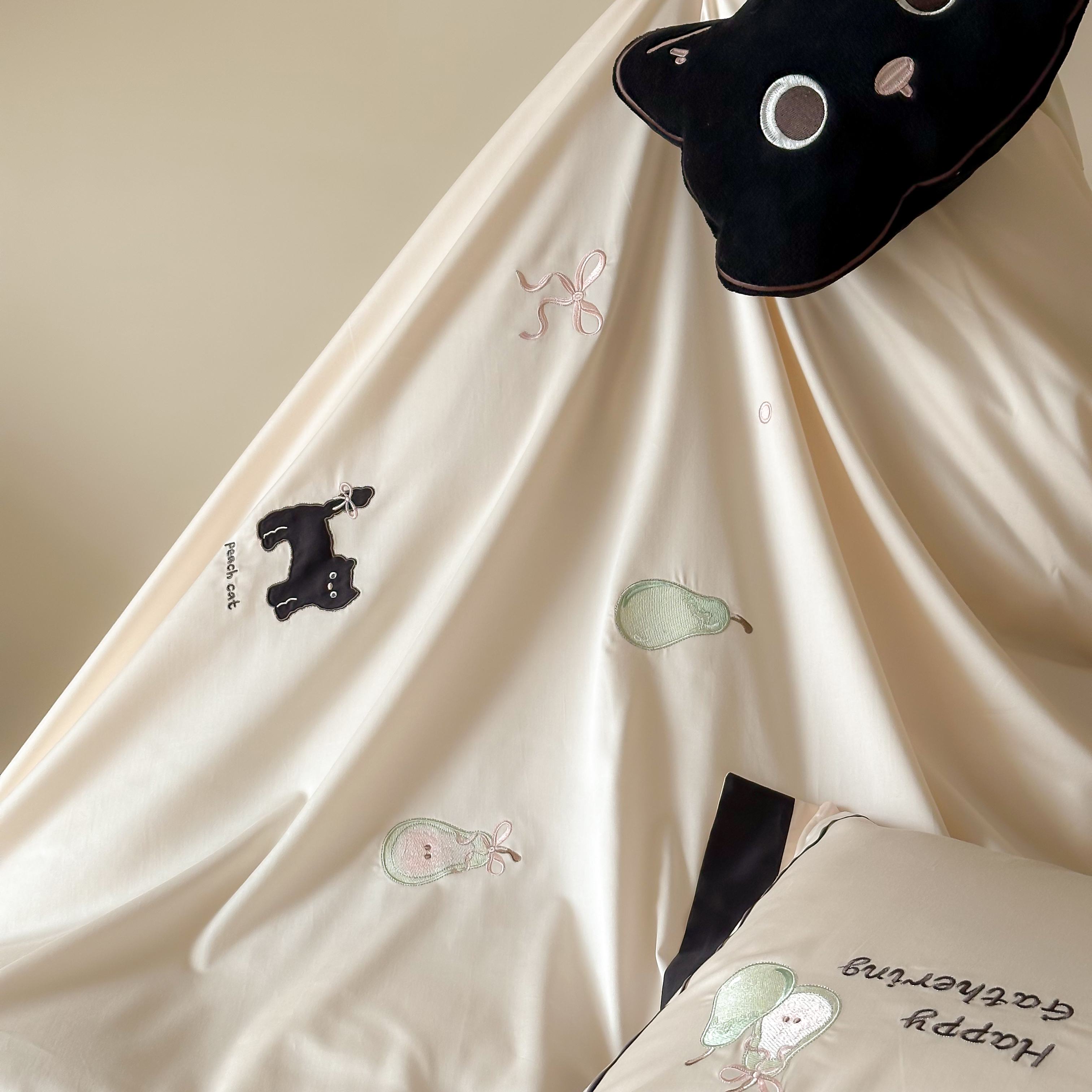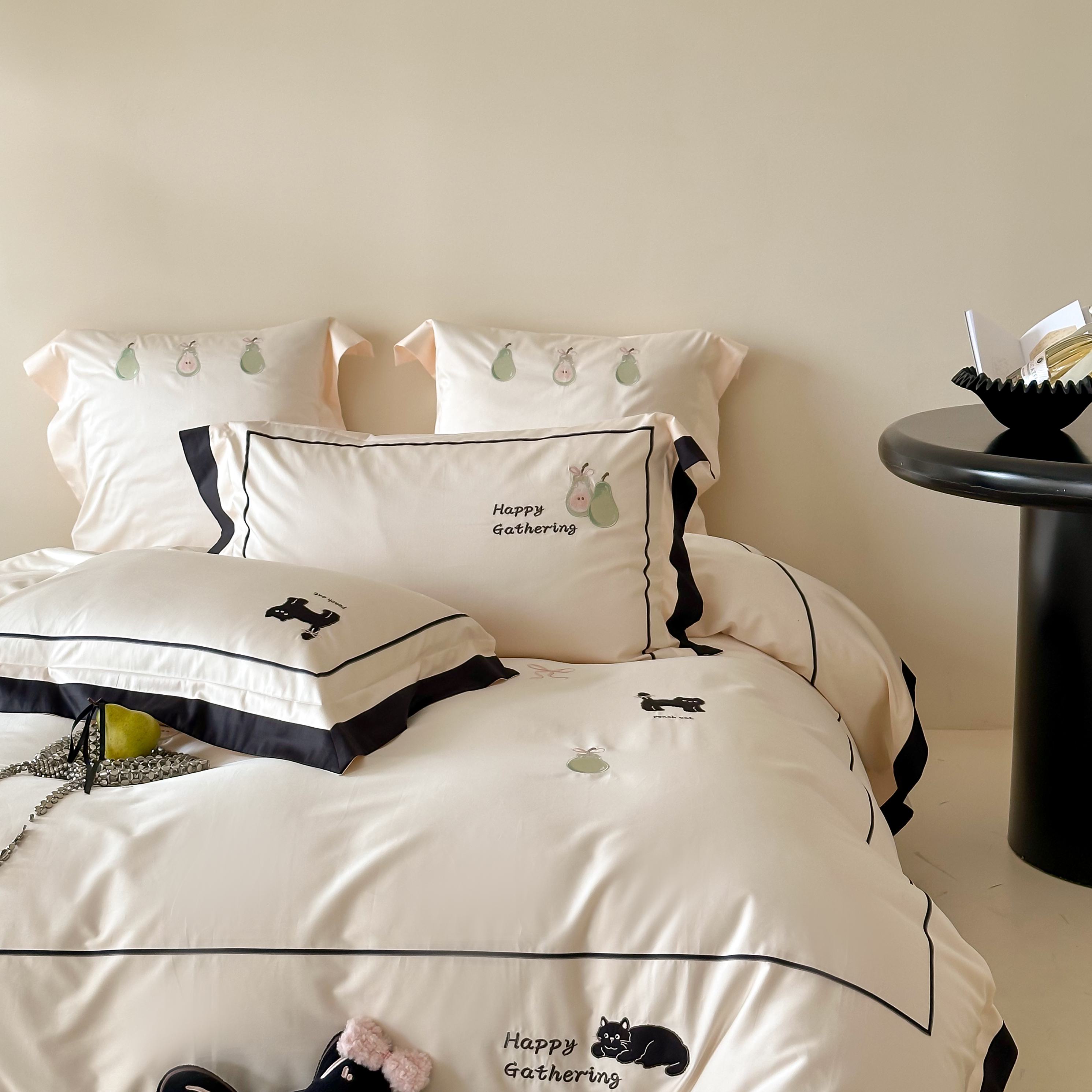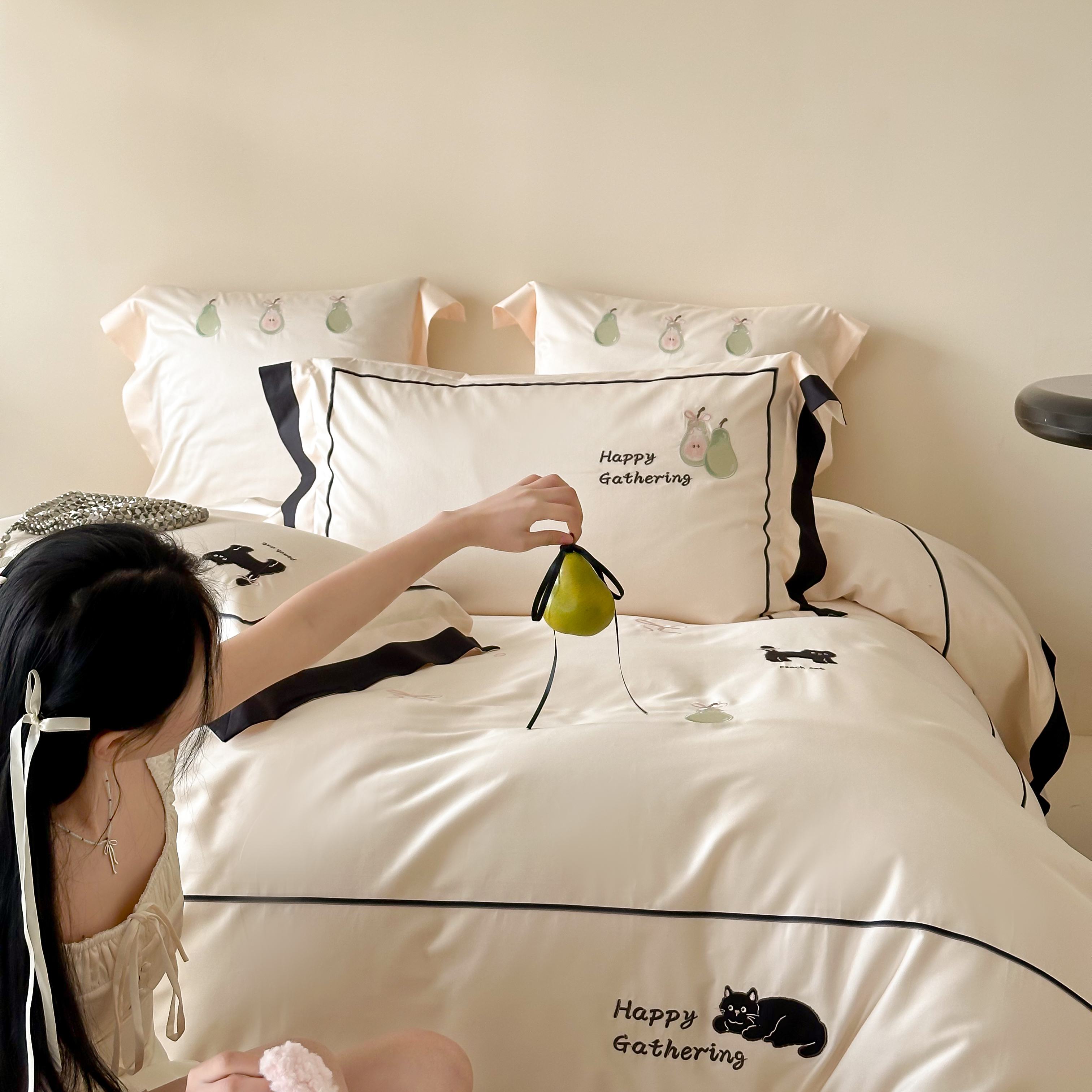 (总)多乐娜 2025新品长绒棉贡缎100S拼角刺绣贴布绣四件套,梨味多酱•芙玉色,梨味多酱•柠月色