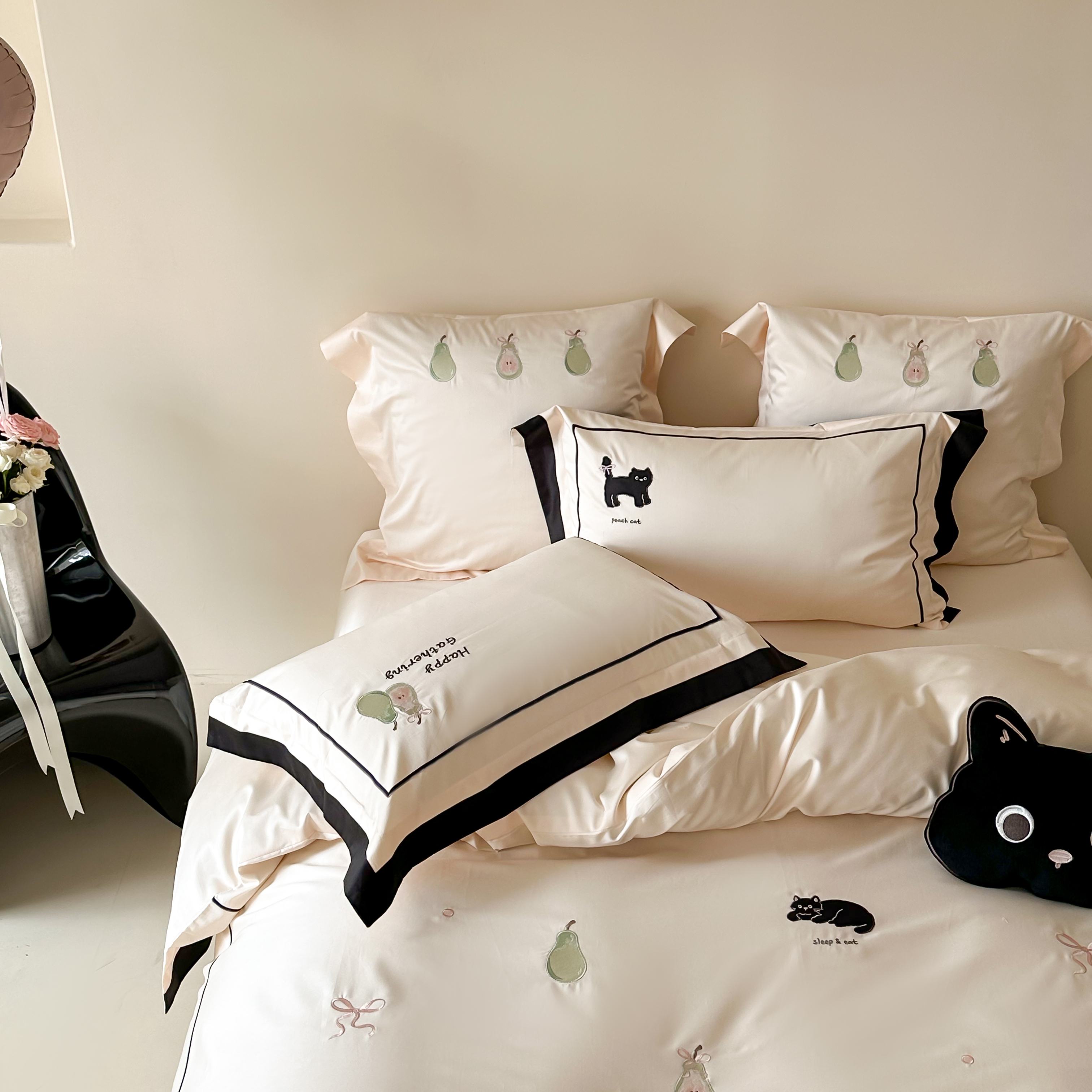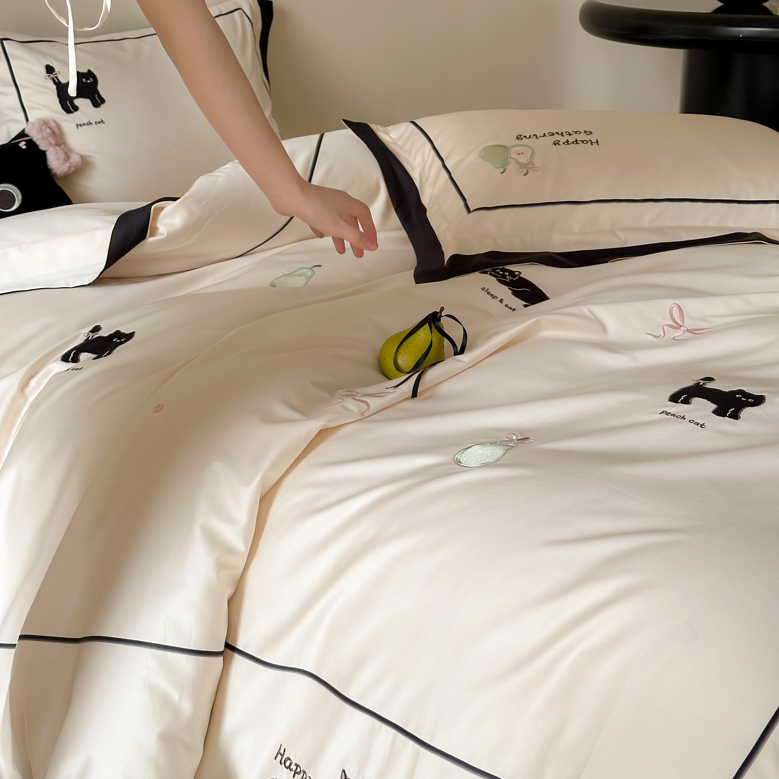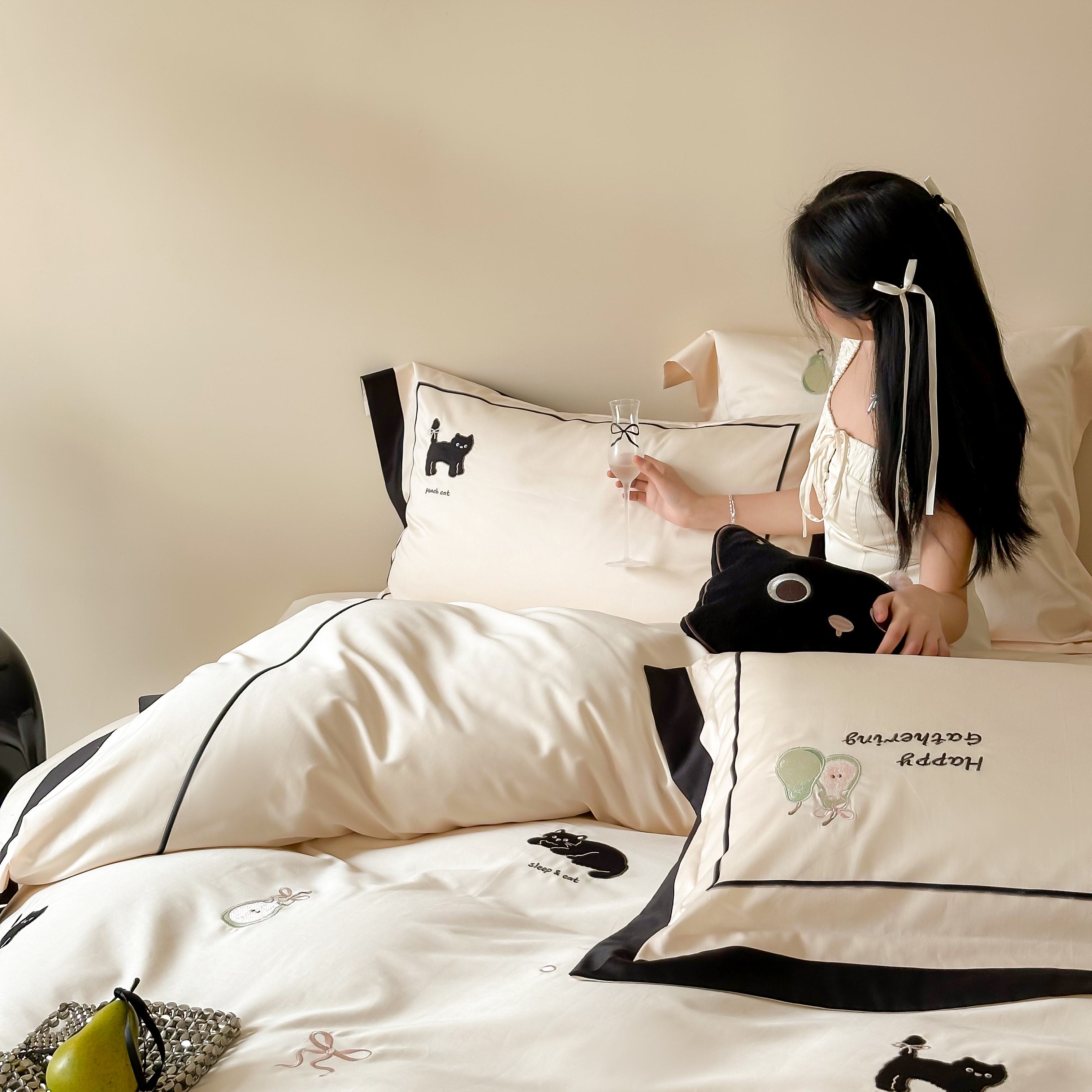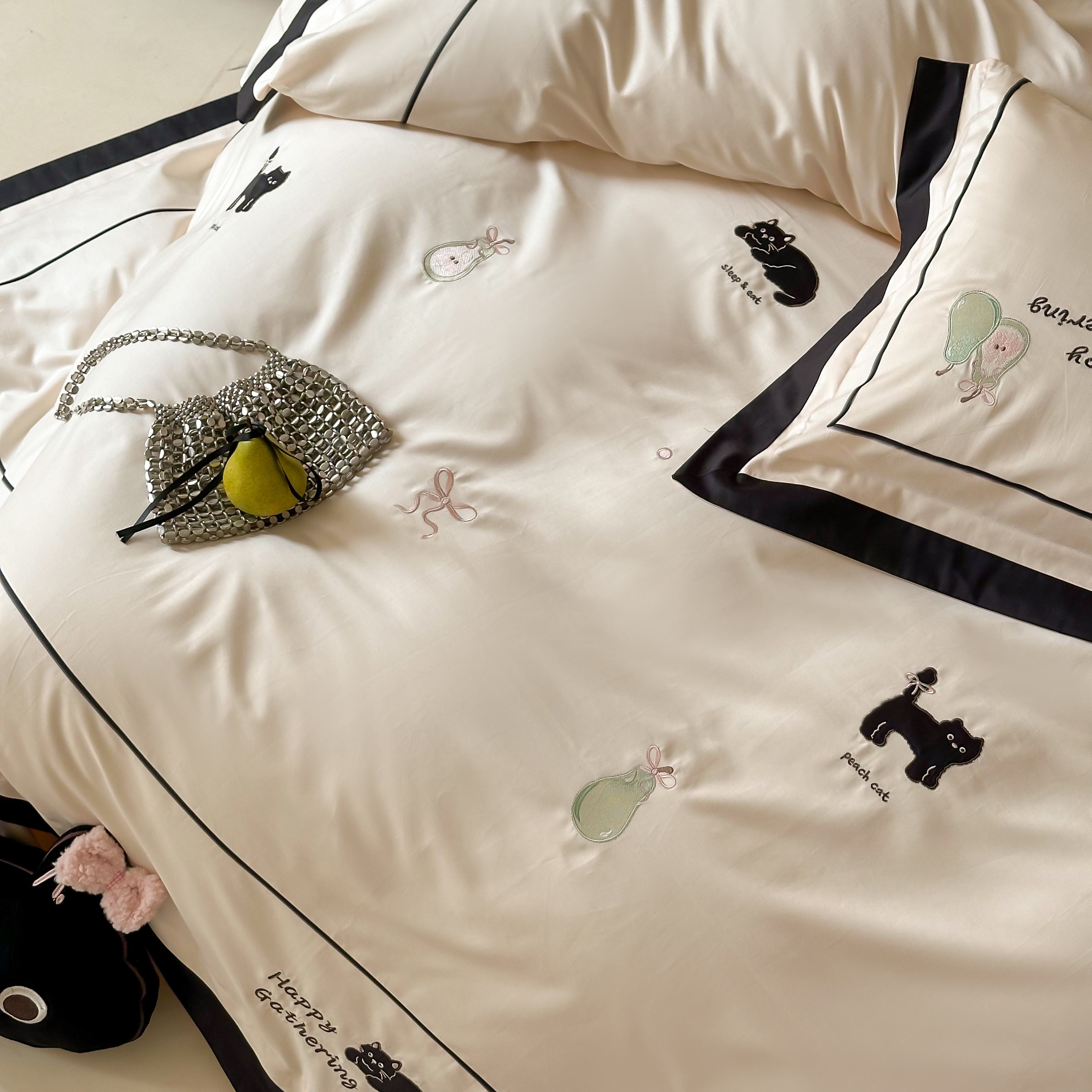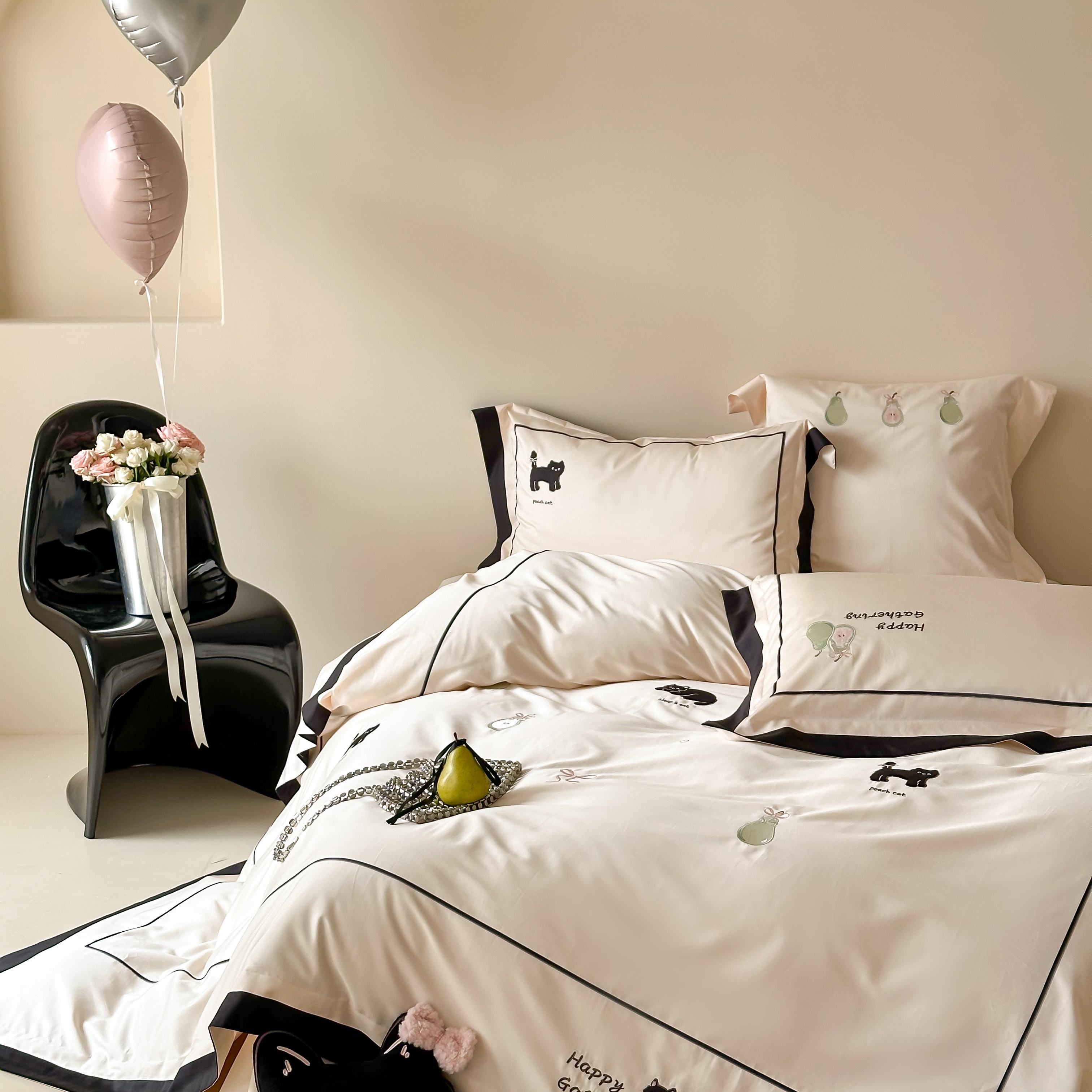 (总)多乐娜 2025新品长绒棉贡缎100S拼角刺绣贴布绣四件套,梨味多酱•芙玉色,梨味多酱•柠月色
