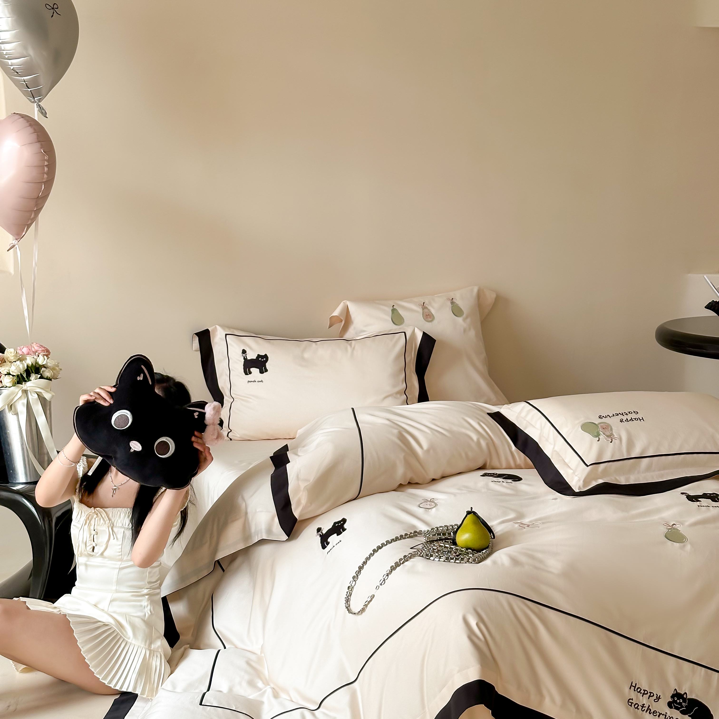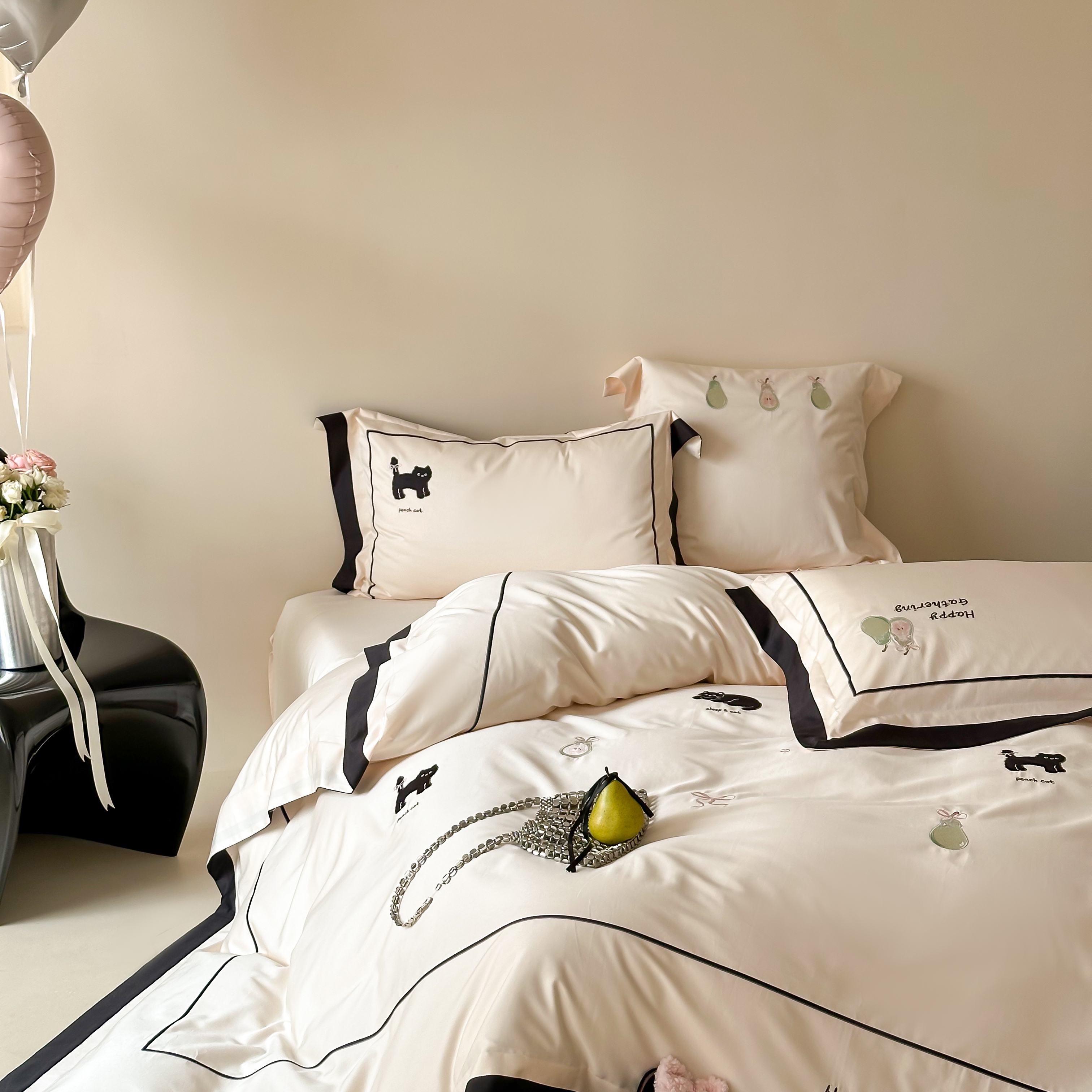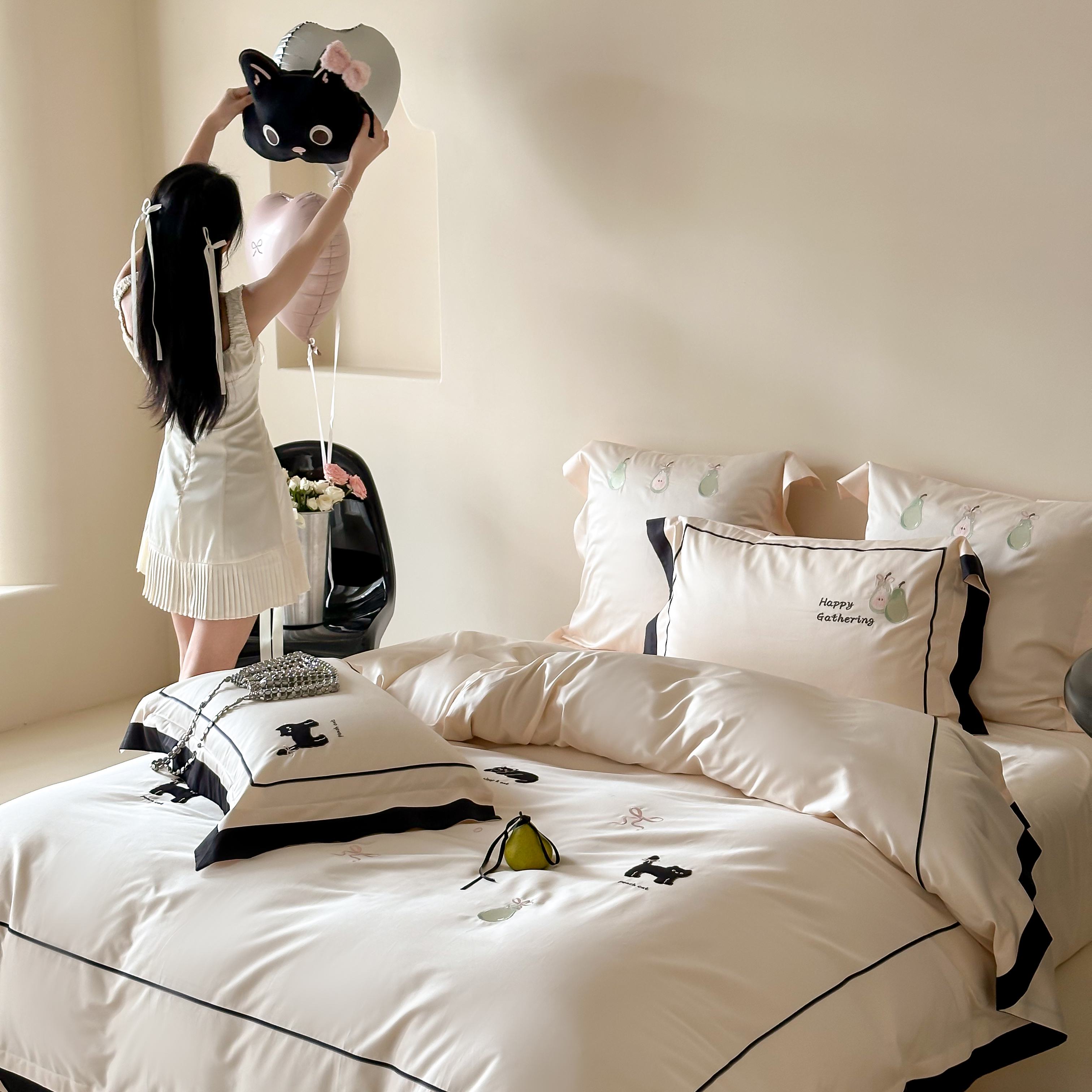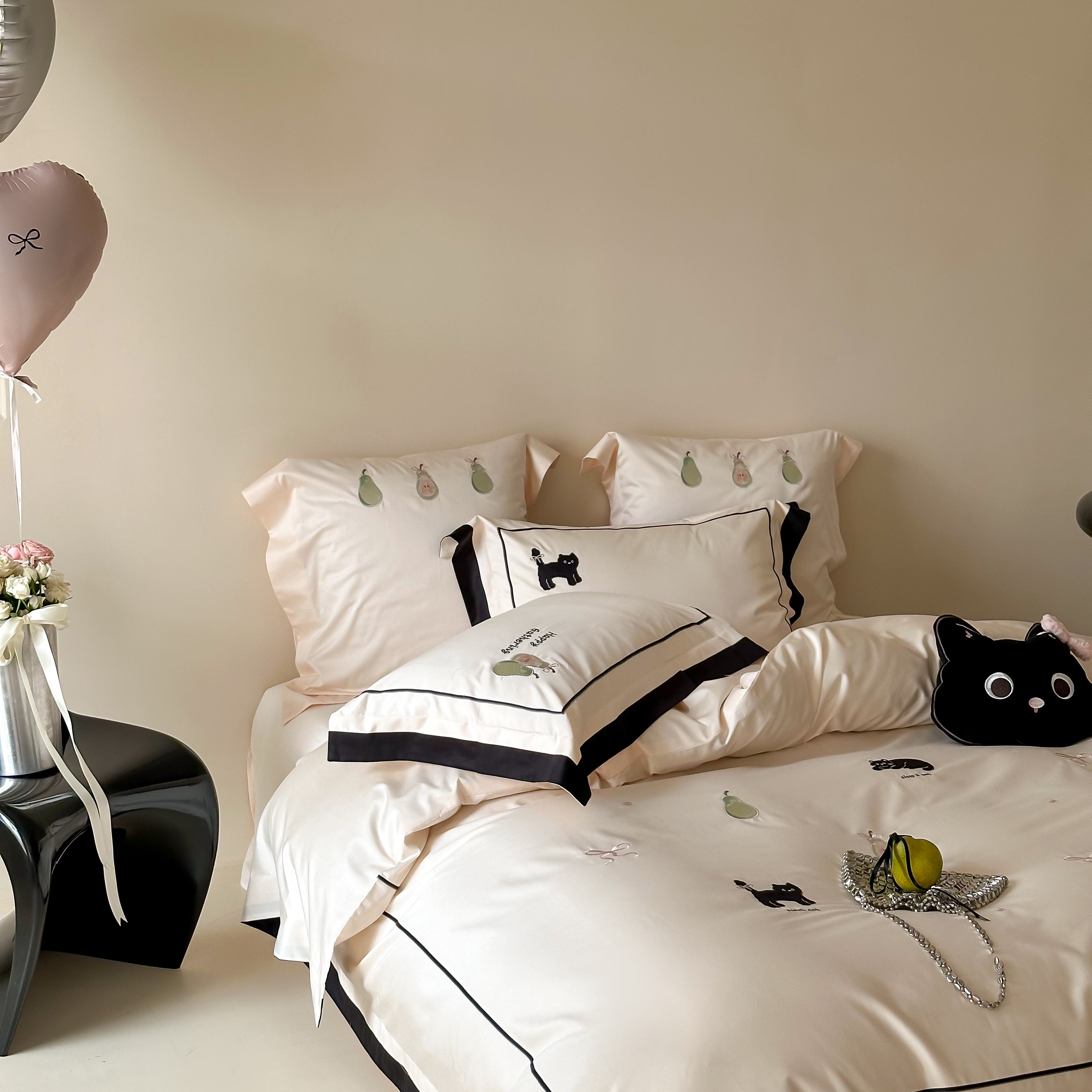 (总)多乐娜 2025新品长绒棉贡缎100S拼角刺绣贴布绣四件套,梨味多酱•芙玉色,梨味多酱•柠月色
