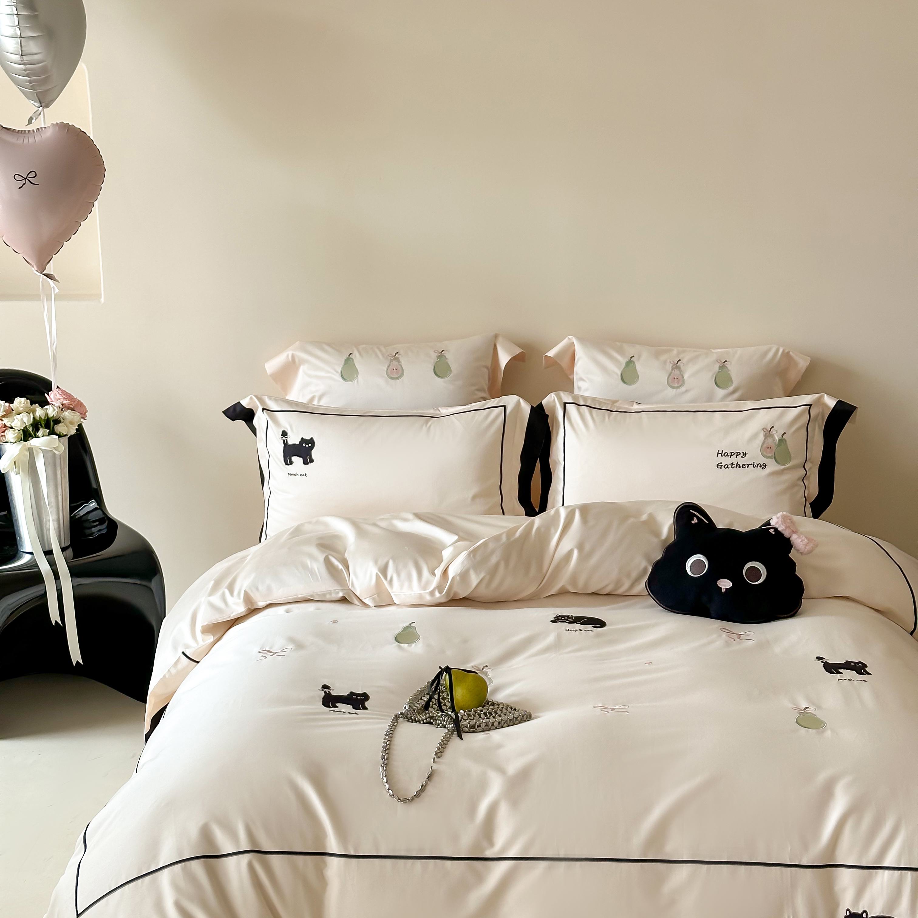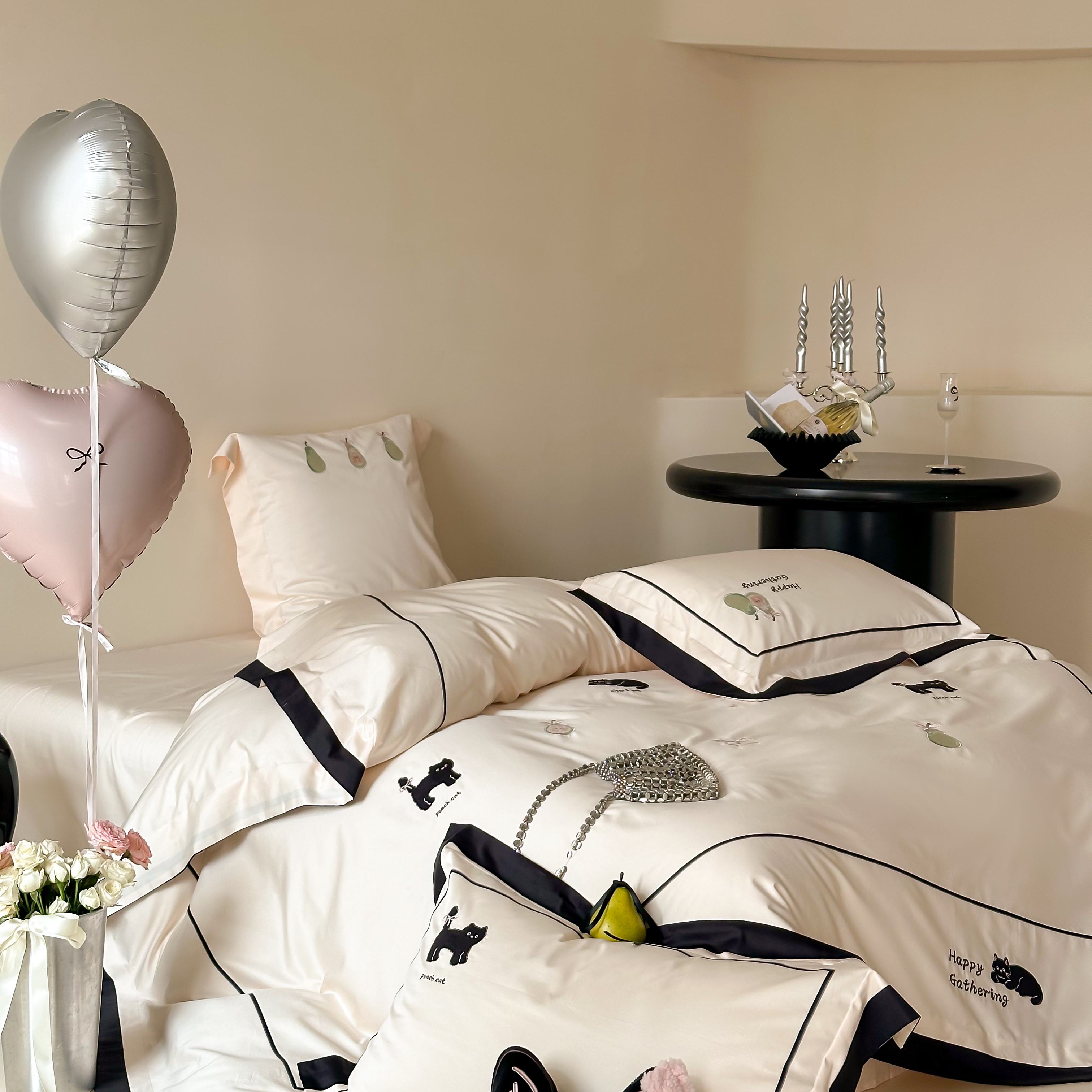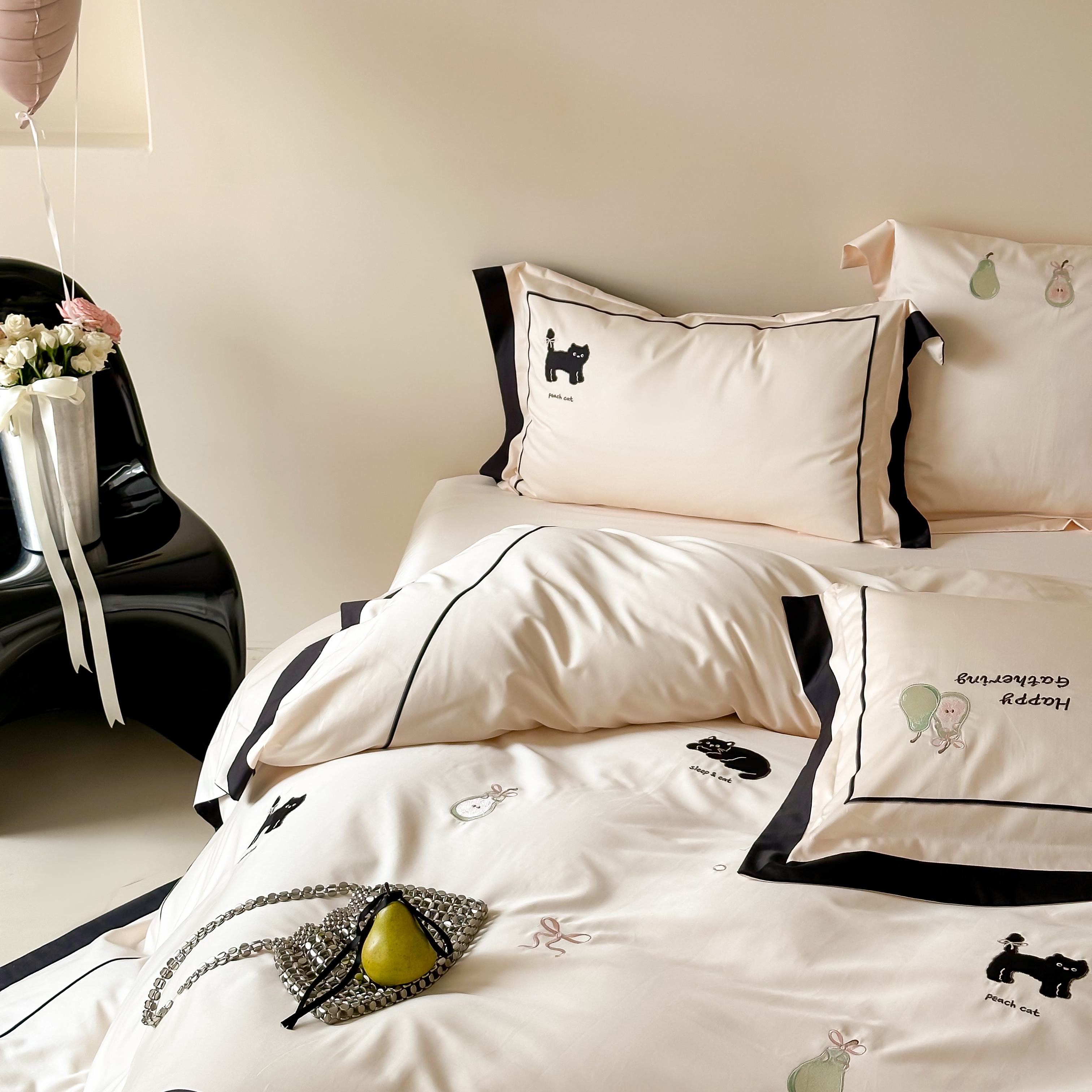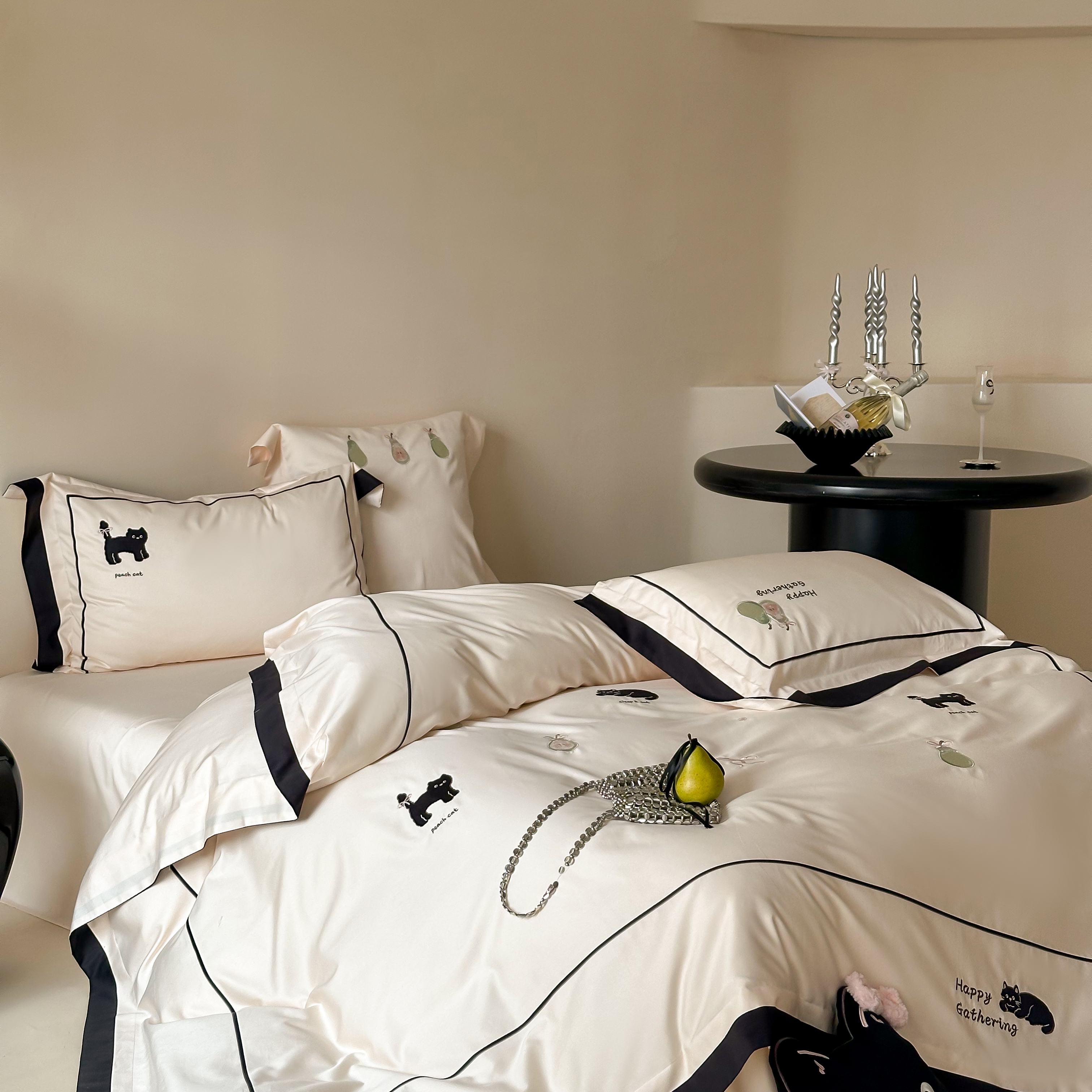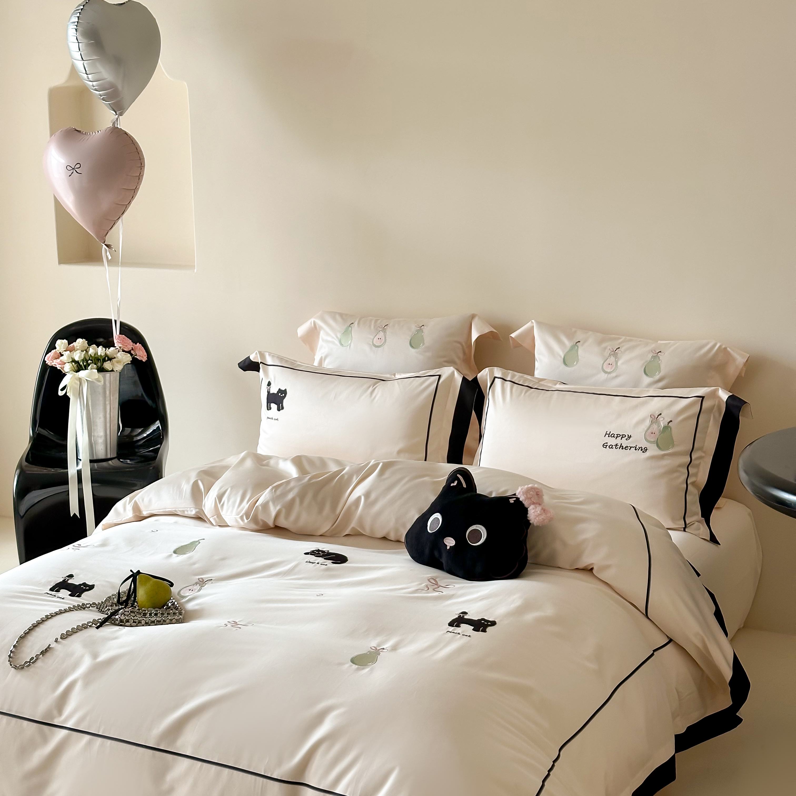 (总)多乐娜 2025新品长绒棉贡缎100S拼角刺绣贴布绣四件套,梨味多酱•芙玉色,梨味多酱•柠月色