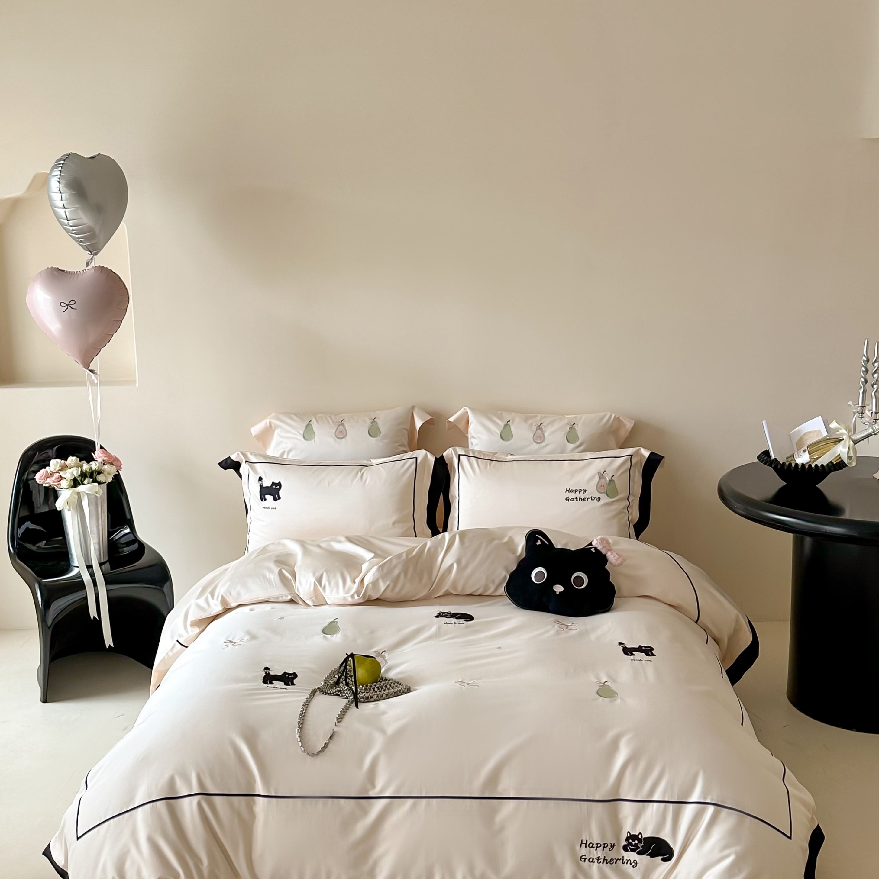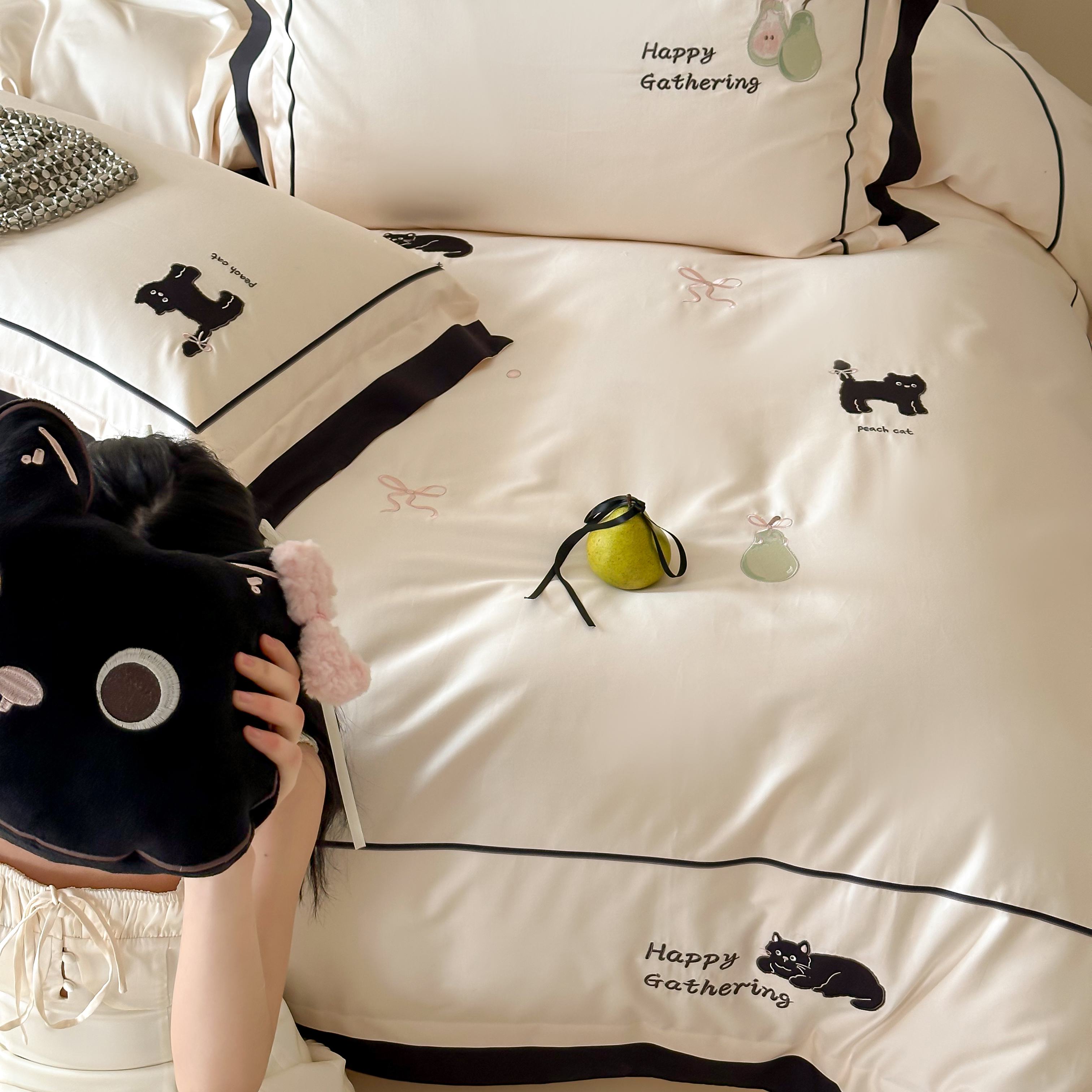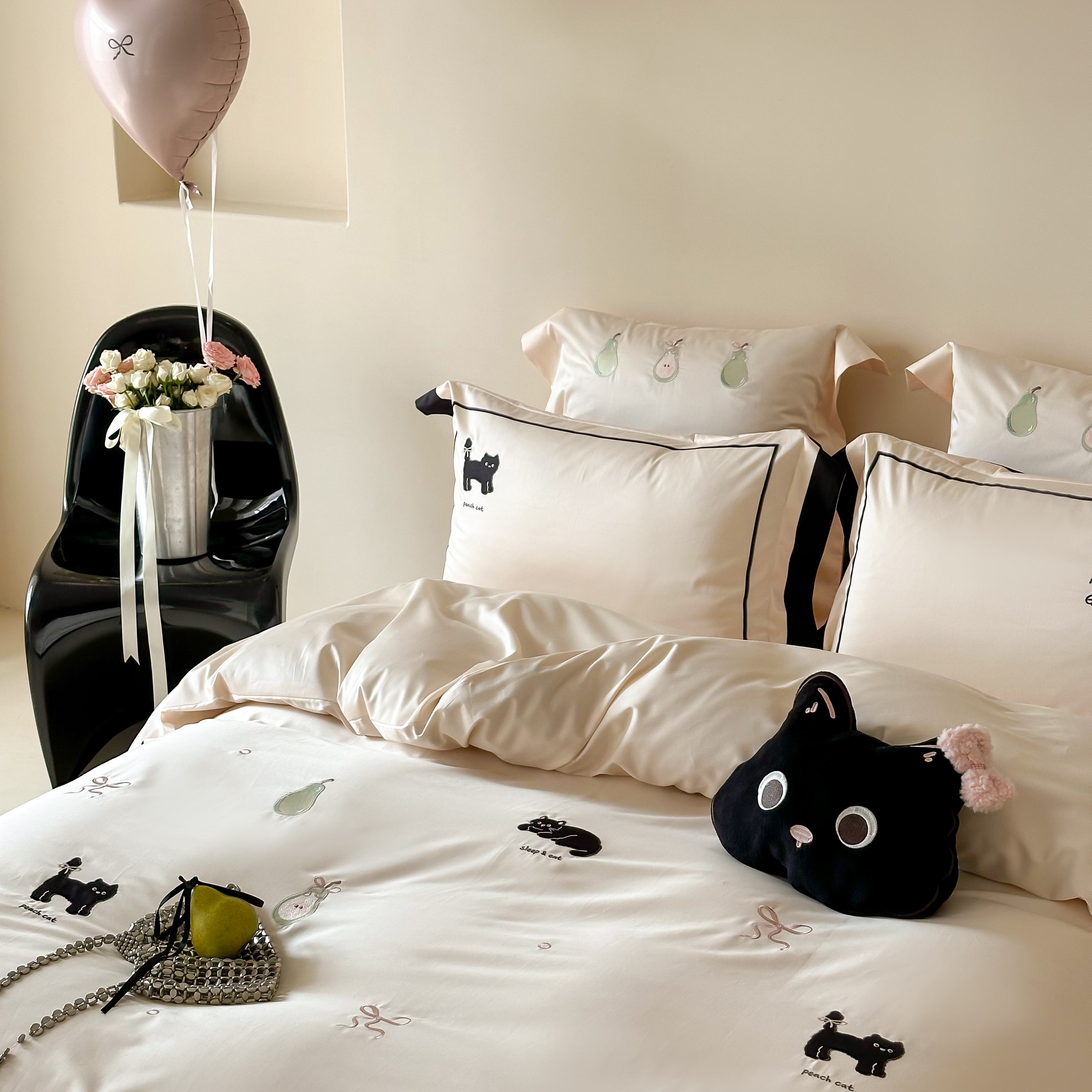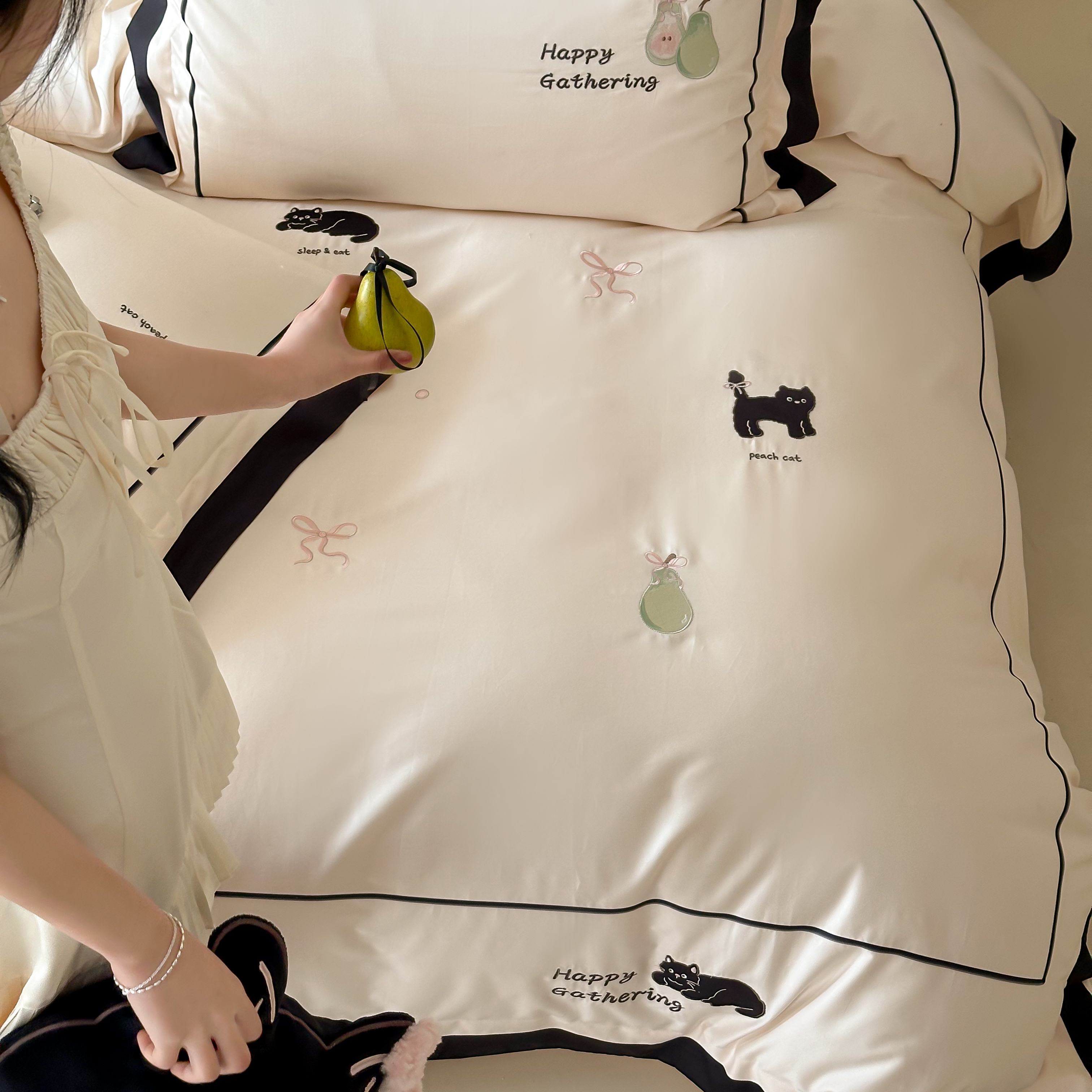 (总)多乐娜 2025新品长绒棉贡缎100S拼角刺绣贴布绣四件套,梨味多酱•芙玉色,梨味多酱•柠月色
