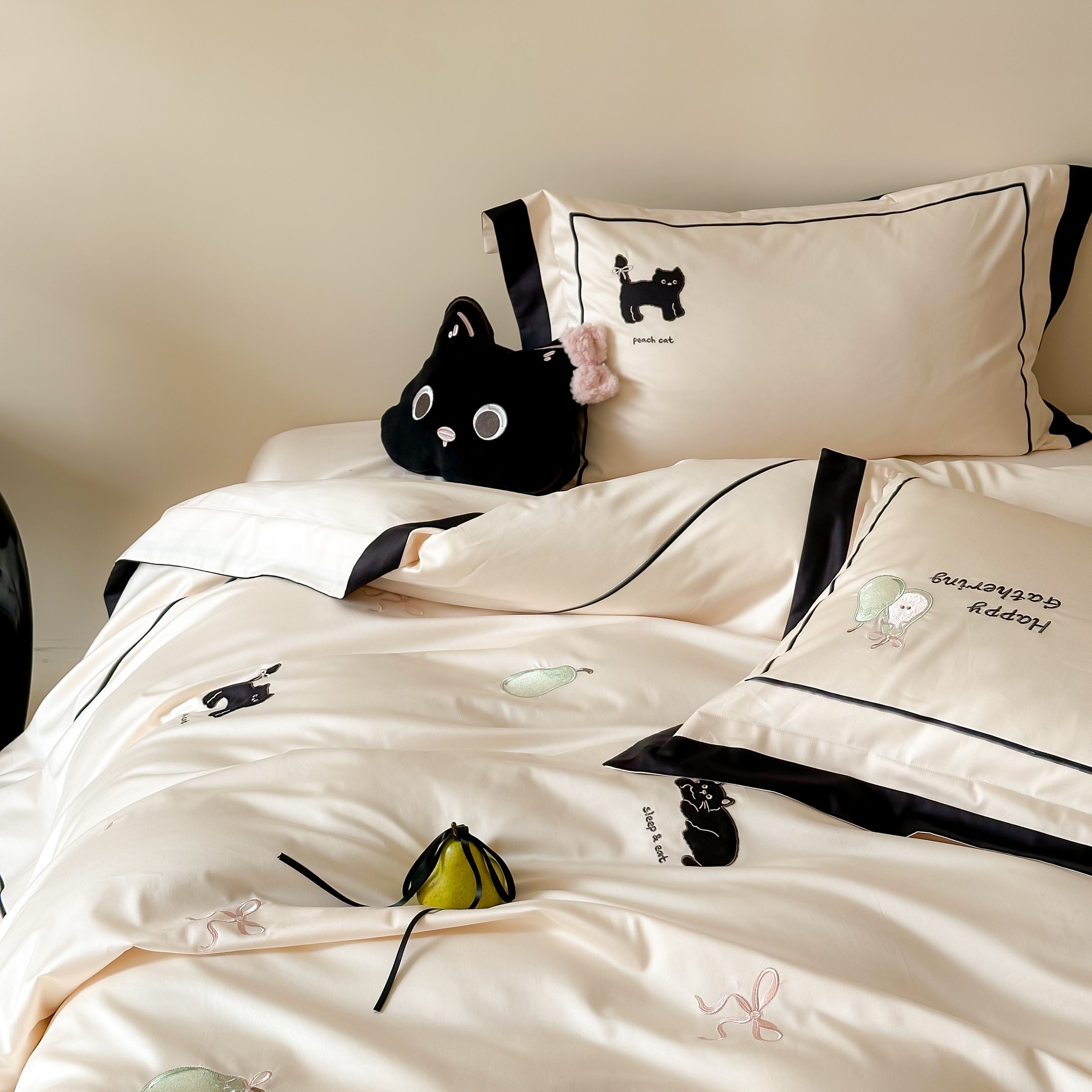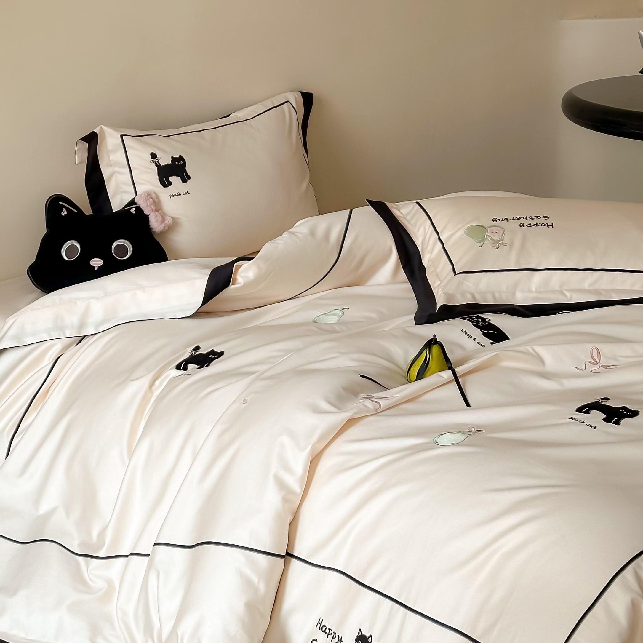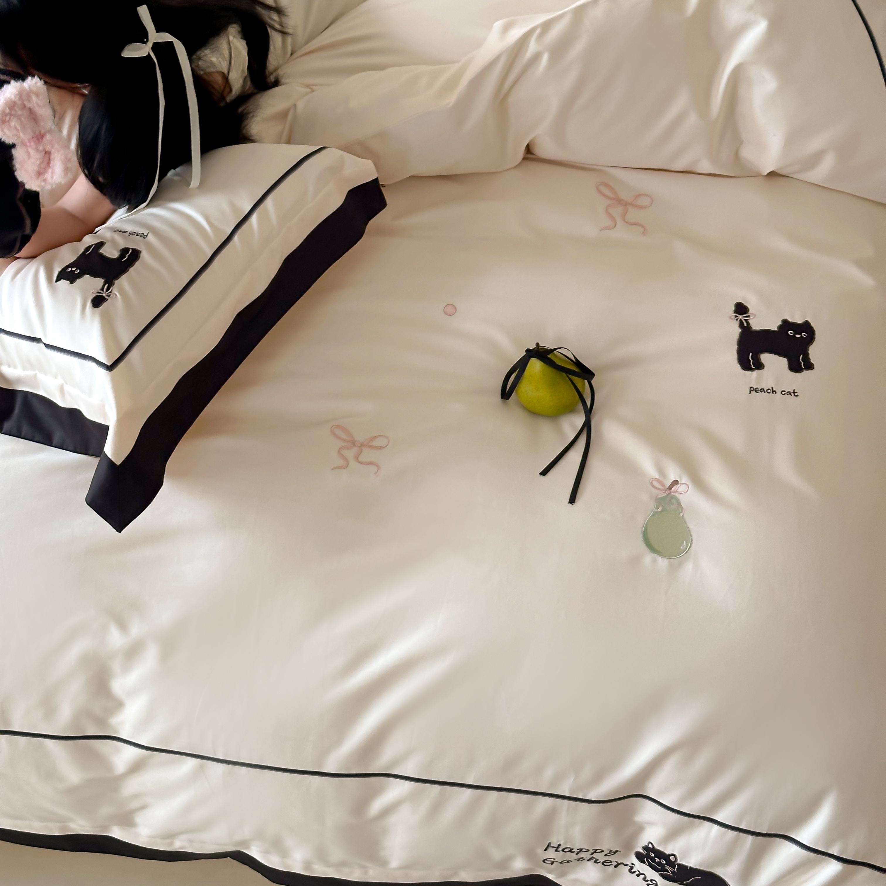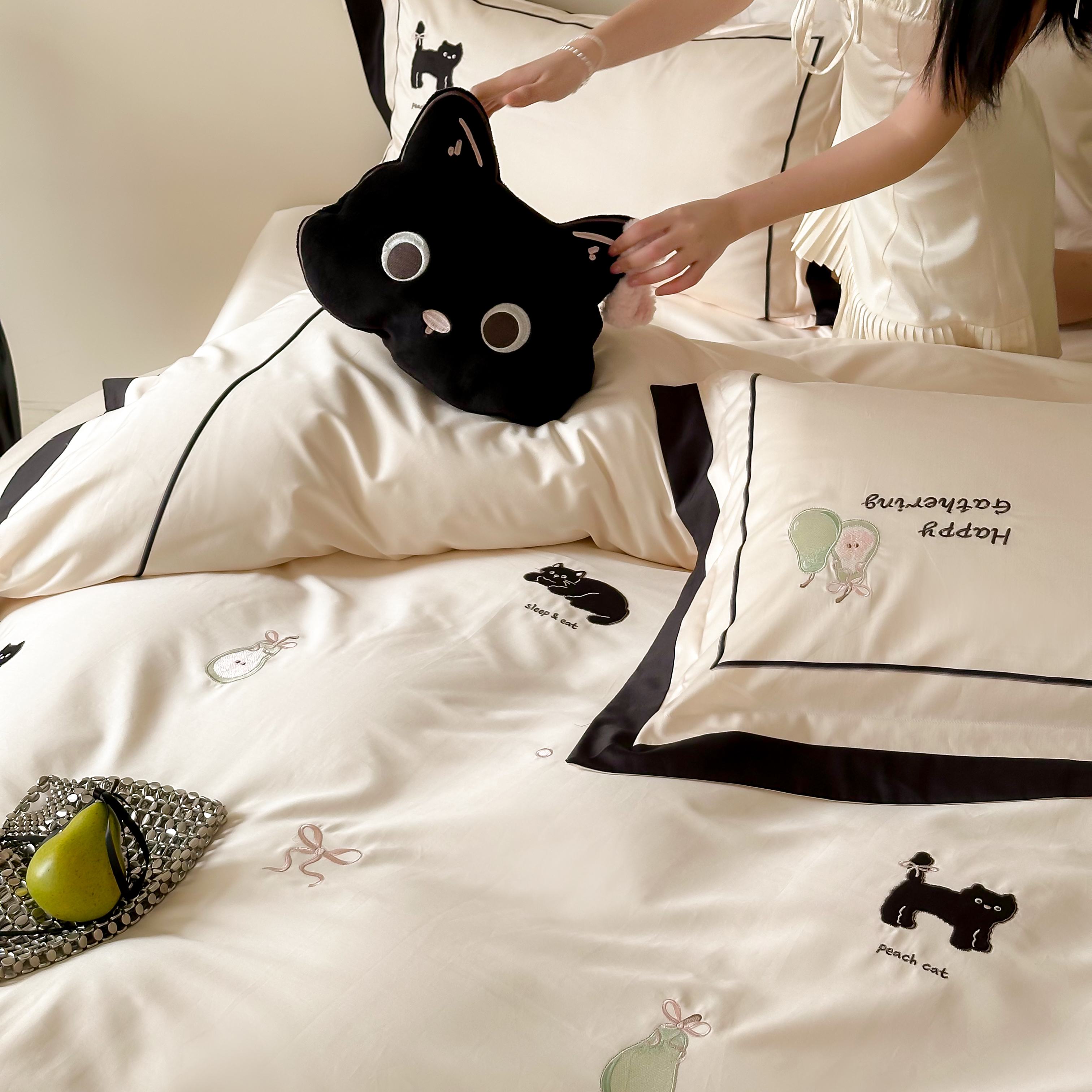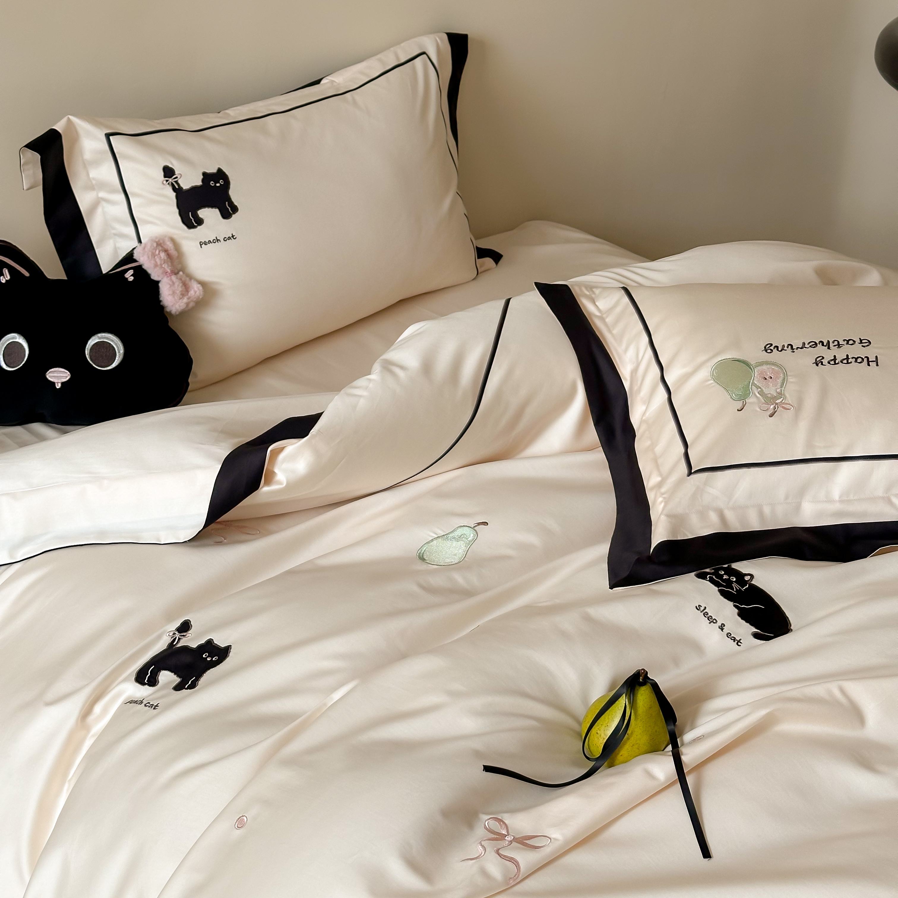 (总)多乐娜 2025新品长绒棉贡缎100S拼角刺绣贴布绣四件套,梨味多酱•芙玉色,梨味多酱•柠月色