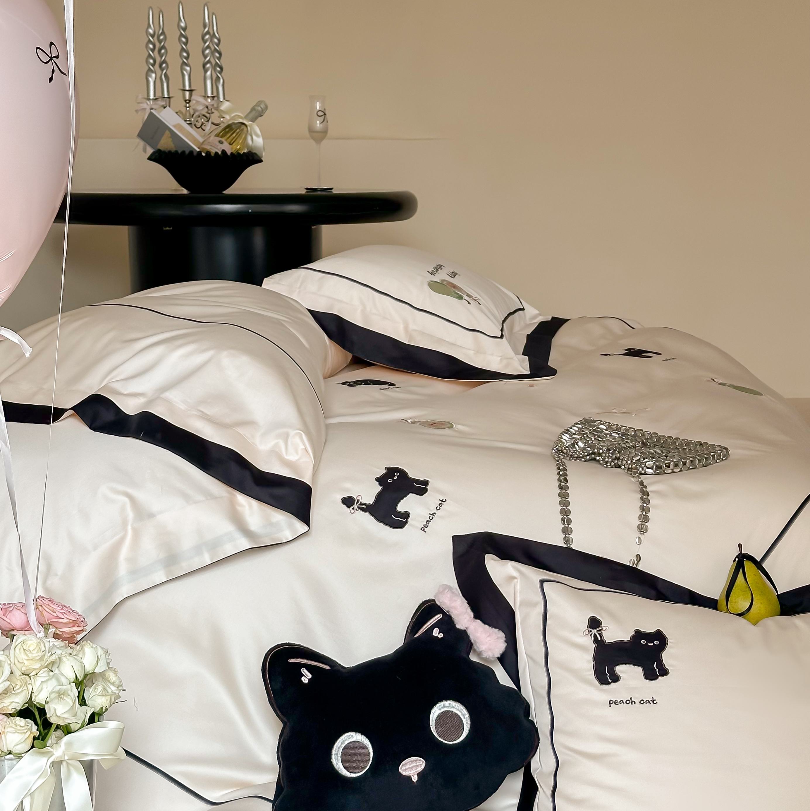 多乐娜 2025新品长绒棉贡缎100S拼角刺绣贴布绣四件套 梨味多酱•芙玉色