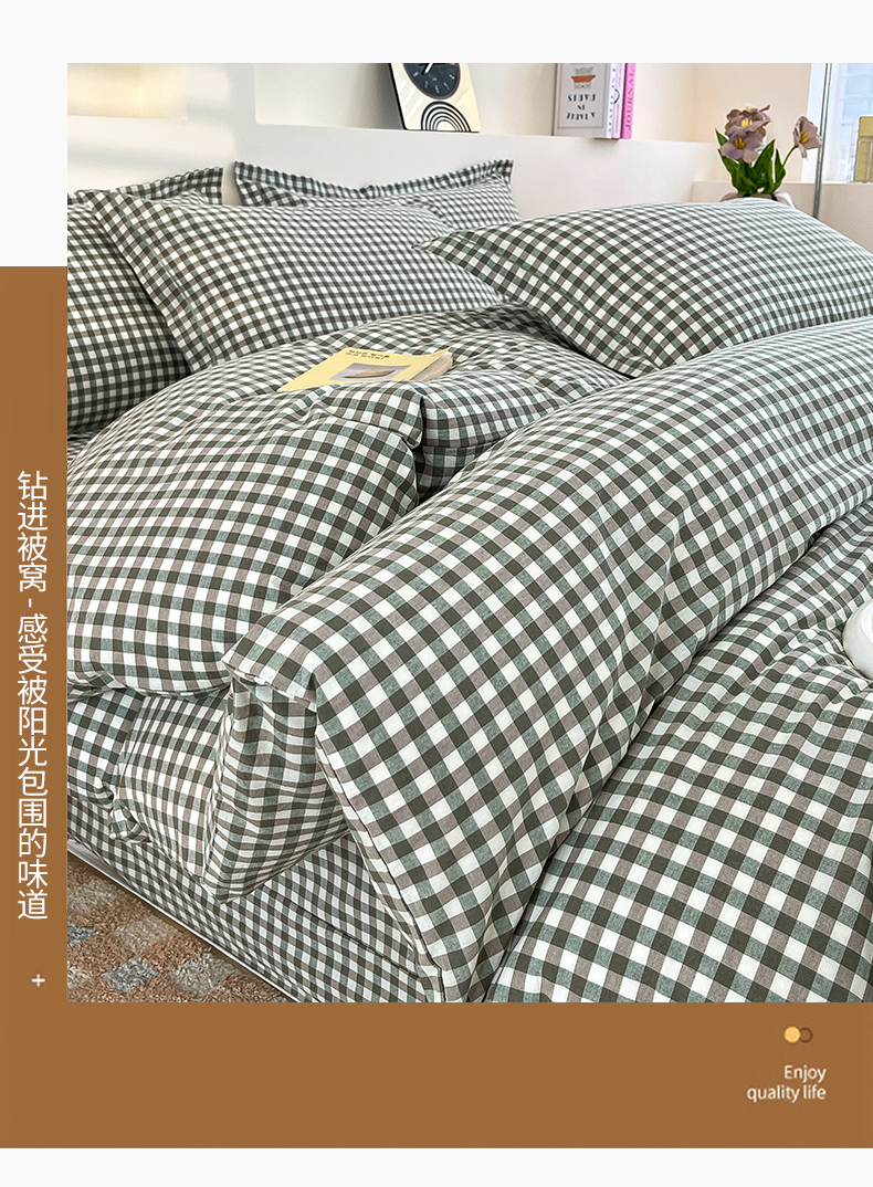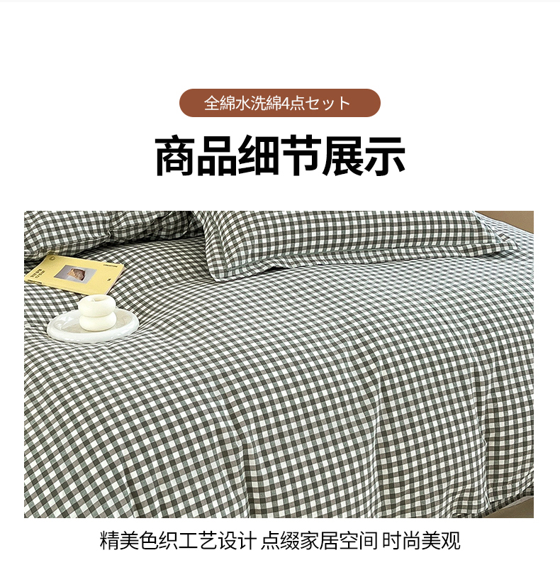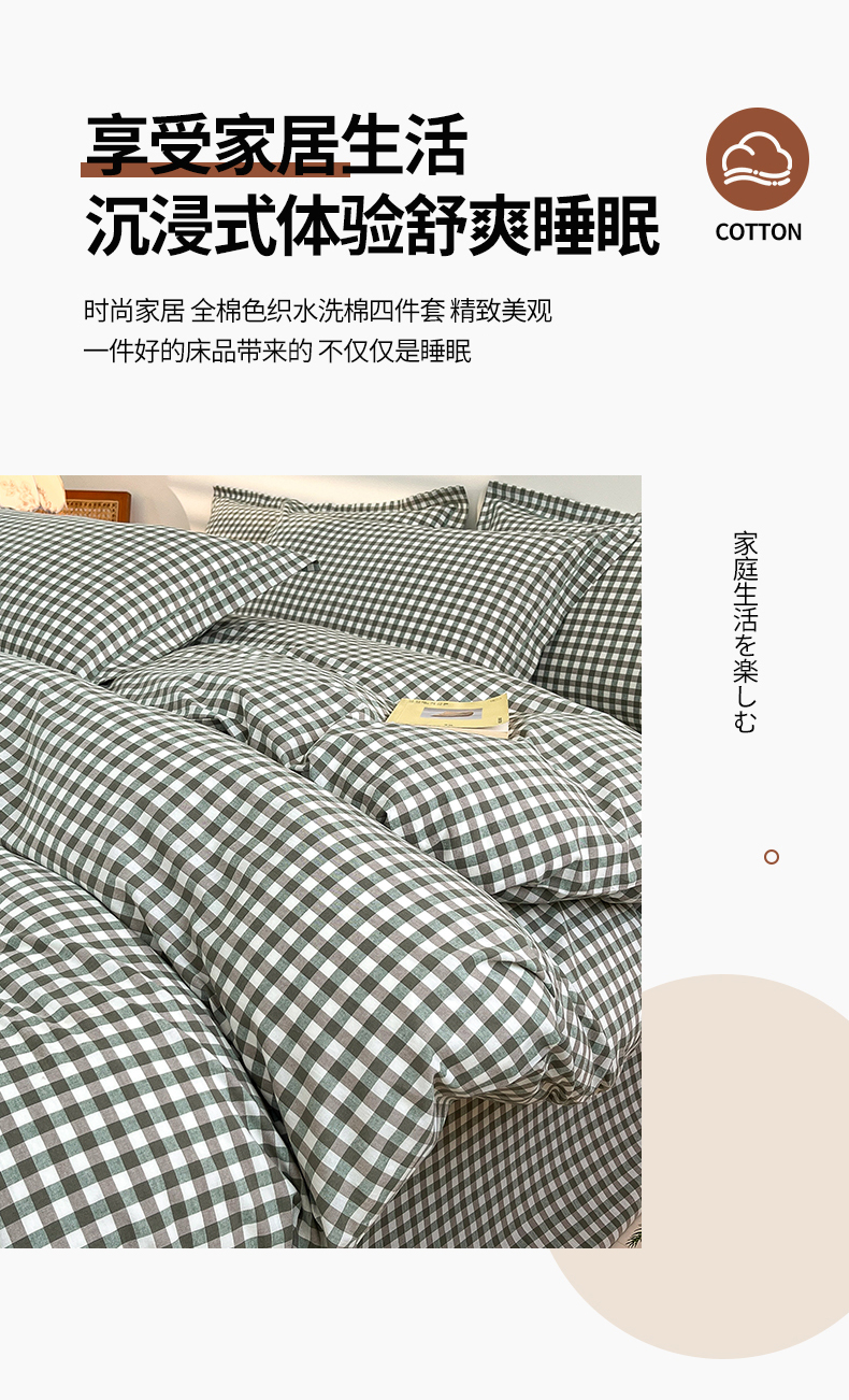 (总)金窝窝家纺 2025新款纯棉水洗棉四件套,爱锦灰,巴黎彩格,巴黎灰,春意盎然淡绿色,大发格粉蓝,大发格绿,多爱多粉,繁星奶咖米格,假日阳光彩格,绿咖时尚格,绿小格,米格,浅蓝小格,三彩格,时尚风蓝灰,相遇兰橙,相遇小粉,意境蓝灰,优雅粉格,优雅橘,优雅兰