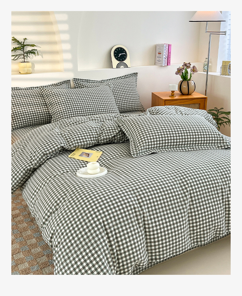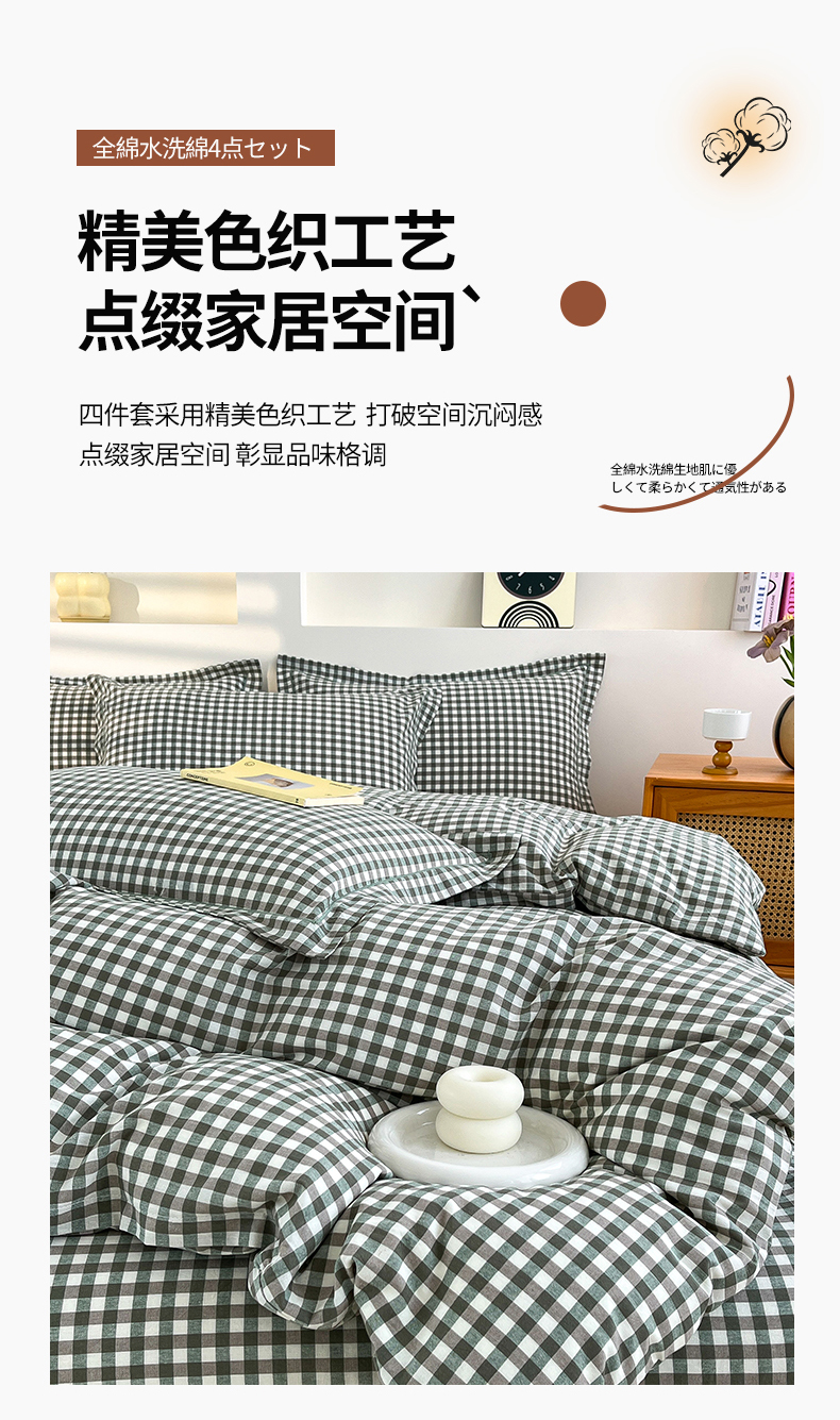 (总)金窝窝家纺 2025新款全棉色织水洗棉床盖四件套,春意盎然淡绿色,春薏时尚灰,多爱多粉色,繁星奶咖米格,绿咖时尚格,米菲灰,米格,浅兰小格