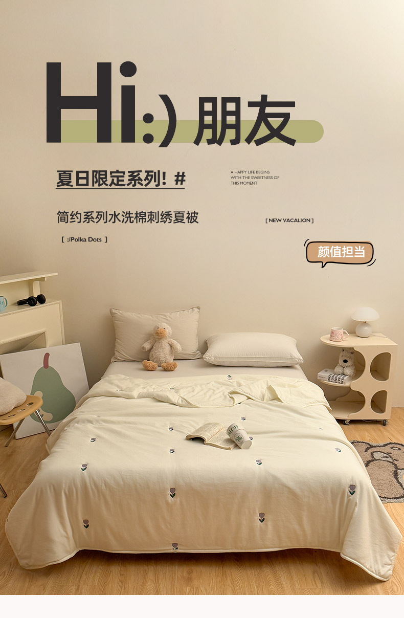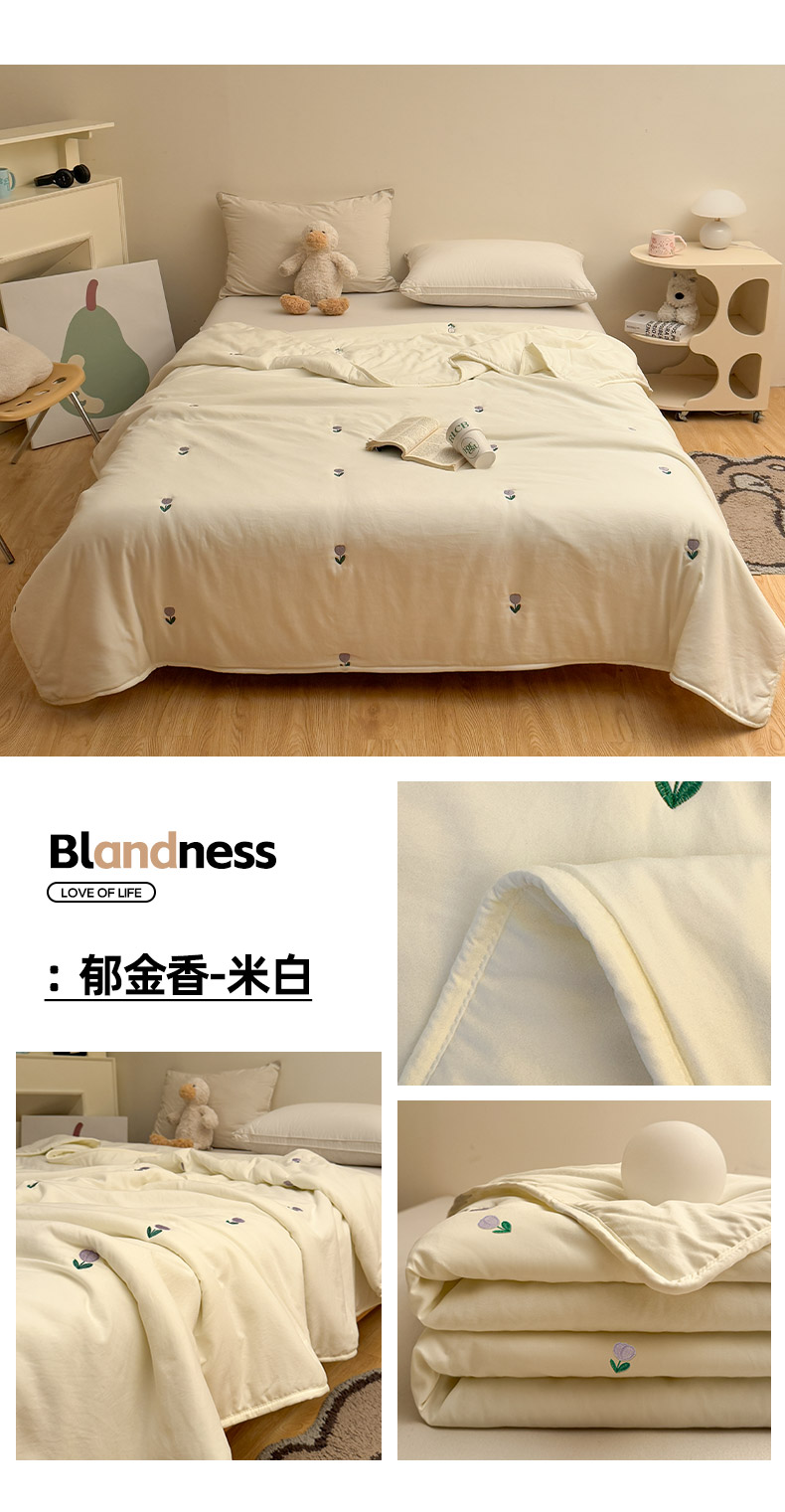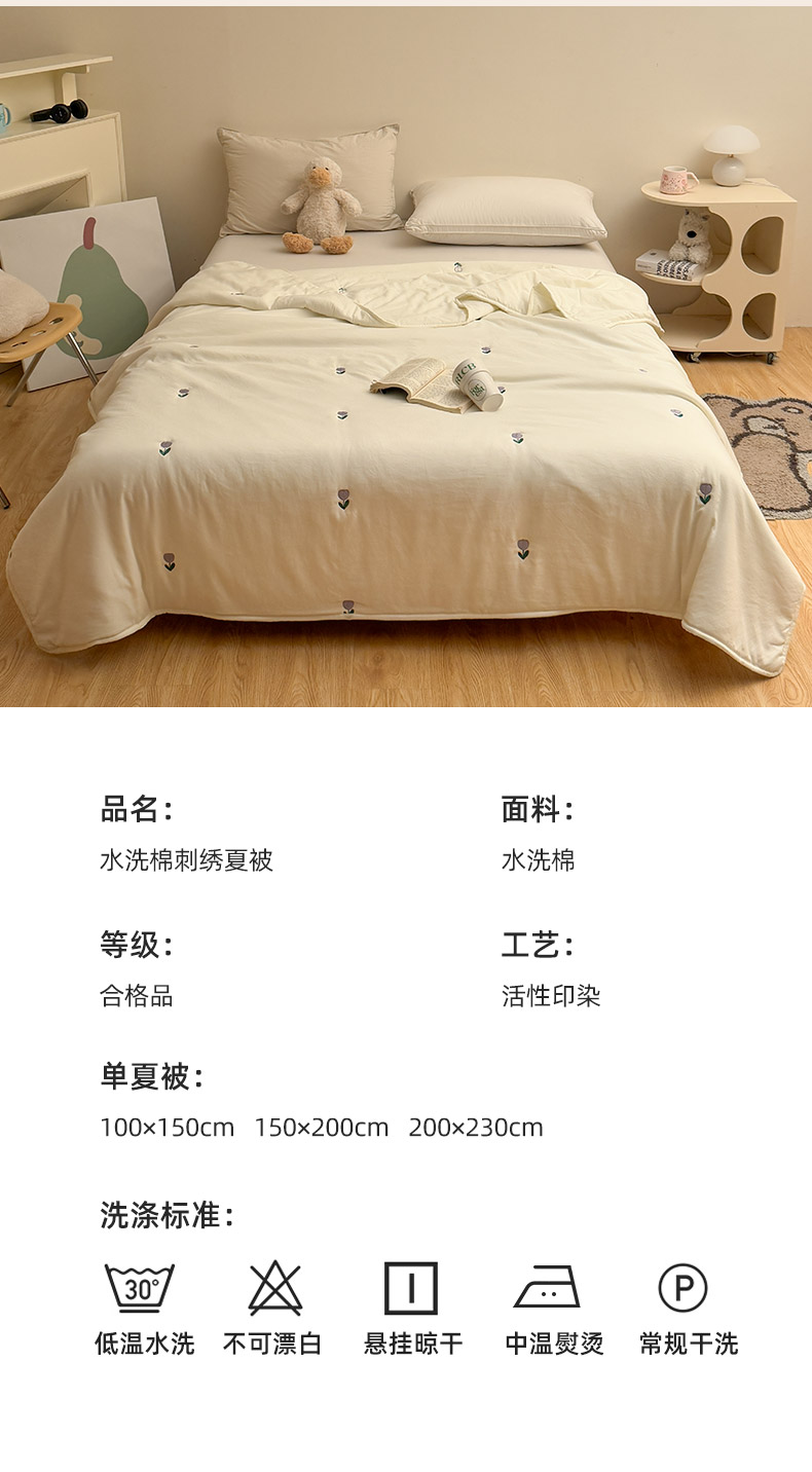 商品名称:推推家纺2025新款简约系列水洗棉刺绣夏被 郁金香-米白