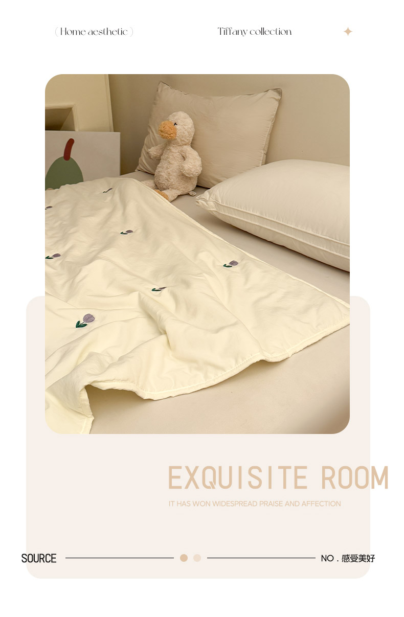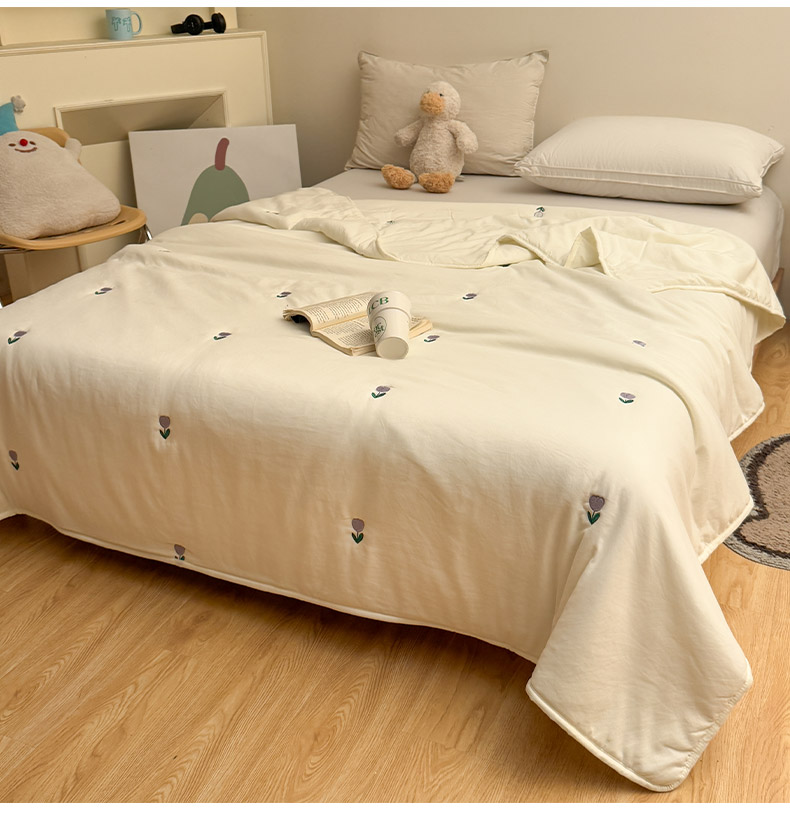 推推家纺2025新款简约系列水洗棉刺绣夏被 郁金香-米白