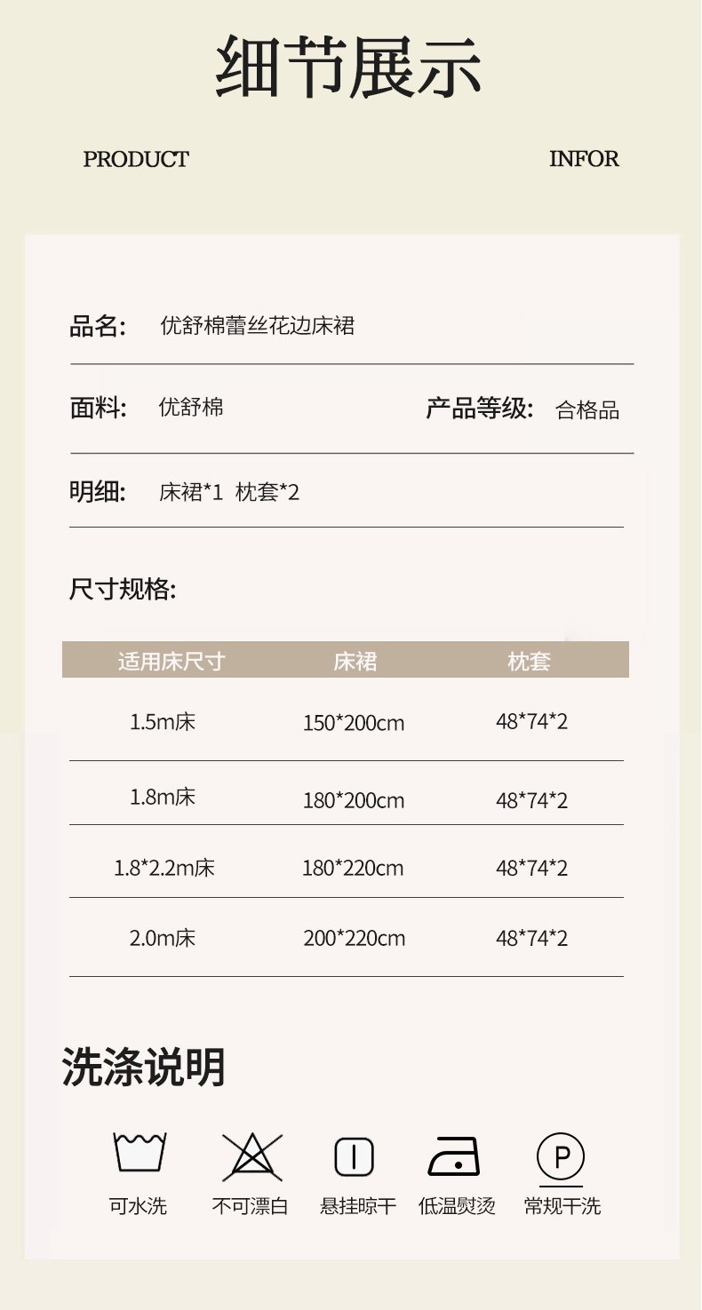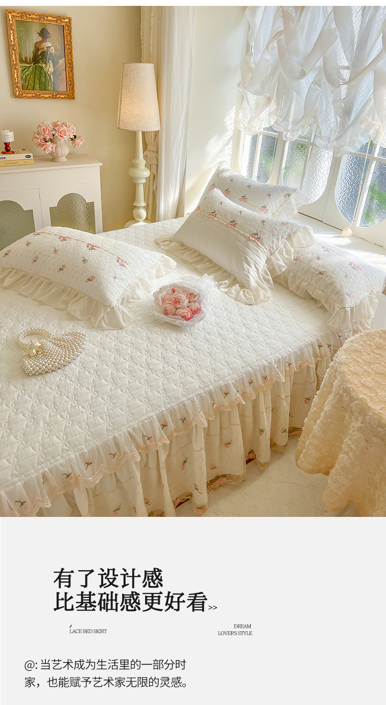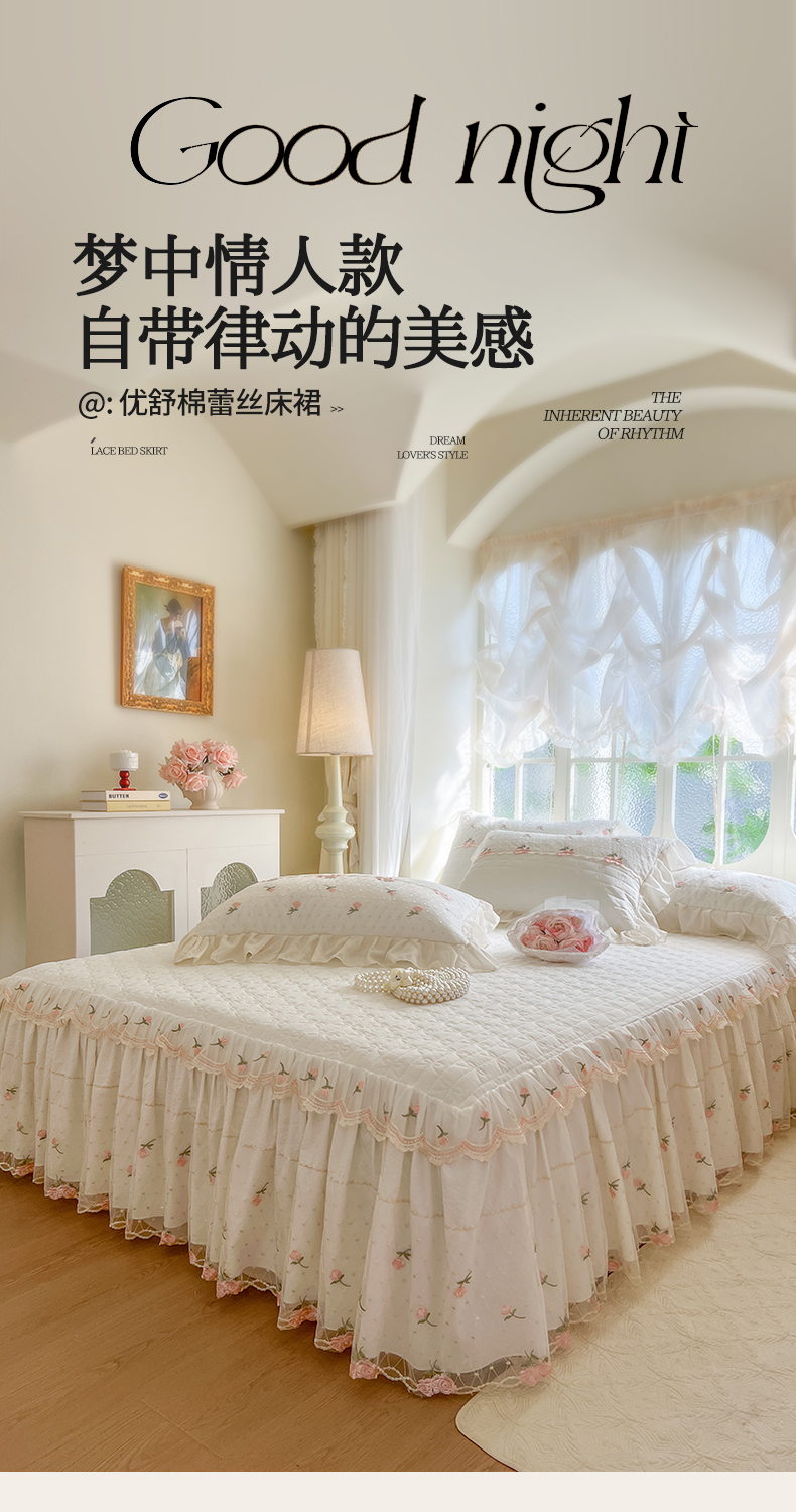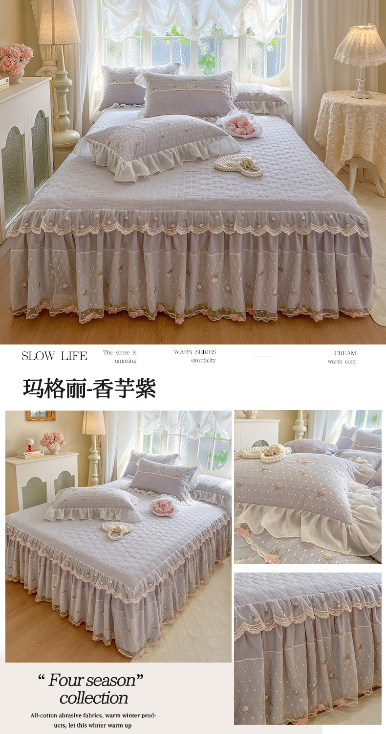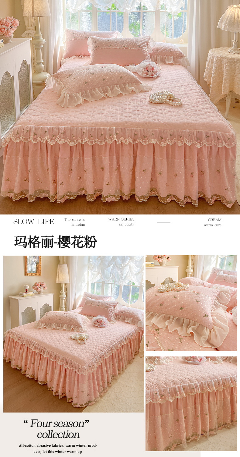 商品名称:(总)网红馆(ck家纺) 2025新款优舒棉蕾丝花边床裙四件套-玛格丽