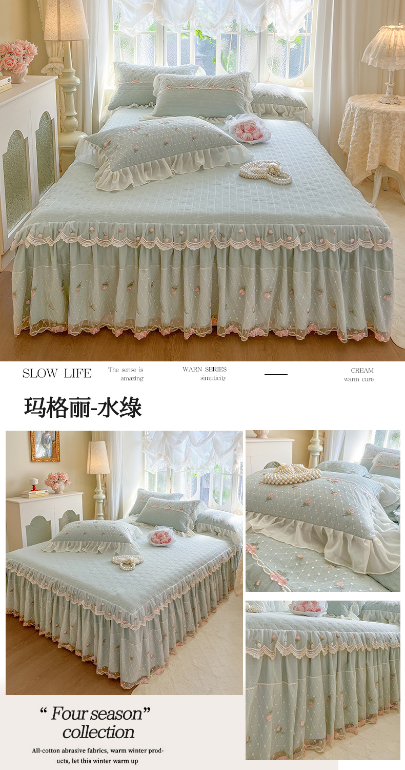 (总)网红馆(ck家纺) 2025新款色织提花牛奶绒床裙四件套-洛丽塔系列,洛丽塔-豆沙,洛丽塔-蓝色,洛丽塔-米色
